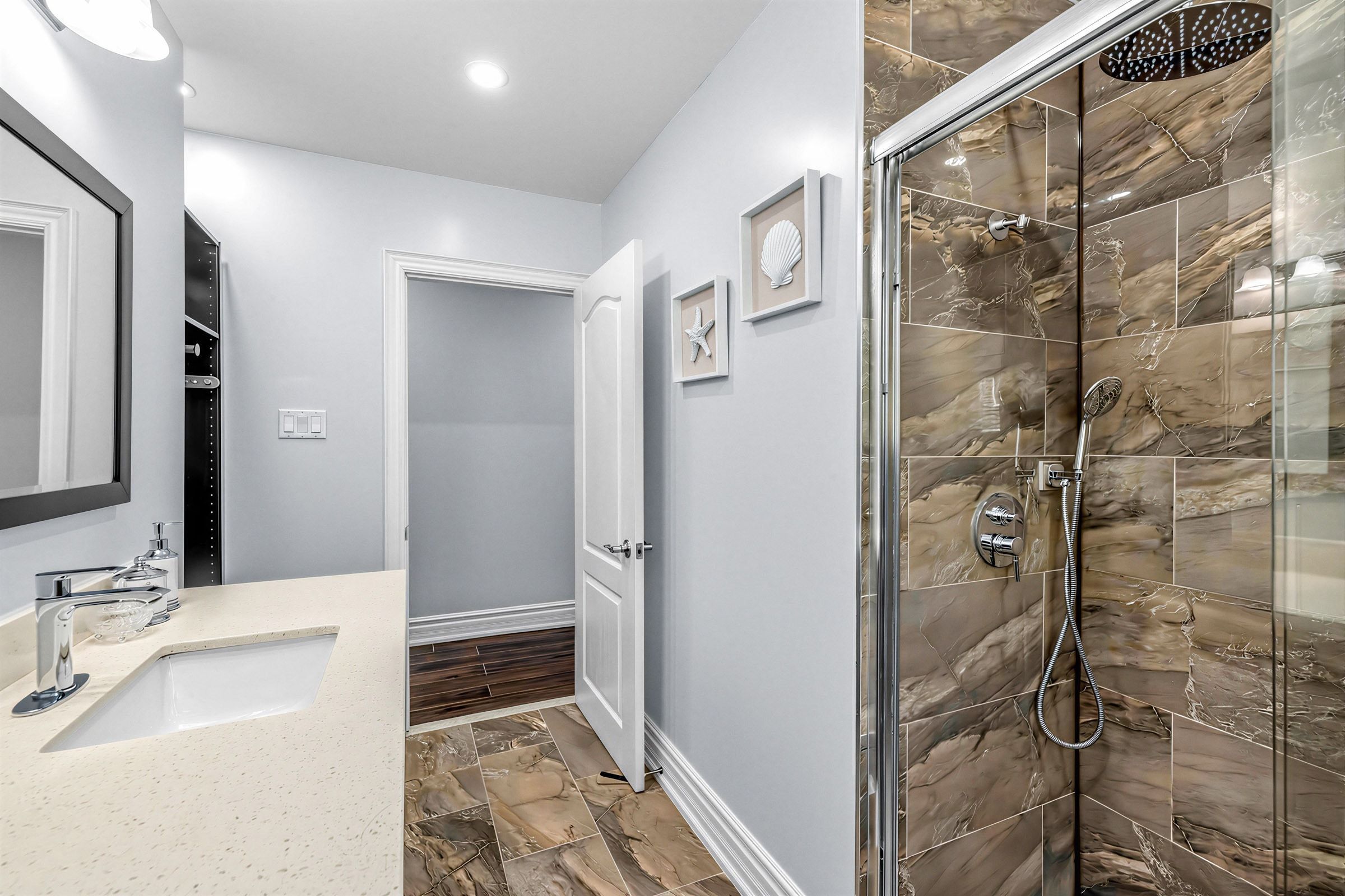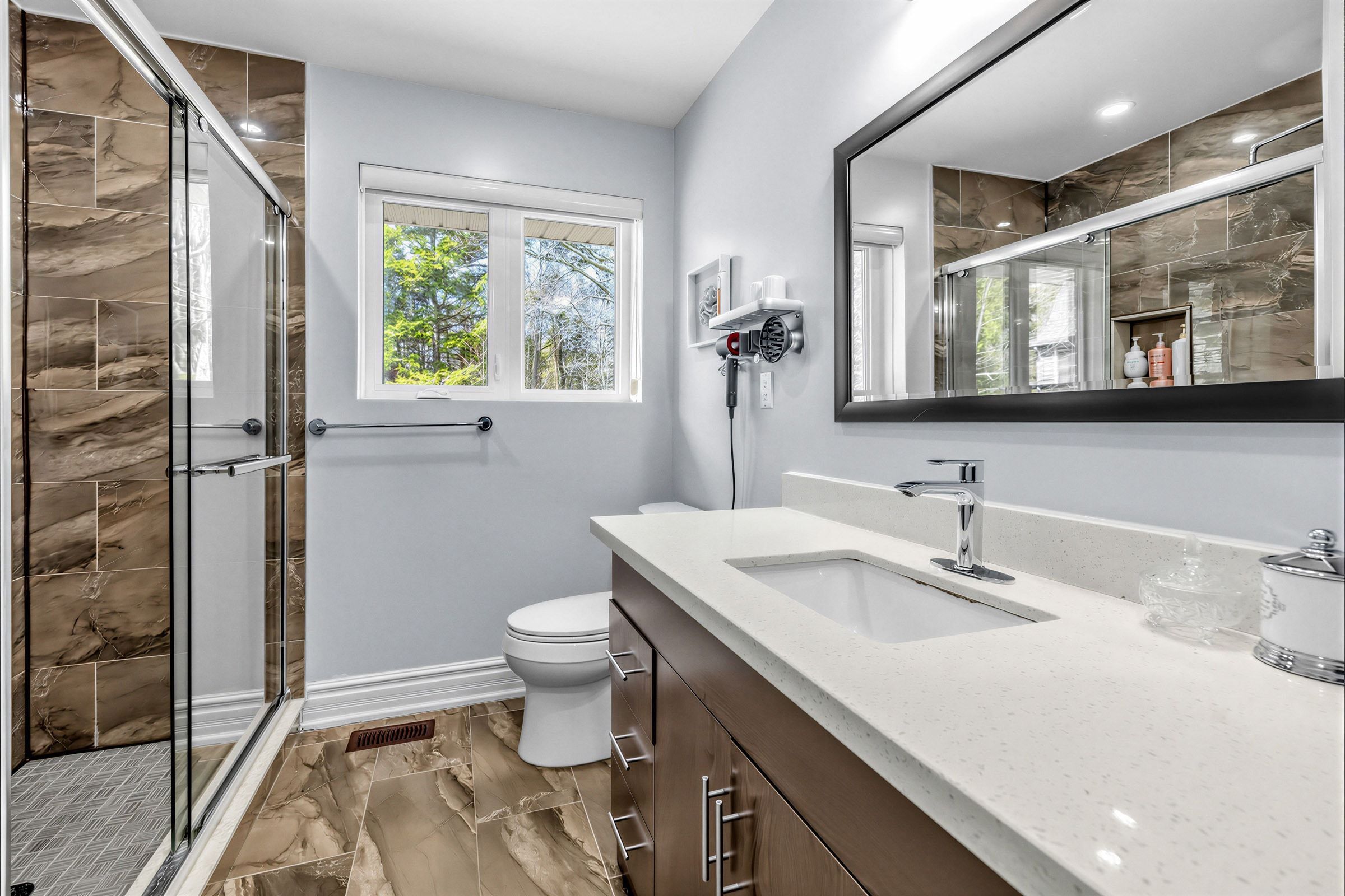 • Finished walkout basement perfect for guests or a home office.