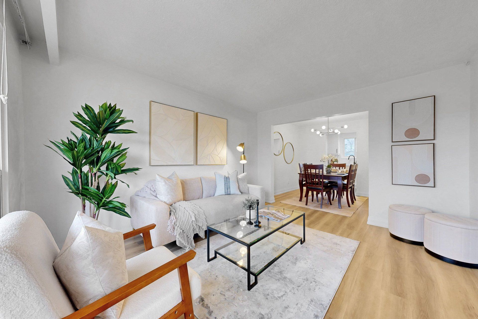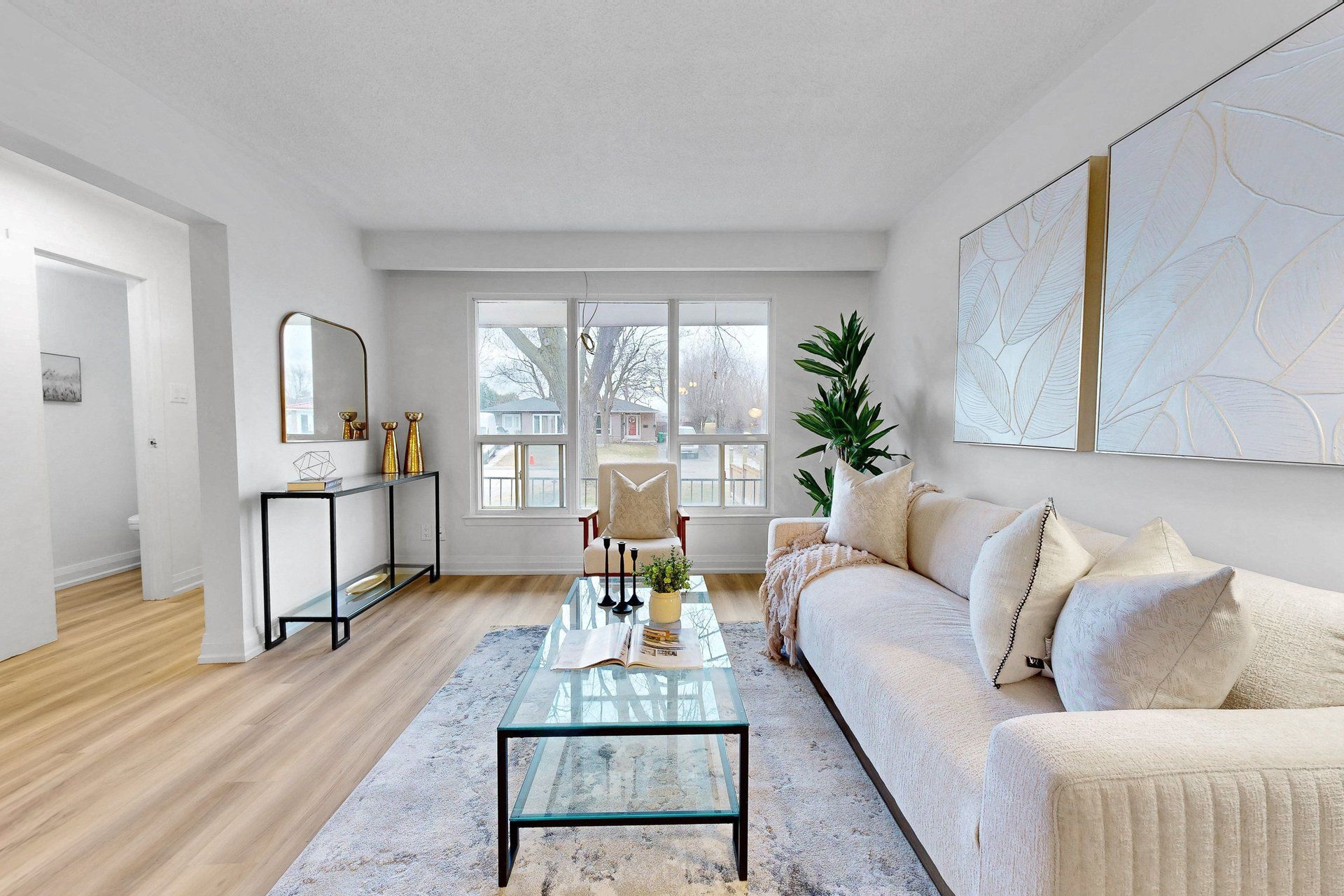 • Bright, open-concept layout with new flooring and modern lighting throughout.