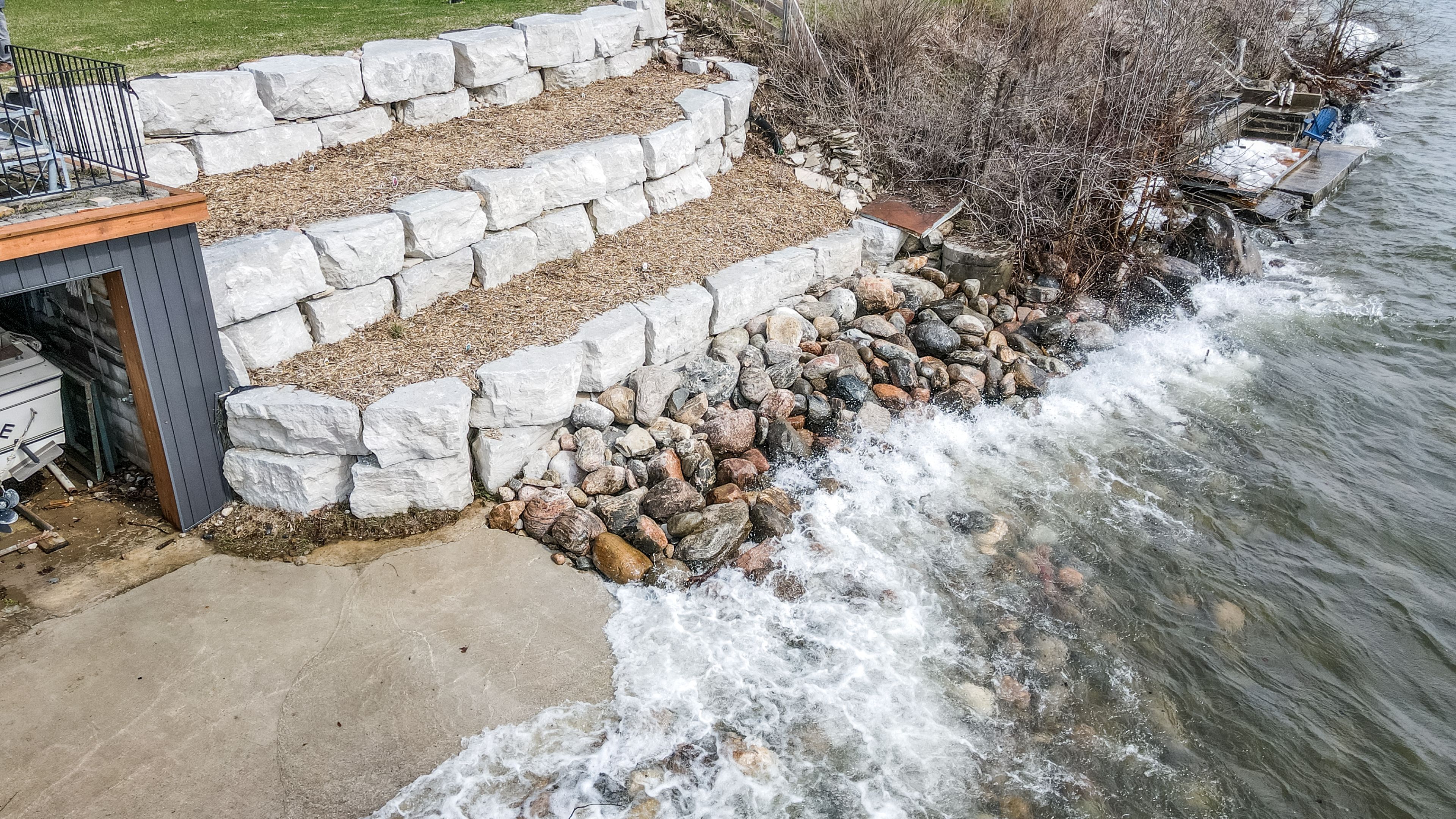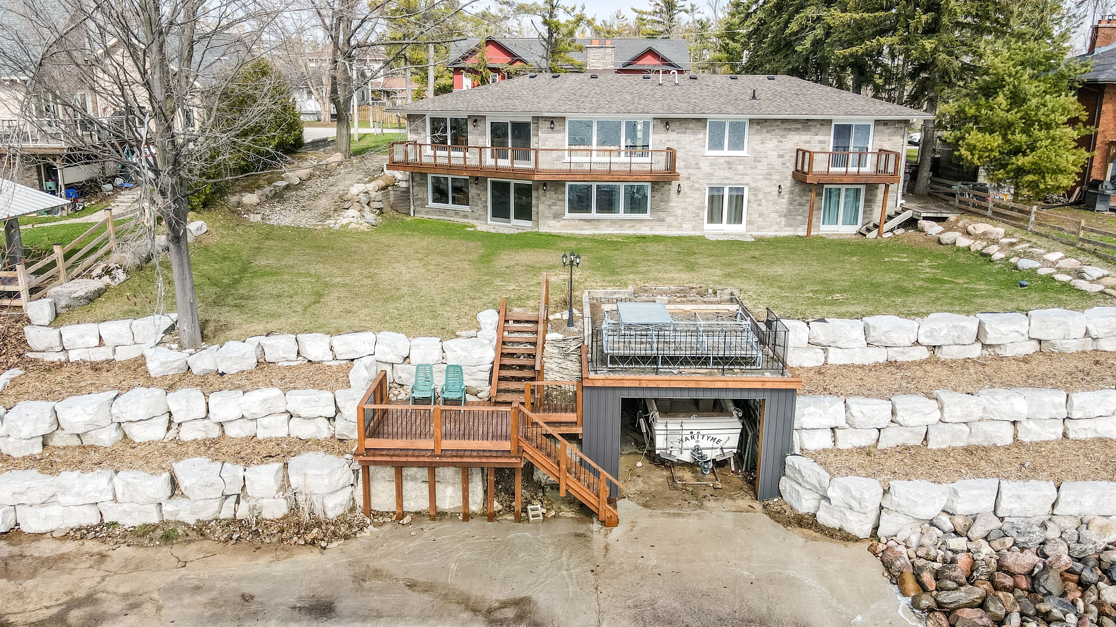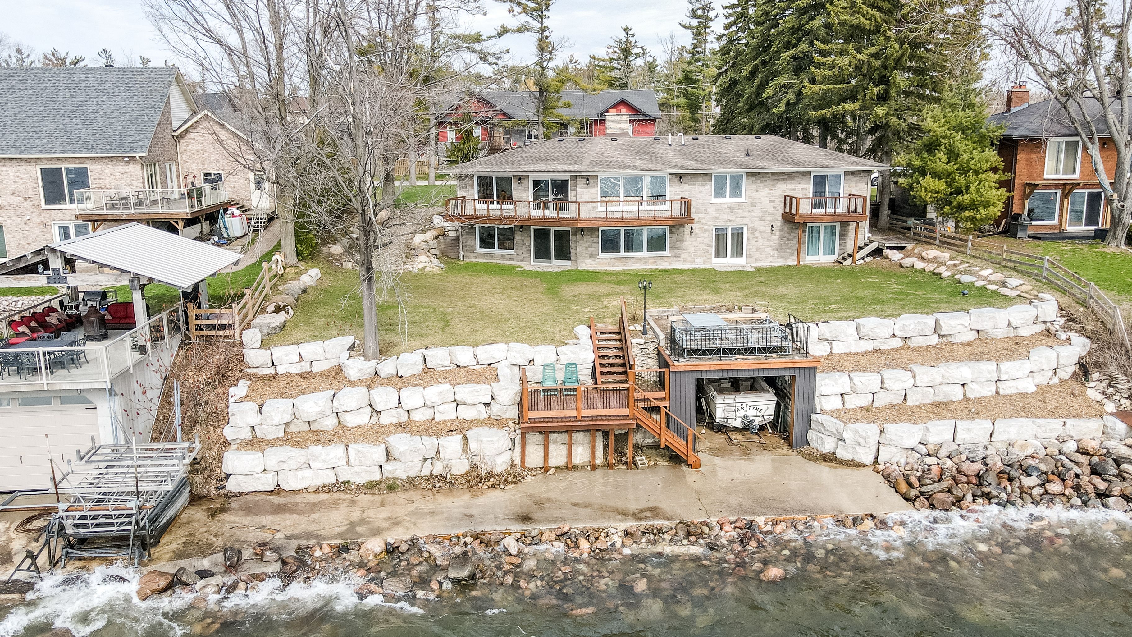 • 16' x 25' boathouse and attached double garage for convenient storage.