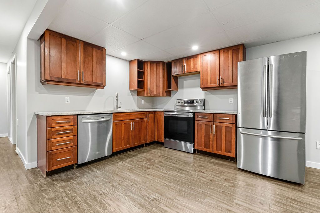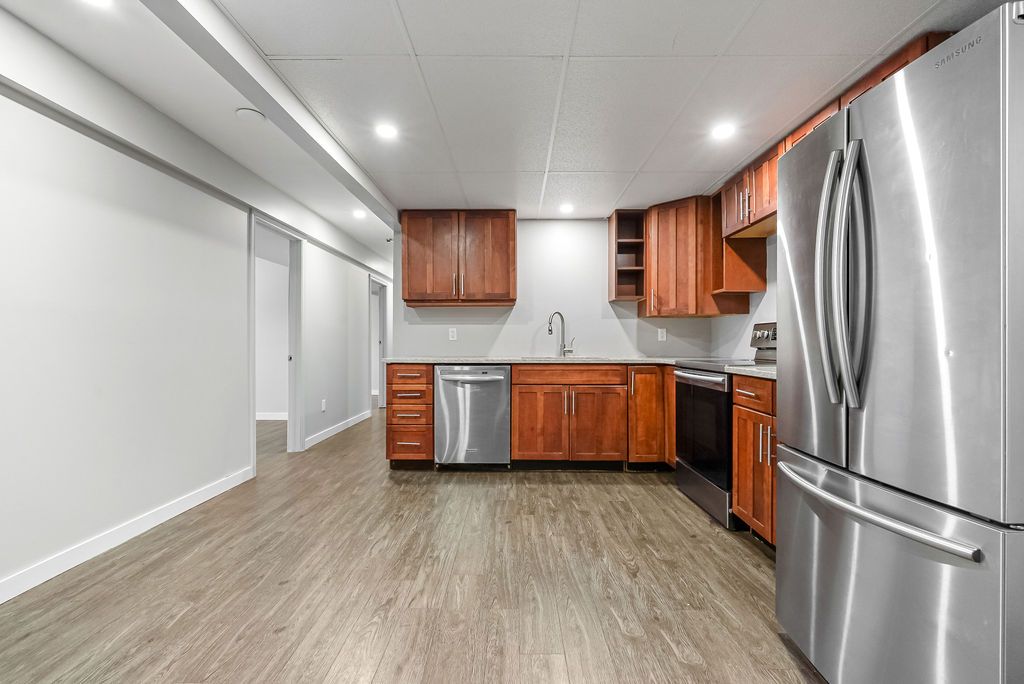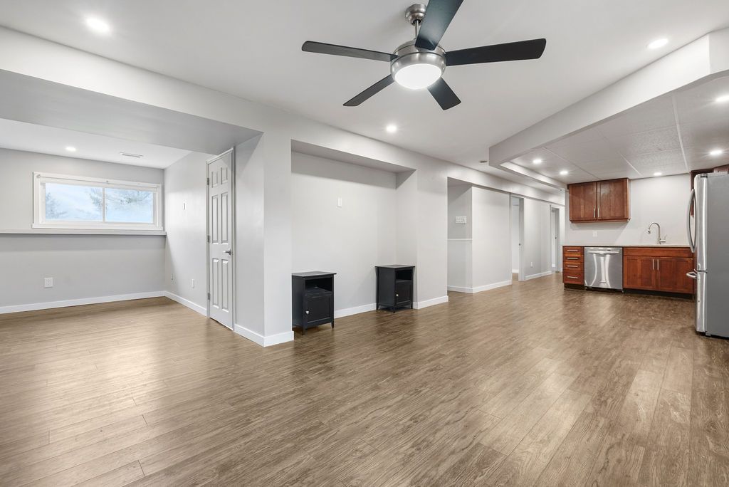 • Lower level in-law suite features kitchen and two bedrooms, perfect for guests.