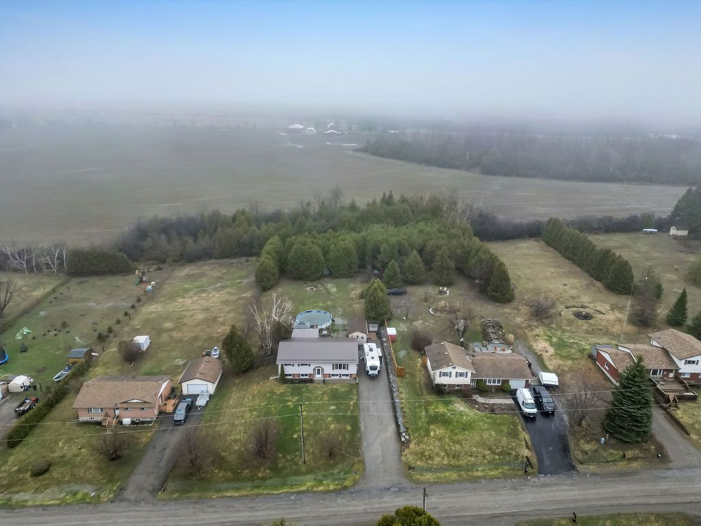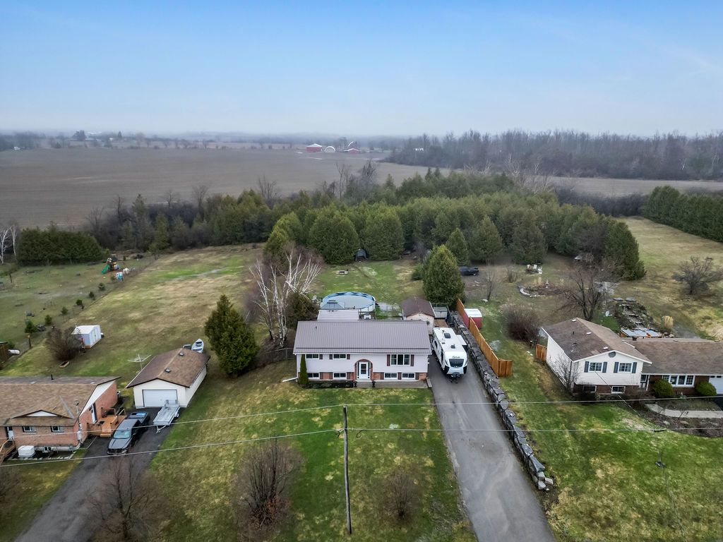 Spacious, low maintenance, raised bungalow on approx. 1 acre country lot in a waterfront community, a short drive north of the town of omemee, located on pigeon lake. Hugely renovated in the past 3 years; upper custom kitchen with pantries, pot drawers, stainless steel, new appliances. New flooring, totally renovated bathroom with shower stall, open concept dining and living room areas with easy care flooring. Huge primary bedroom, second bedroom has lots of cupboards and an attached office or walk-in closet. Main floor family / sunroom / workroom that walks out to a huge deck with a gazebo and an above-ground pool. Lots of room for kids and dogs. Lower level has been renovated into an in-law suite, complete with kitchen, 2 bedrooms, a storage area, office area. All are bright and open! Hydro averages $300 per / 2 families, pool, sunroom heater, gas $90 per / 2 families.
