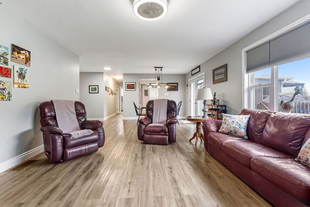 • Spacious raised bungalow on a one-acre lot in a waterfront community.