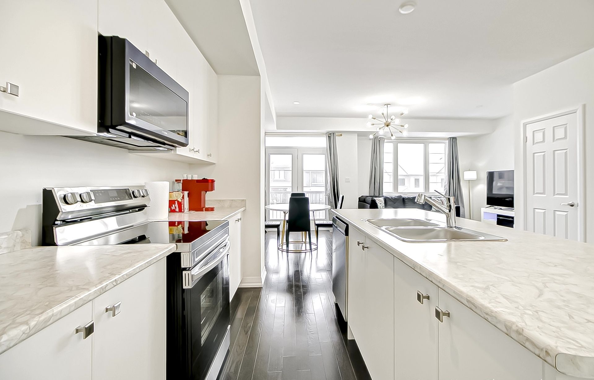 • Upgraded open-concept townhome with modern finishes and decor.