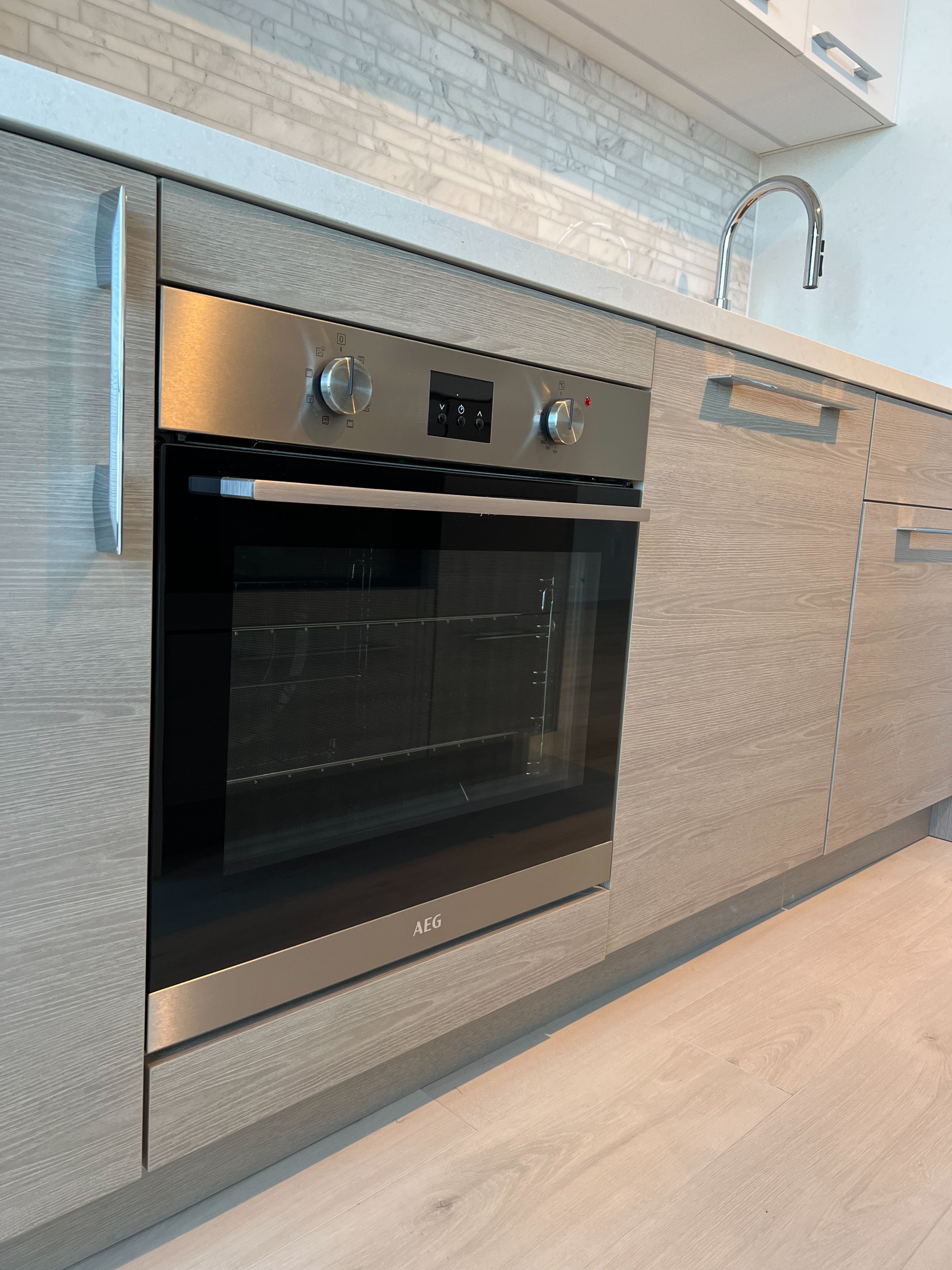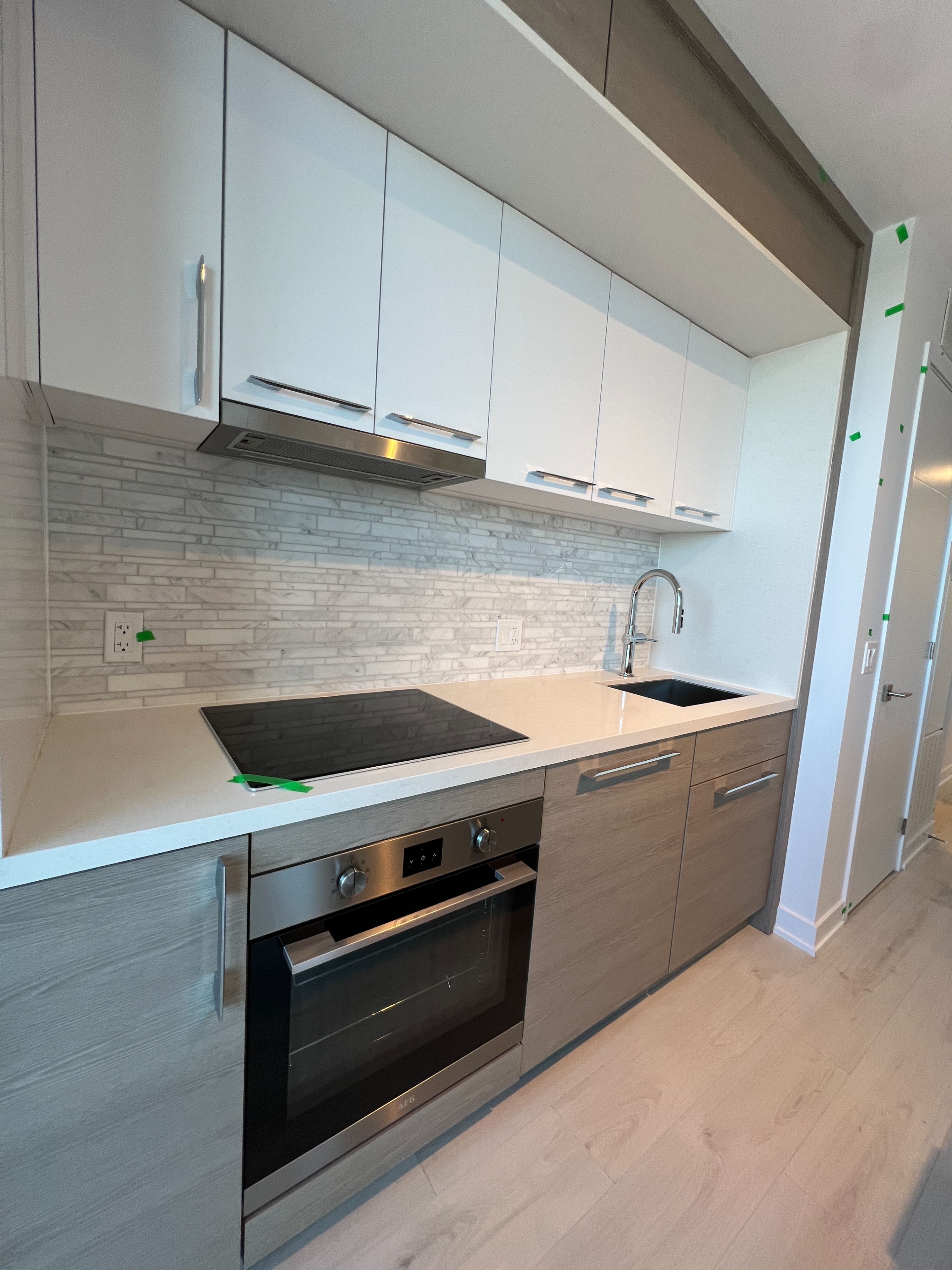 • Modern kitchen with premium built-in appliances and quartz countertops.