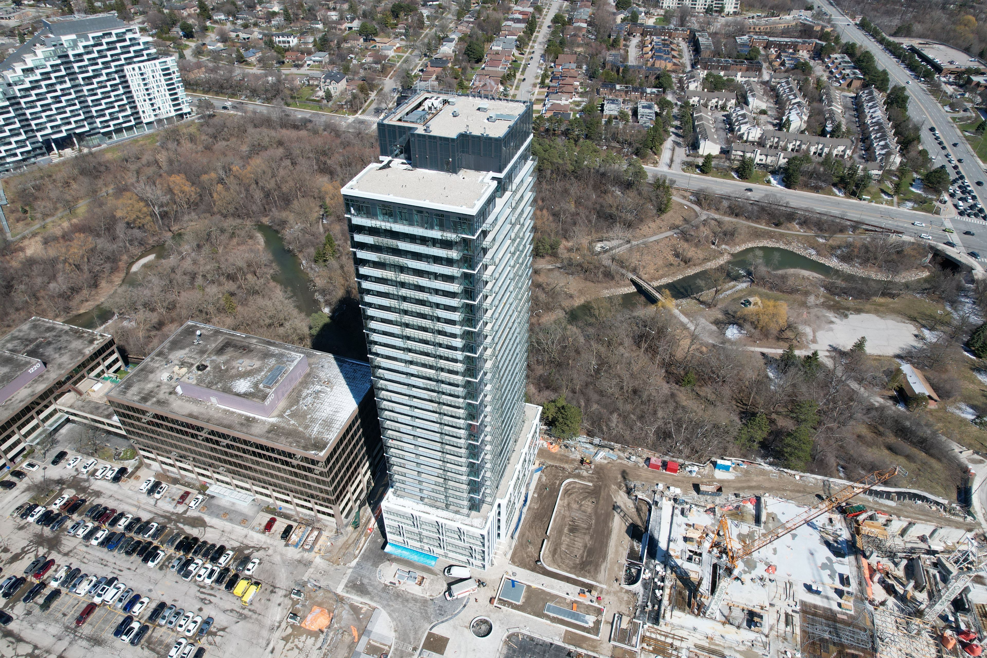 Brand new 1-bedroom condo with ravine views | residences at central park experience modern living in this brand new, never-lived-in 1-bedroom suite overlooking the serene east don parkland. Designed for comfort and style, this unit offers a bright, open-concept layout with a seamless blend of nature and city living. Enjoy peaceful, eye-level forest views from your private, extra-deep balcony-perfect for relaxing or entertaining. Floor-to-ceiling windows fill the space with natural light, highlighting the sleek interior finishes. The contemporary kitchen features quartz countertops and premium built-in appliances, while the spa-inspired bathroom offers elegant, high-end finishes for a luxurious everyday experience. Unit features, spacious bedroom open-concept living and dining area private oversized balcony with ravine views high-end kitchen with built-in appliances spa-like bathroom with modern finishes residents have access to the impressive 55,000 sq ft "park club" amenities, including indoor/outdoor pools, fitness centre, skating rink, bowling lanes, and more. Conveniently located at steps to leslie ttc subway station, go transit, and hwy 401, with easy access to bayview village and fairview mall. A perfect blend of nature, luxury, and convenience-ideal for professionals seeking a stylish home in north york.