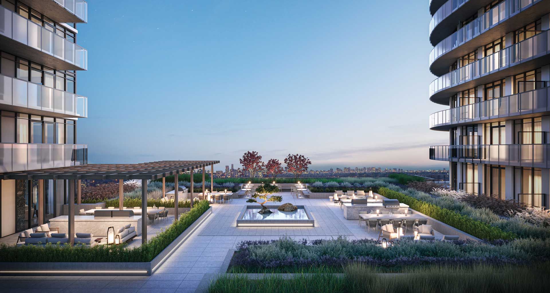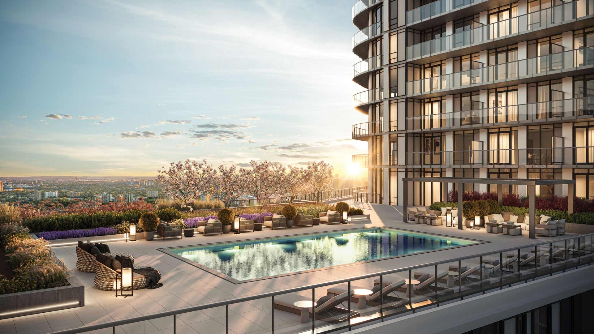 • Access to 55,000 sq ft of luxury amenities, including pools and fitness center.
