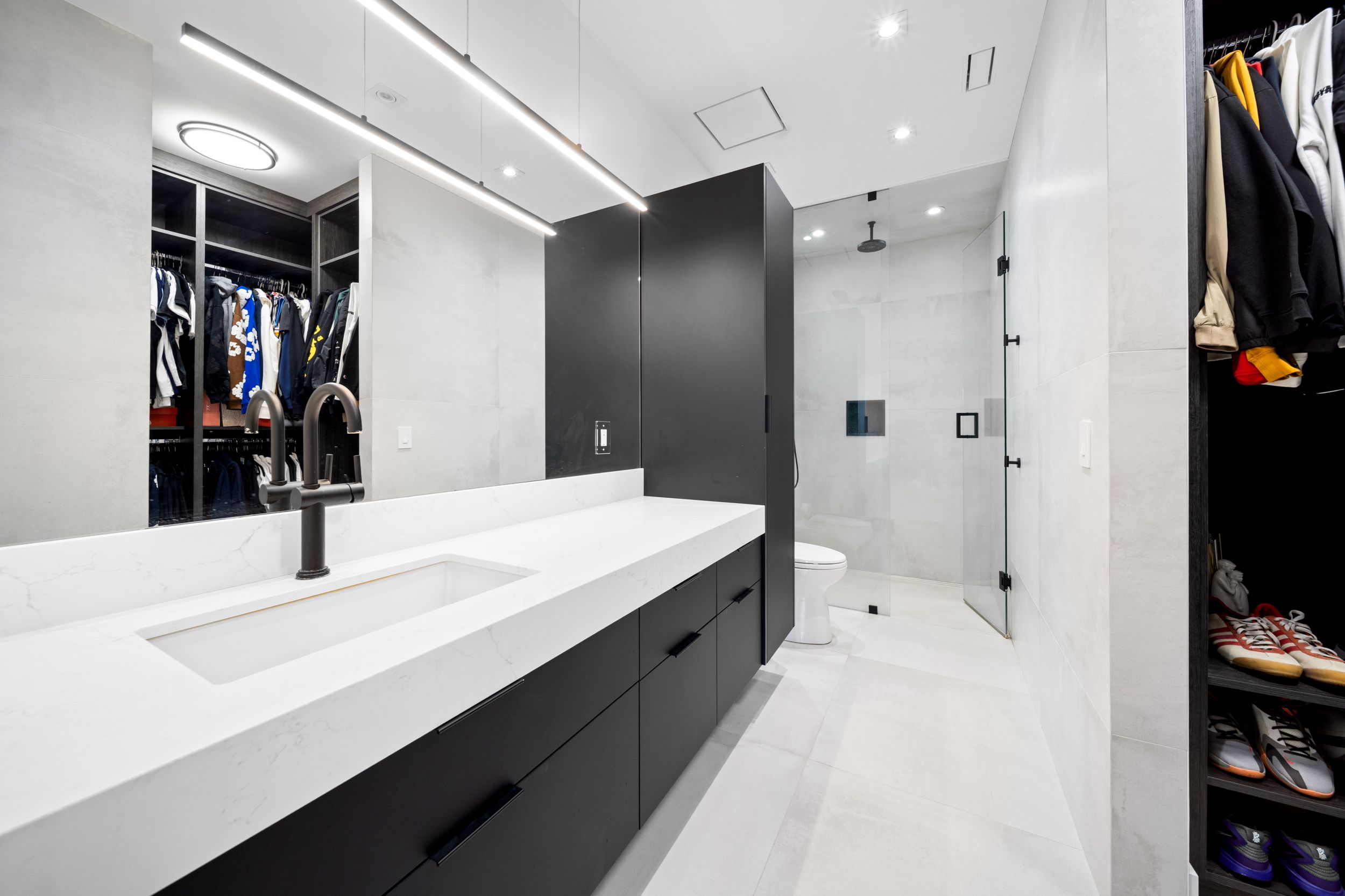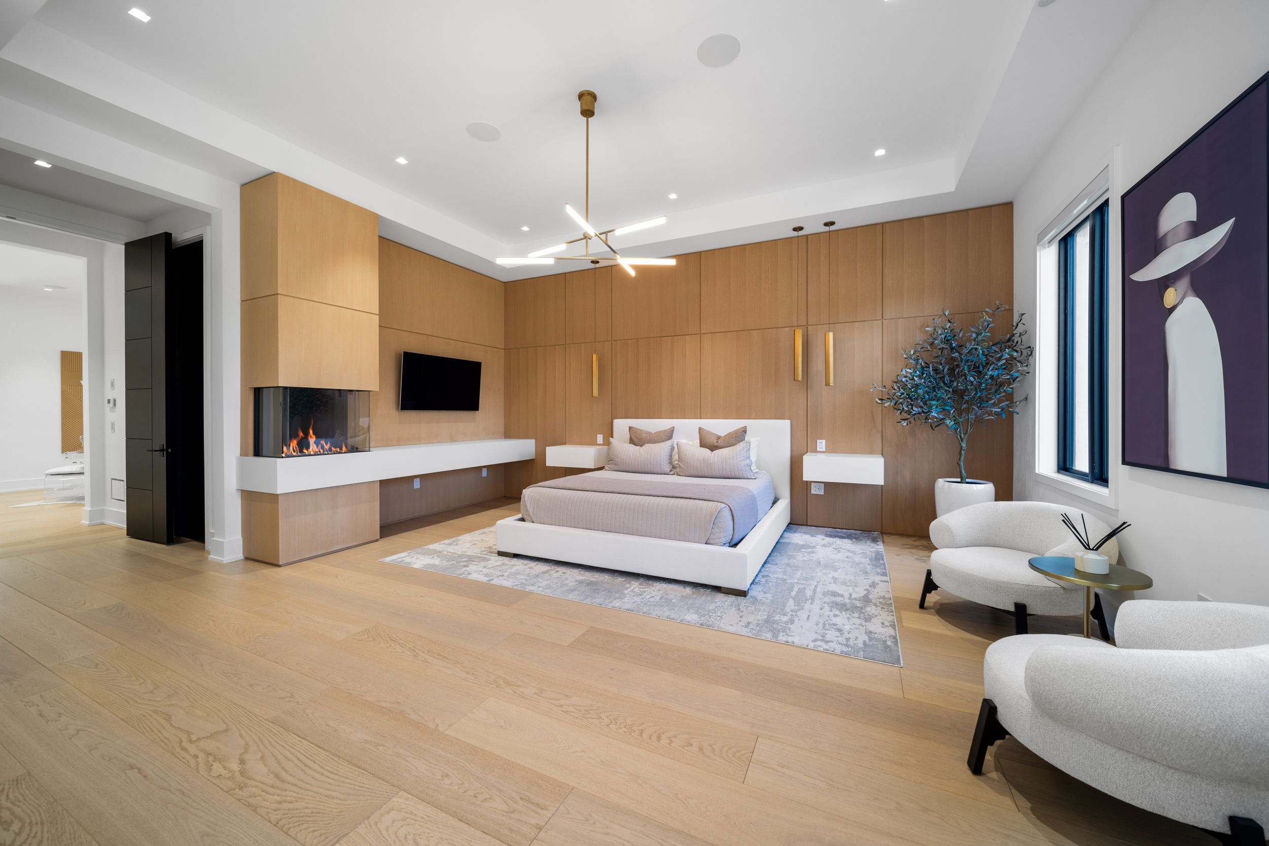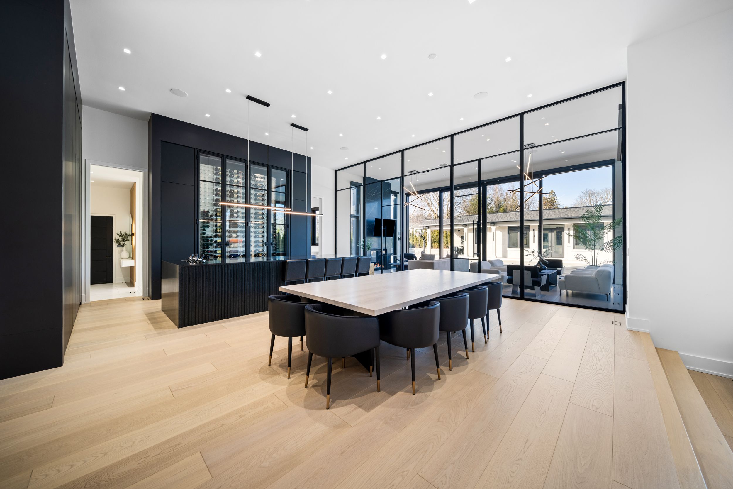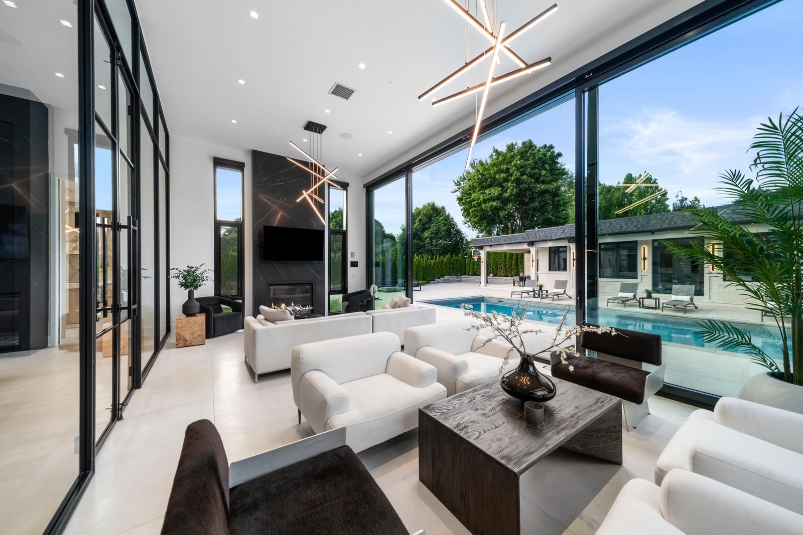 An extraordinary residence where timeless contemporary design meets uncompromising craftsmanship. Every detail has been thoughtfully curated and meticulously executed, offering you a dream home without the stress or delays of building. Move in just in time to enjoy the ultimate summer lifestyle. This architectural gem boasts soaring 14-foot ceilings on the main level, framed by rich solid white oak paneling and doors throughout. Designed for entertaining ,the heart of the home features a stunning chefs kitchen complete with a dramatic 12-foot custom wine fridge with over 300 bottle storage capacity, flowing seamlessly into a four seasons lounge, a space designed to bring the outdoors in, year-round. The main floor primary bedroom retreat offers a serene escape, combining elegance and comfort in perfect harmony. The lower level offers two additional bedrooms including a housekeeper suite, home gym, recreation room, built-in kitchen bar, and a state of-the-art home theatre, all powered by the latest control 4technology throughout the entire home for effortless living. Step into your private resort-style backyard, where luxury continues with a saltwater pool, a fully appointed pool house with kitchen, family room, and 3-piece bath, plus an additional outdoor bath and shower. Multiple lounge areas, a sports court, covered loggia, and a gourmet outdoor kitchen complete this exceptional lifestyle offering. This is more than a home, it is a statement. Its where sophistication meets comfort, and every day feels like a vacation.