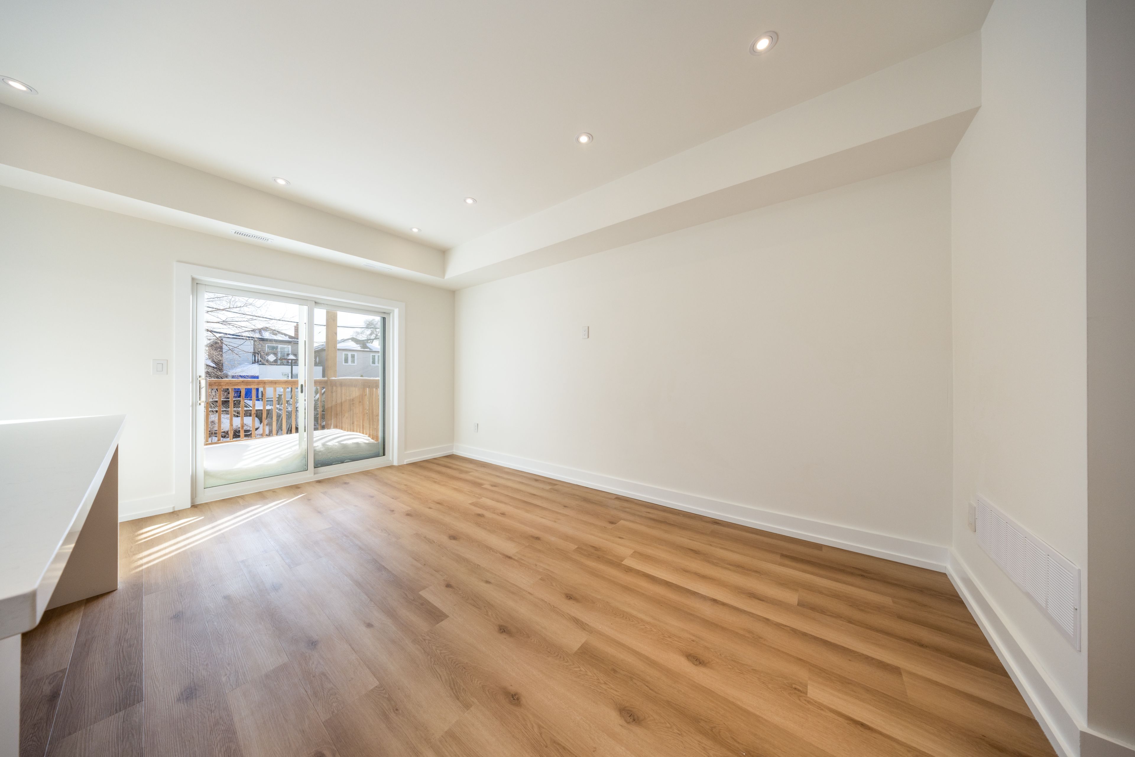 The hatherley collection. Suite b - main floor - experience modern urban living in this brand-new light-filled fourplex suite by the award-winning arthaus development, a firm known for architectural precision and luxury design-build quality. Located in fairbank village, this 1074 sq ft 3-bedroom, 2-bathroom plus terrace executive suite offers the privacy and a quieter living environment of a boutique fourplex with luxury condo finishes. Step into this thoughtfully designed main floor living space featuring soaring 9' ceilings and large windows with abundant natural light. Enjoy a custom chef's kitchen with full-sized stainless steel appliances, sleek cabinetry, and plenty of counter space. Bathrooms feature contemporary finishes and double sinks, while all three bedrooms include double closets for efficient storage. Built in 2025 to high energy standards, this suite includes an ensuite stacked full-size washer & dryer, ample storage, and separately metered utilities for total control. Located in fairbank village, this transit-oriented home is steps from the eglinton crosstown lrt and within walking distance of local schools and community centres, providing a sophisticated urban lifestyle in a vibrant and rapidly evolving west-end community. Move in today and experience the best of modern, boutique urban living. Available immediately.