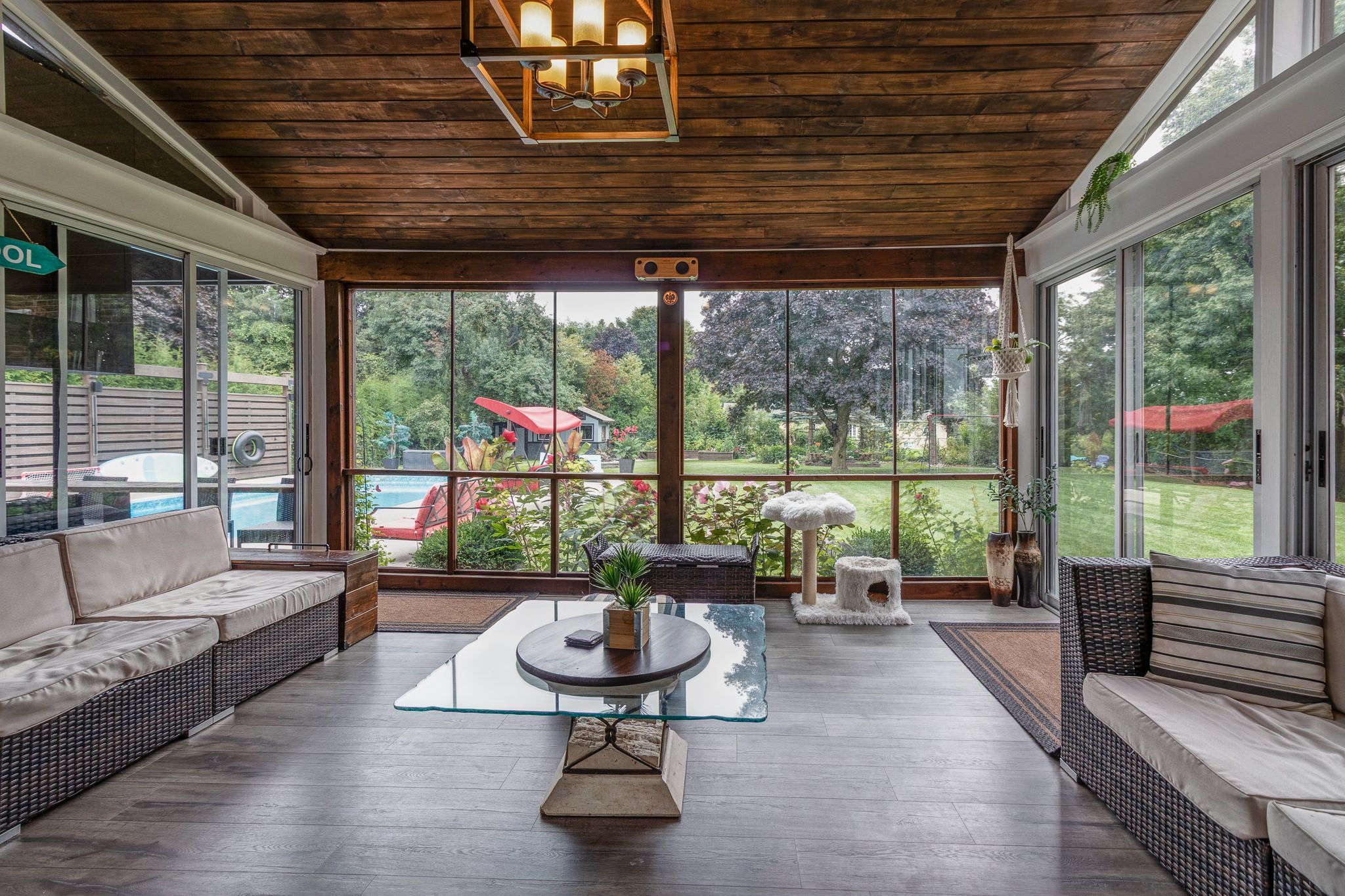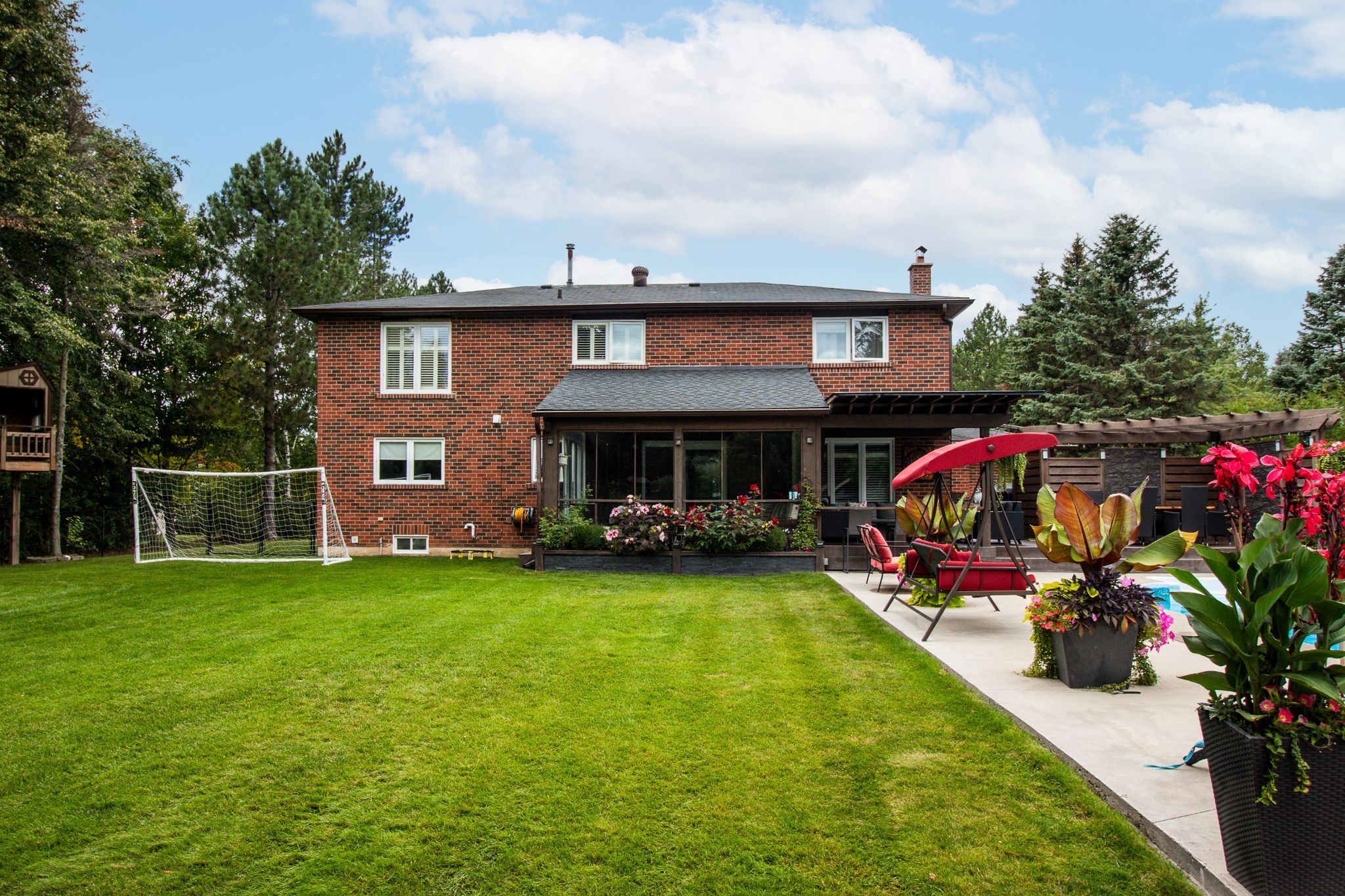 Welcome to 29 hayleyvale rd located in the heart of caledon village, set on a private over half-acre lot surrounded by mature trees and landscaped grounds. With plenty of space inside and out, this home is perfect for families who enjoy both comfort and entertaining. The main floor features a renovated kitchen with quartz countertops, custom cabinetry, stainless steel appliances, and a large centre island that opens to the dining area overlooking the backyard. Hardwood floors, crown molding, and large windows bring in great natural light throughout the home. Upstairs offers spacious bedrooms including a large primary retreat and updated bathrooms with modern finishes. The finished lower level adds even more living space with a cozy lounge, recreation area, games room, and full bathroom. Step outside to your own backyard retreat featuring an in-ground pool, large patio area, covered outdoor lounge with tv, screened-in sunroom, fire pit area, and plenty of yard space to enjoy. Located just minutes from prestigious golf courses, parks, and scenic trails, this property offers an incredible outdoor lifestyle while still being close to schools and commuter routes
