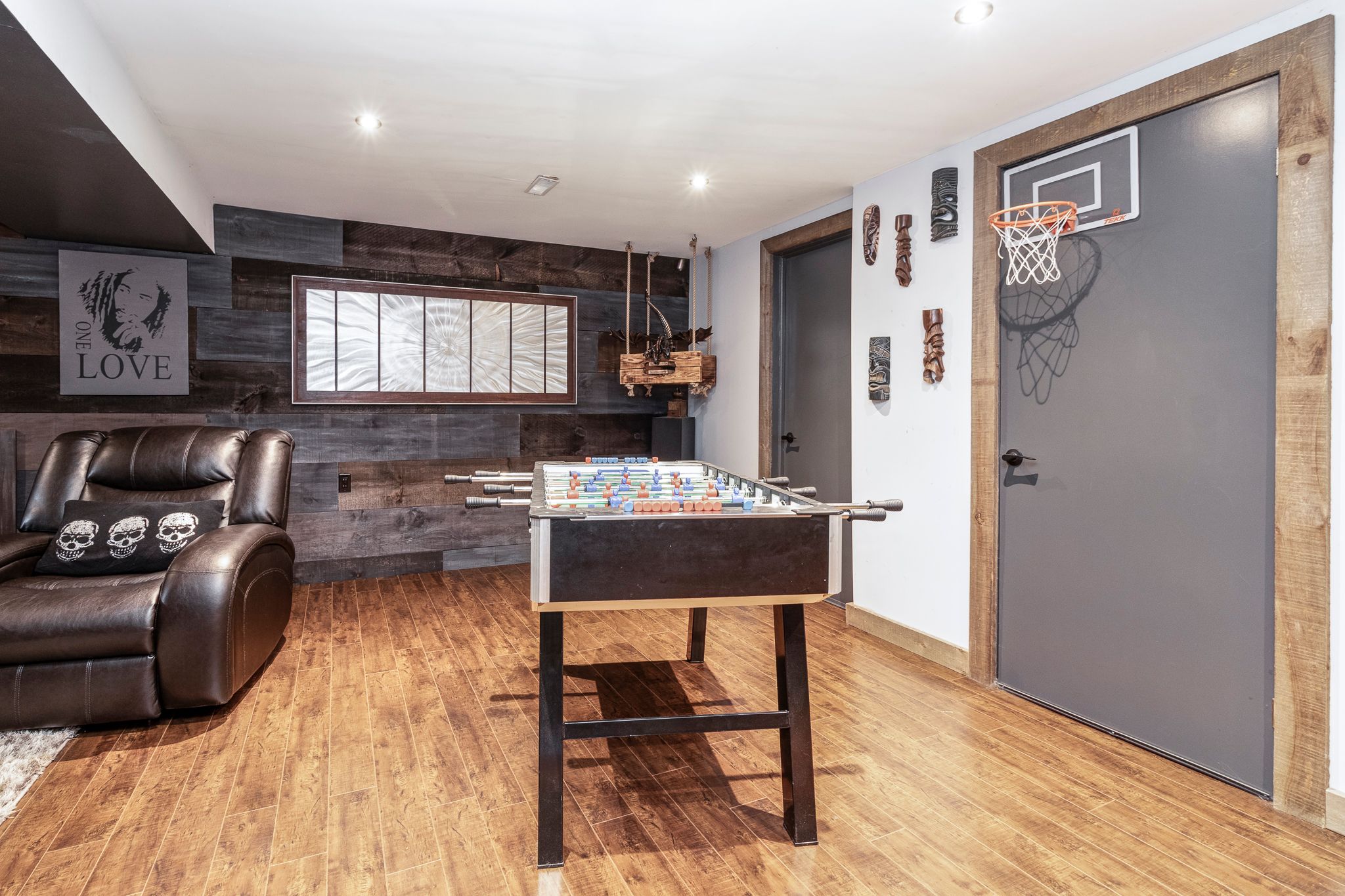 • Finished lower level with lounge, recreation area, and games room.
