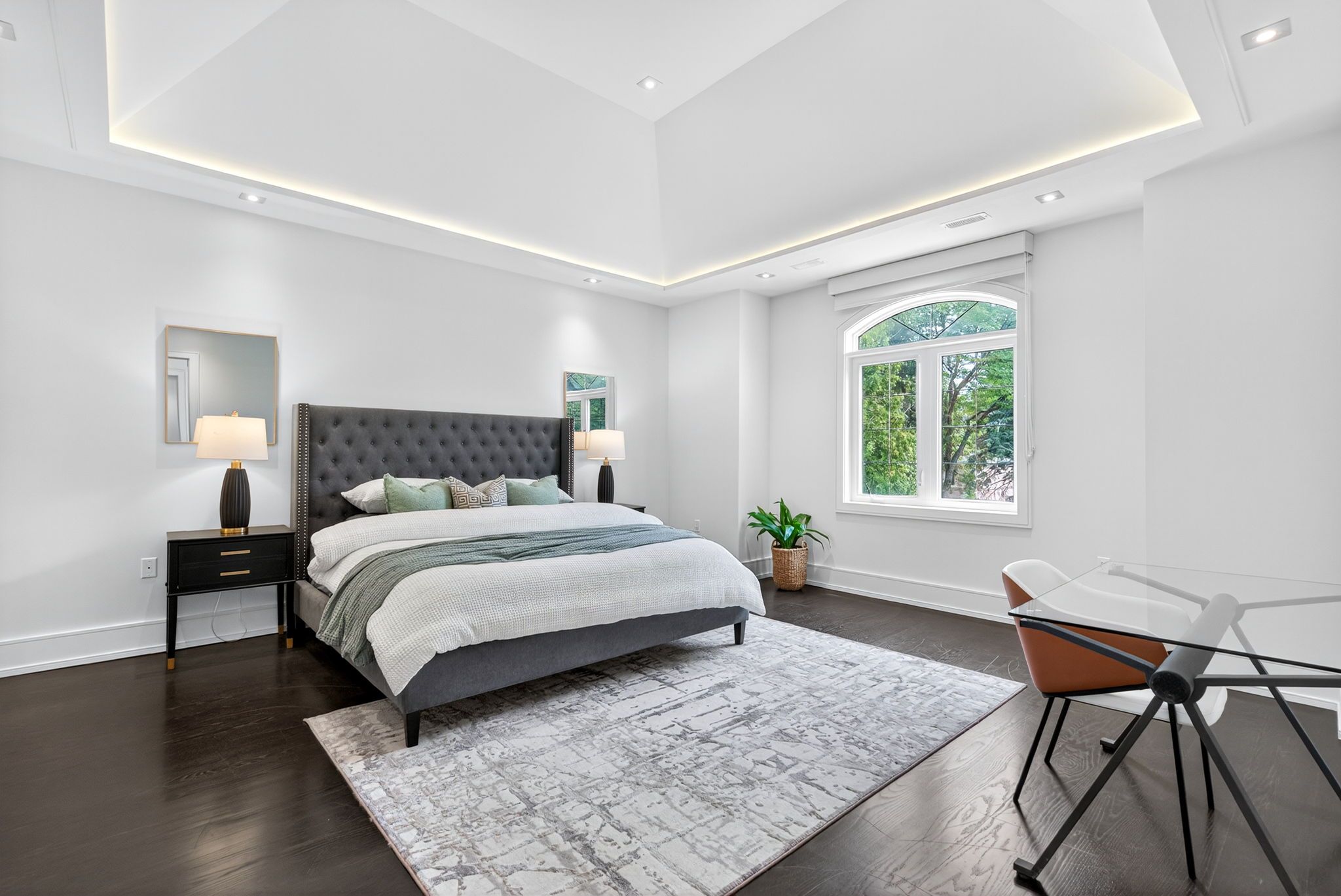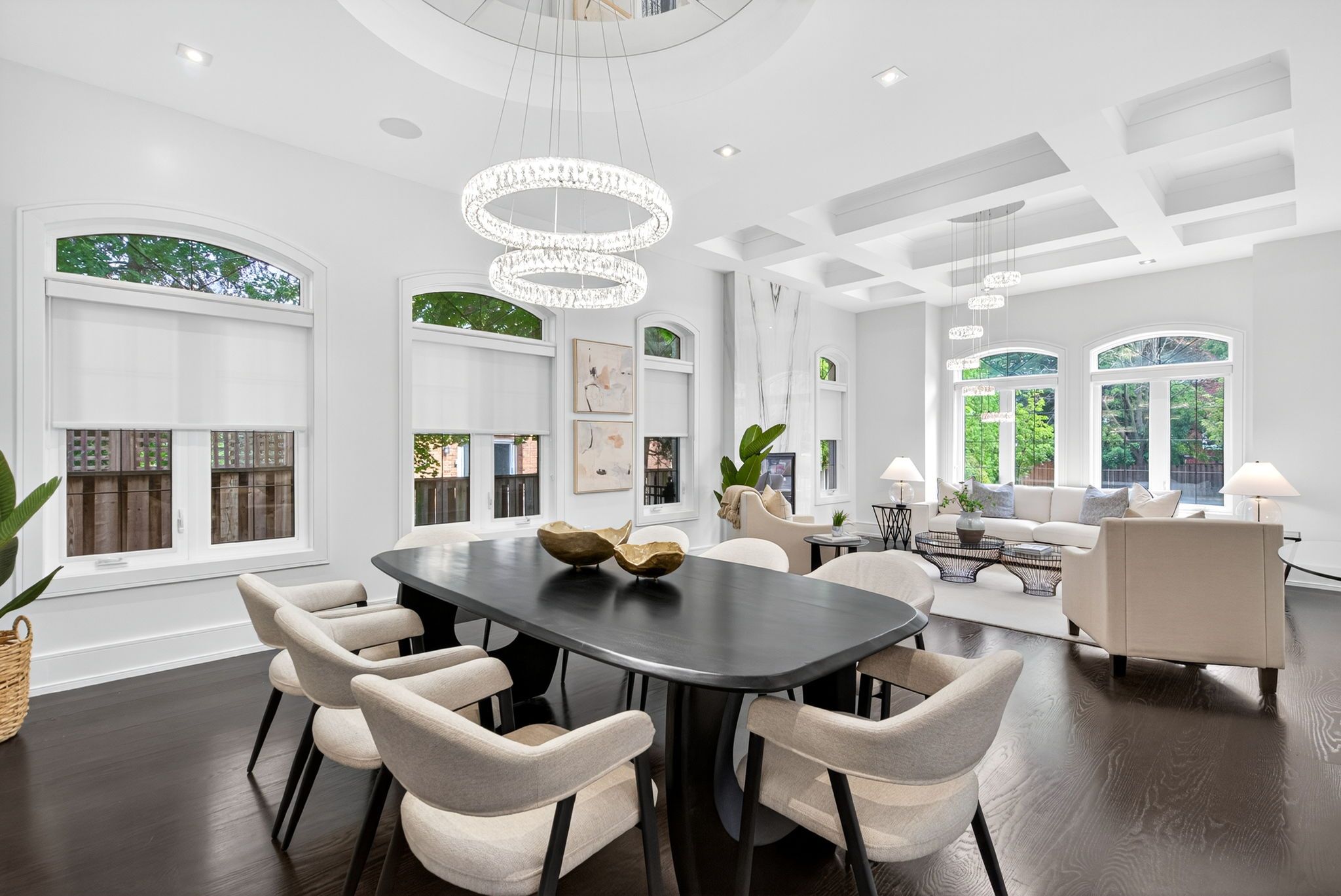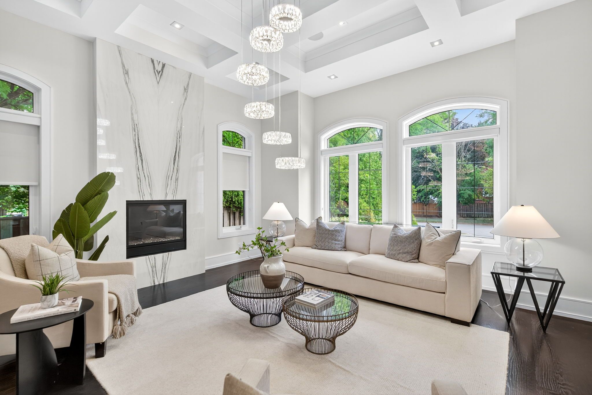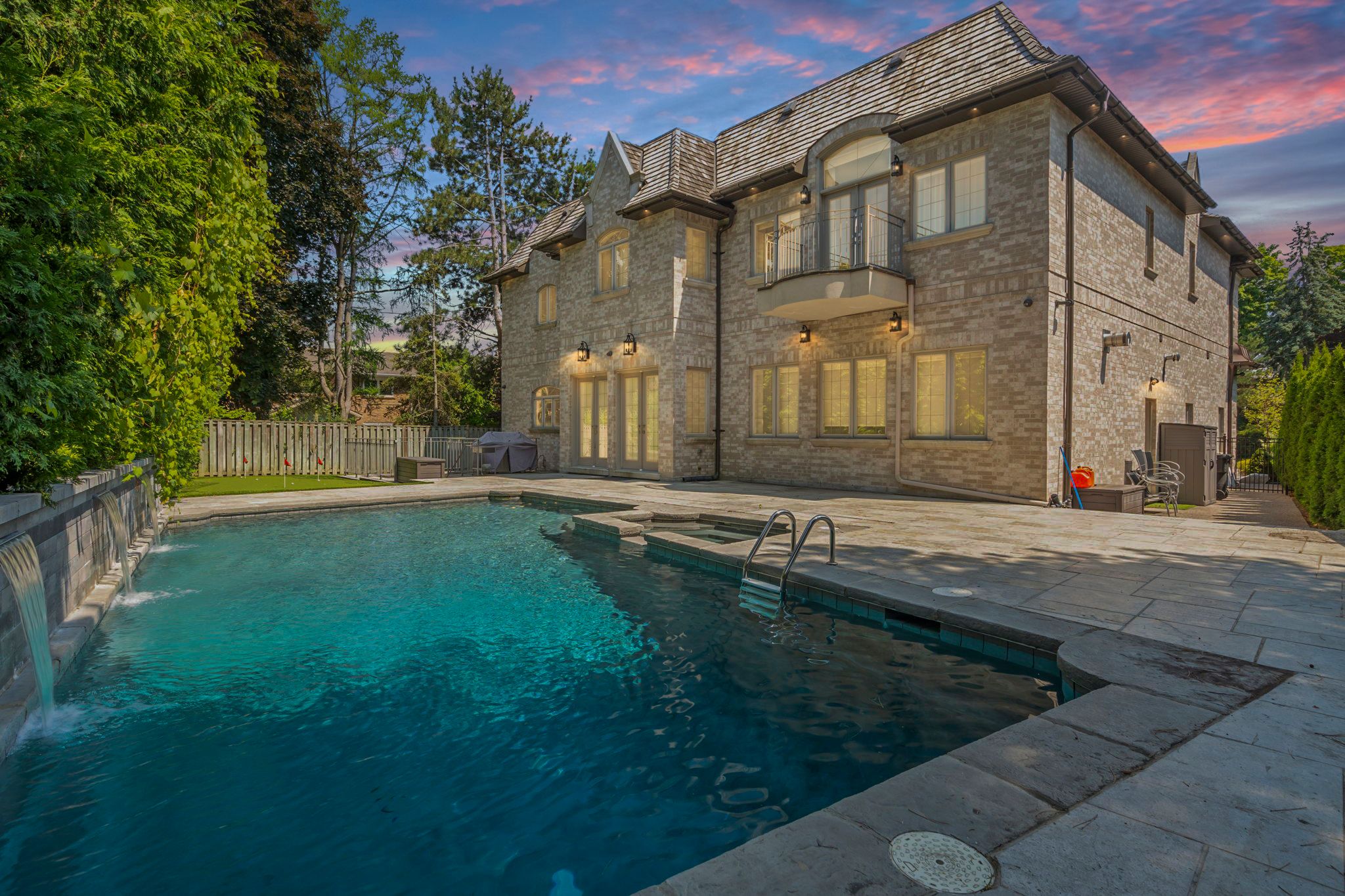 Spectacular and dramatic in design and finishes. Prestigious st. Andrew-windfields locale. Custom built and once residence to the famed. Nearly 9,000 square feet of exquisite living space, blending contemporary elegance with luxurious comfort. Set on a secluded crescent with 90 rear lot width. Natural limestone exterior, extensive millwork, 3 car heated garage and soaring ceilings. Outstanding finishes & amenities, including an elevator, a stunning white oak library, sonos system and a chefs kitchen complete with top-of-the-line appliances, a servery, and a pantry. The lavish primary bedroom is a private retreat with a balcony, bar, his-and-hers dressing rooms, and a marble 7-piece ensuite. Throughout the home, multiple skylights and fireplaces add warmth and charm. The walk-up lower level is designed for entertainment and relaxation, with a home theatre, wine cellar, gym, spa, recreation room, and a nanny suite. Heated floors on this level, marble floors on the main level, and luxurious ensuites in every bedroom ensure comfort at every turn. Outside, the resort-like backyard oasis includes a pool, hot tub, stone terrace, lush greenery, putting green and a private cabana, offering the ultimate outdoor living. This residence in st. Andrew-windfields is a perfect blend of contemporary design and unparalleled luxury.