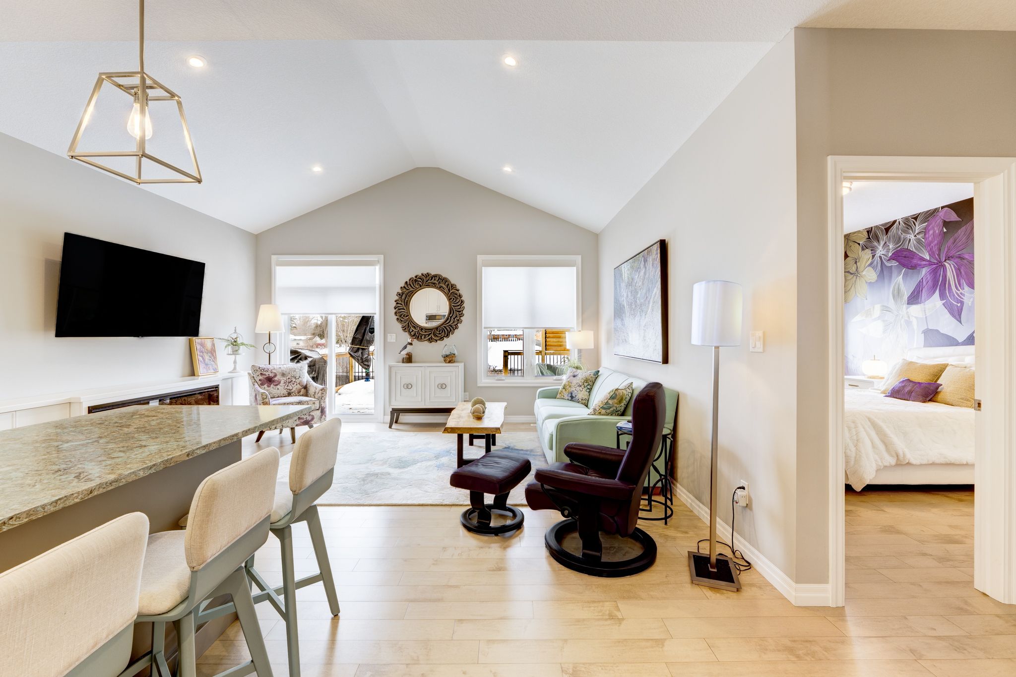 • Bright interior with 9-foot ceilings and enlarged windows for natural light.