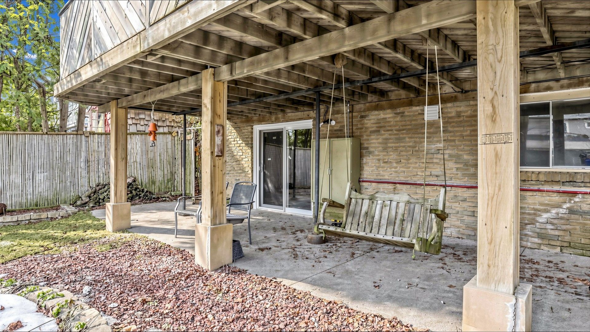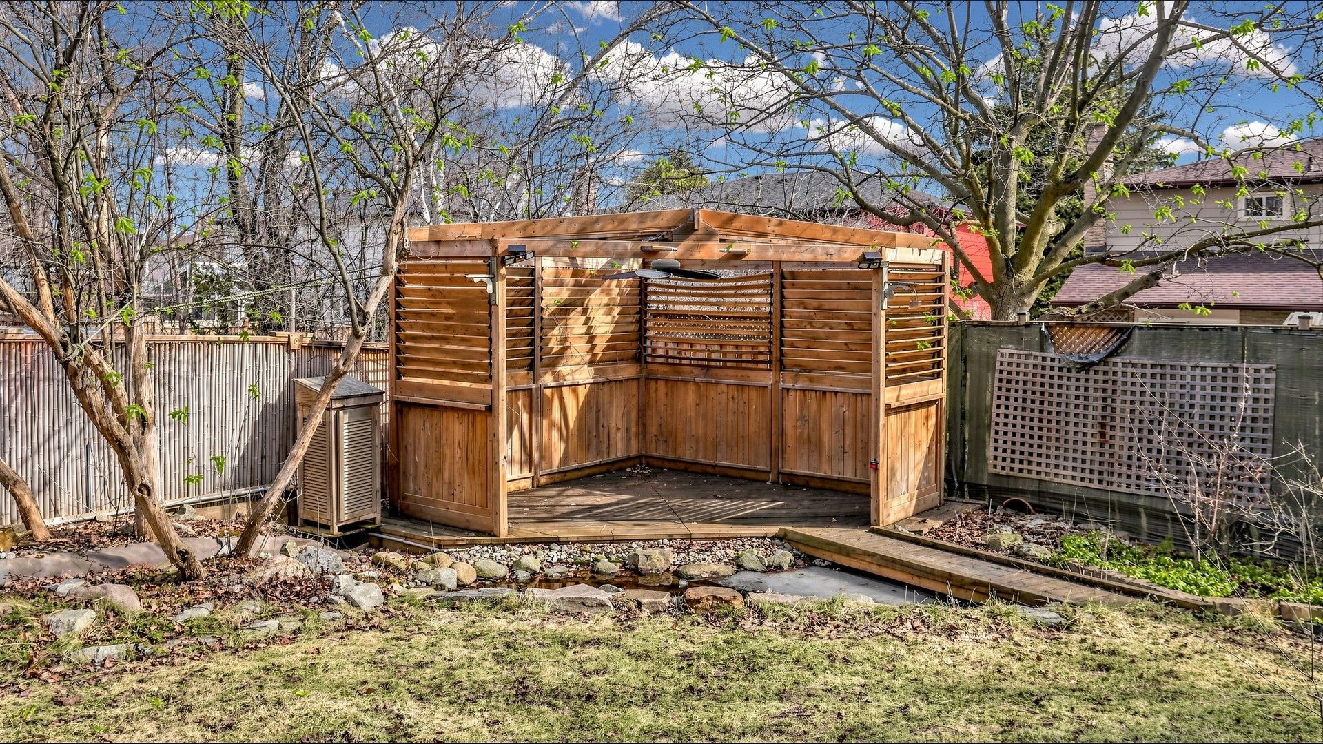 • Fenced private backyard with fishpond and gazebo for relaxation.