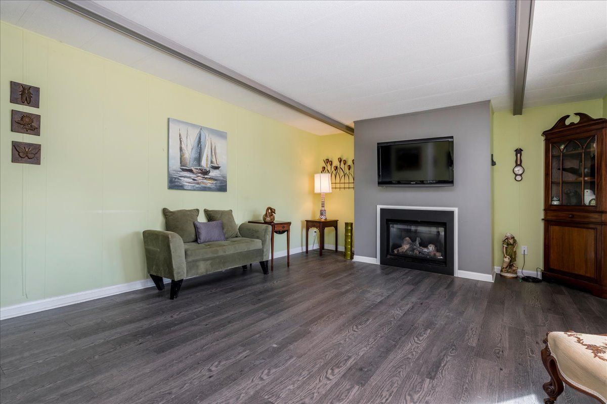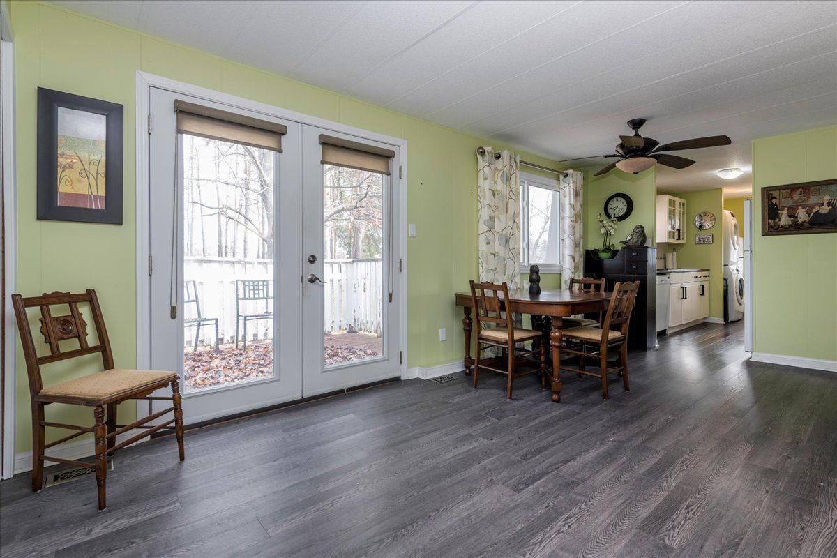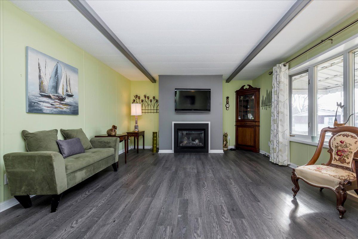 Retirement at its best ! Large 55 plus community just south of barrie with many conveniences within minutes. Lake simcoe within walking distance. Three rec halls all with on going activities such as dances, darts, billiards, line dancing, yoga, and so much more. Two heated outdoor salt water pools . This lovely home is a tara model with two bedrooms and one and half bathrooms. Large living room and large dining room so you can still entertain in comfort. Dining room has patio doors to deck over looking green space. Kitchen has lots of storage. Lovely fireplace to cuddle up to in the cold winter months. Private two car parking and no one directly behind you or on one side. Very comfortable, and you can feel the love that was captured here. New fees : 855. 00 new taxes 162. 49