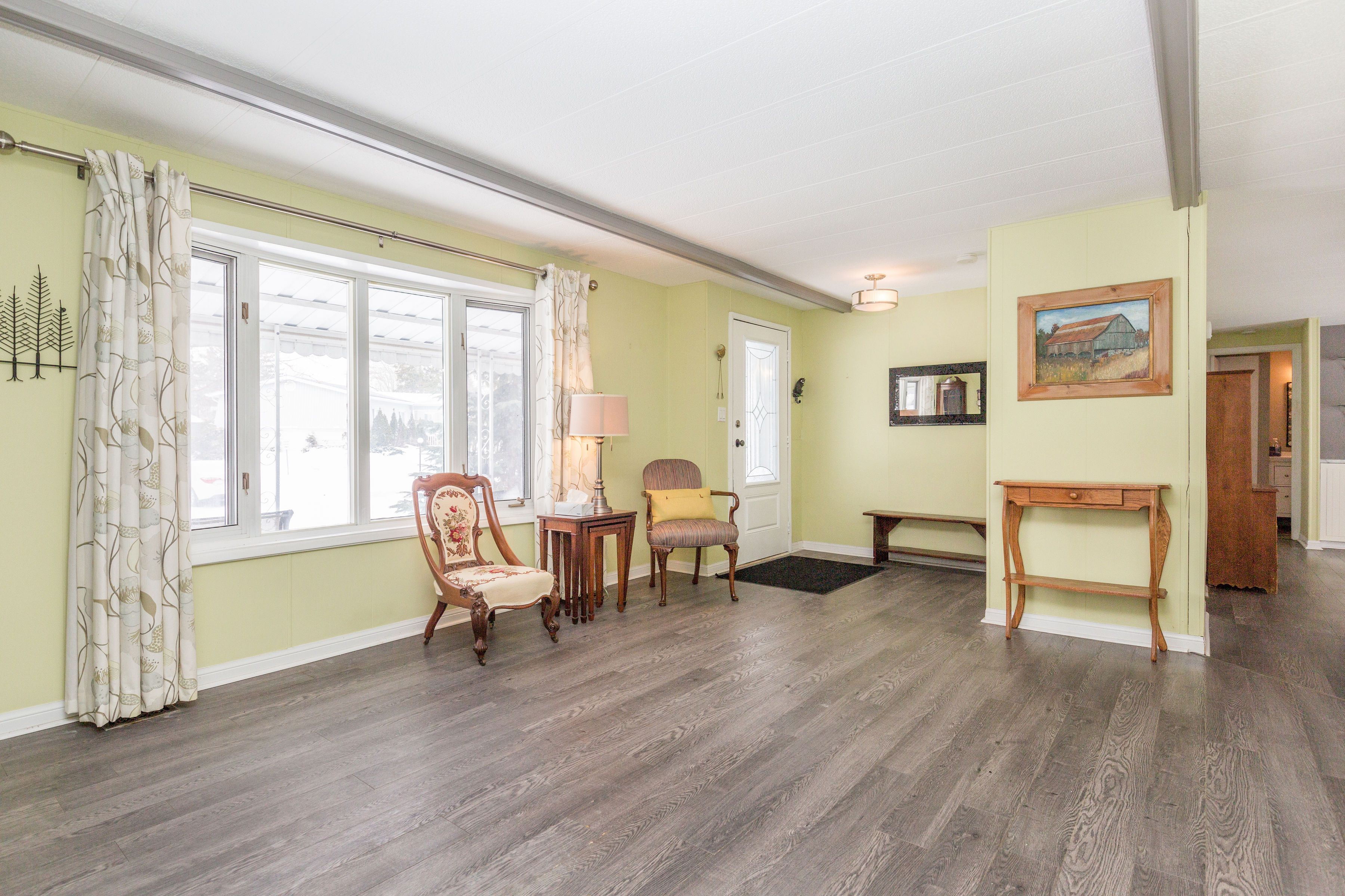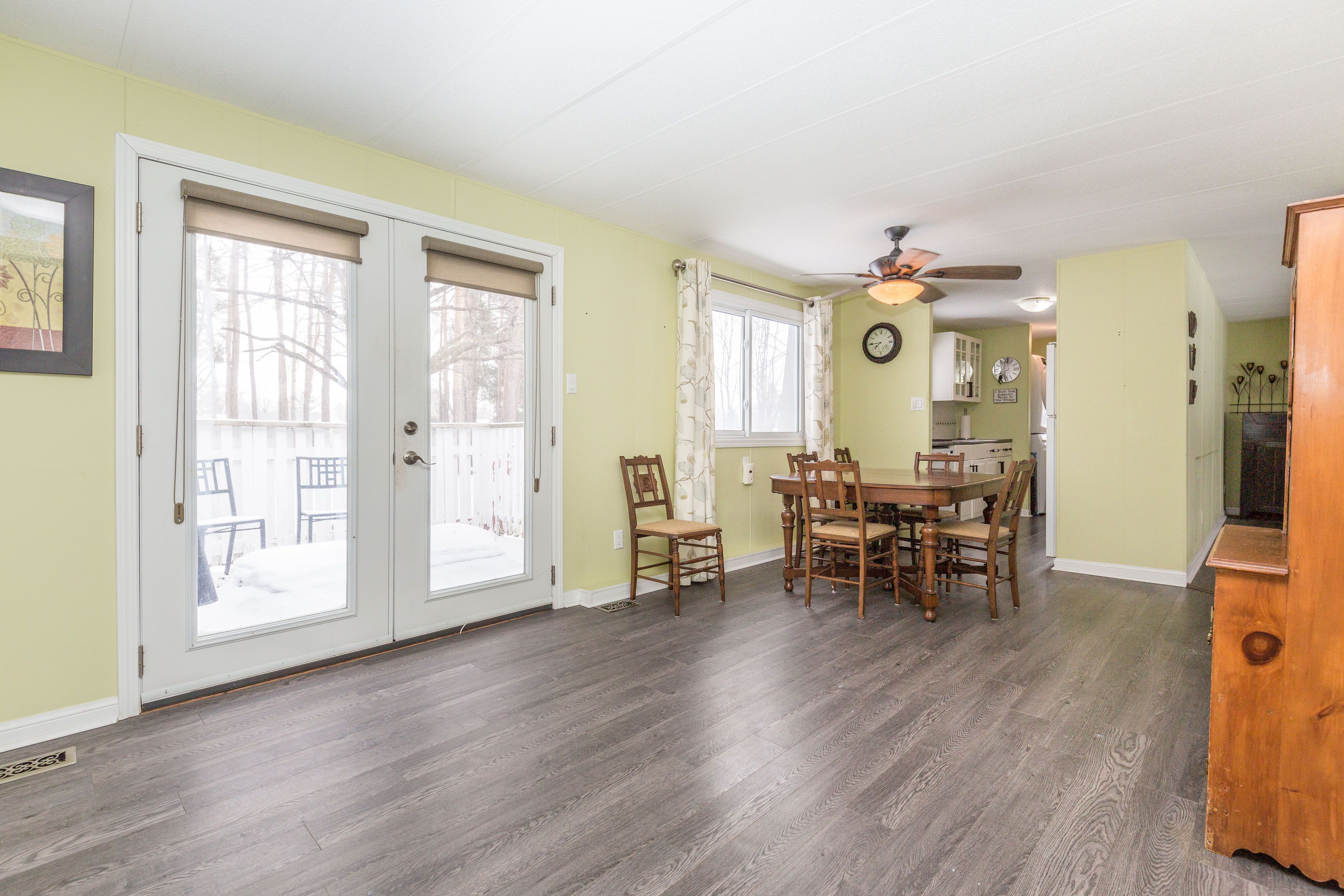 Welcome to relaxed, low-maintenance living in the highly sought-after north side of sandycove acres - a vibrant adult lifestyle community known for its friendly atmosphere and exceptional amenities. This well-designed 1056 sqft 2-bedroom, 2-bathroom home offers a comfortable and functional layout, highlighted by a spacious primary suite featuring a walk-in closet and private ensuite bath. Perfectly positioned within walking distance to the recreation centre, new pickleball courts, and outdoor saltwater pool, you'll enjoy an active lifestyle right at your doorstep. Inside, the home showcases a modern updated galley kitchen, stylish grey laminate flooring, and custom window coverings throughout. Double garden doors lead to a private deck, creating a seamless indoor-outdoor flow ideal for relaxing or entertaining. The mature, treed yard offers added privacy, while the covered front porch provides a charming space to unwind. Comfort is ensured year-round with forced air gas heating and central air conditioning. Additional highlights include private double car parking and an attractive, assumable lease of $590. 83/month plus taxes of $117. 17 ($709. 96 total), delivering excellent value in this desirable community. Ideally located near lake simcoe, innisfil beach park, and the south barrie go station, with convenient access to shopping and highway 400, this home offers the perfect balance of peaceful living and everyday convenience. A turnkey opportunity in a prime location - come experience the lifestyle for yourself.