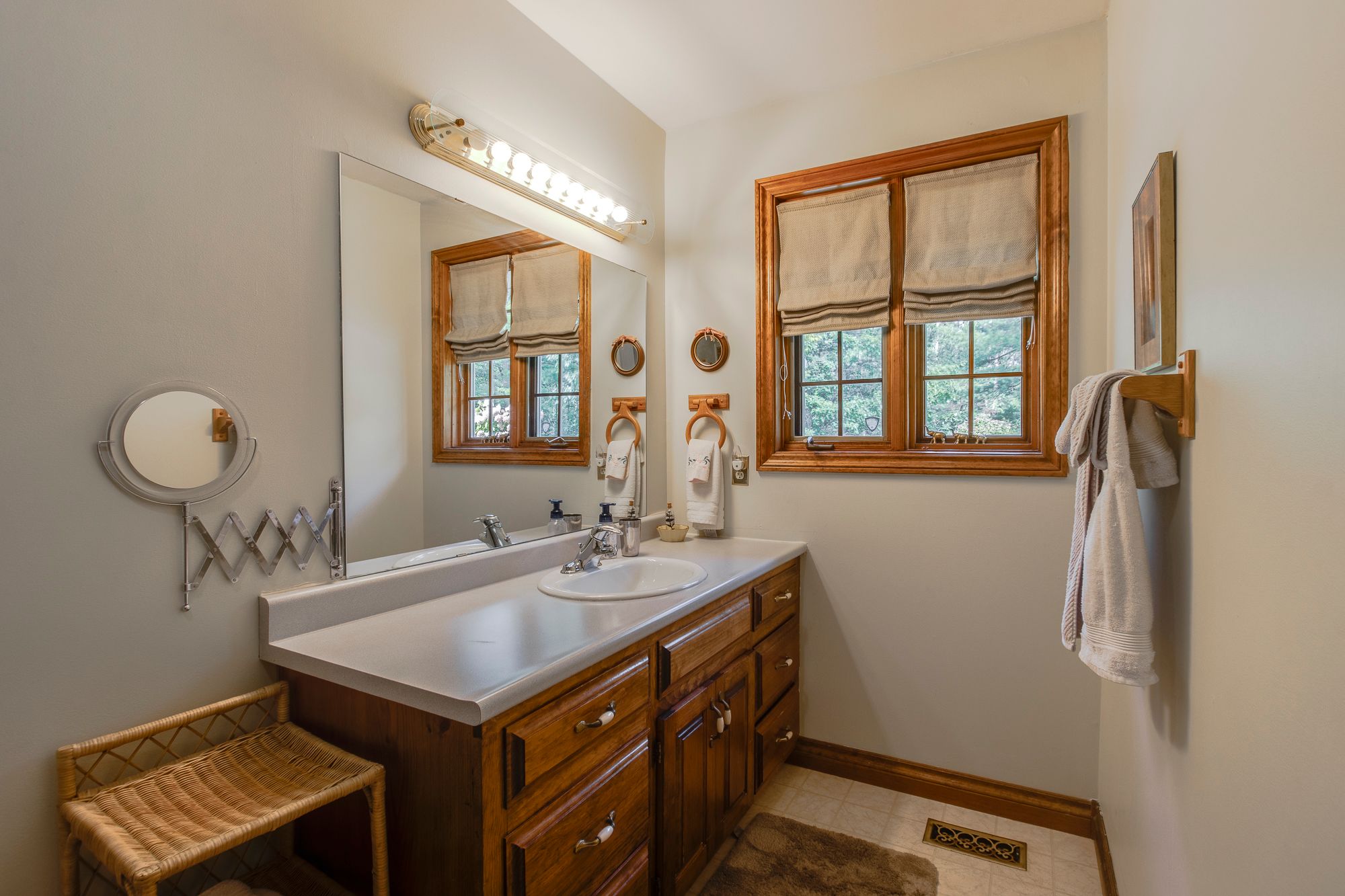• Large private yard surrounded by trees with ample garage and parking.