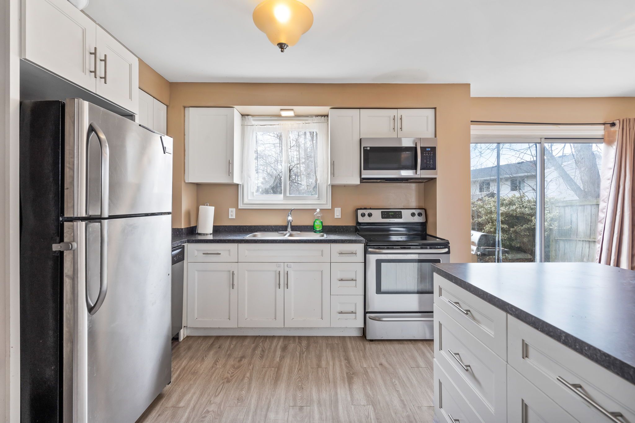 • Three good-sized bedrooms, all with closets for ample storage.