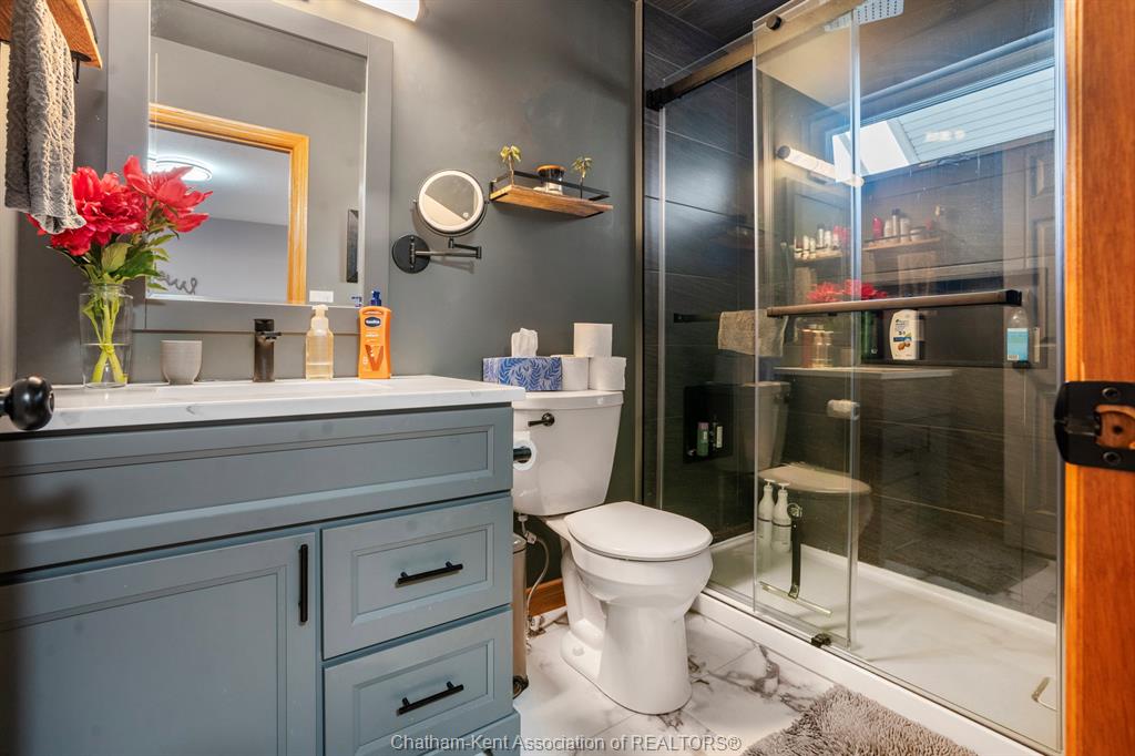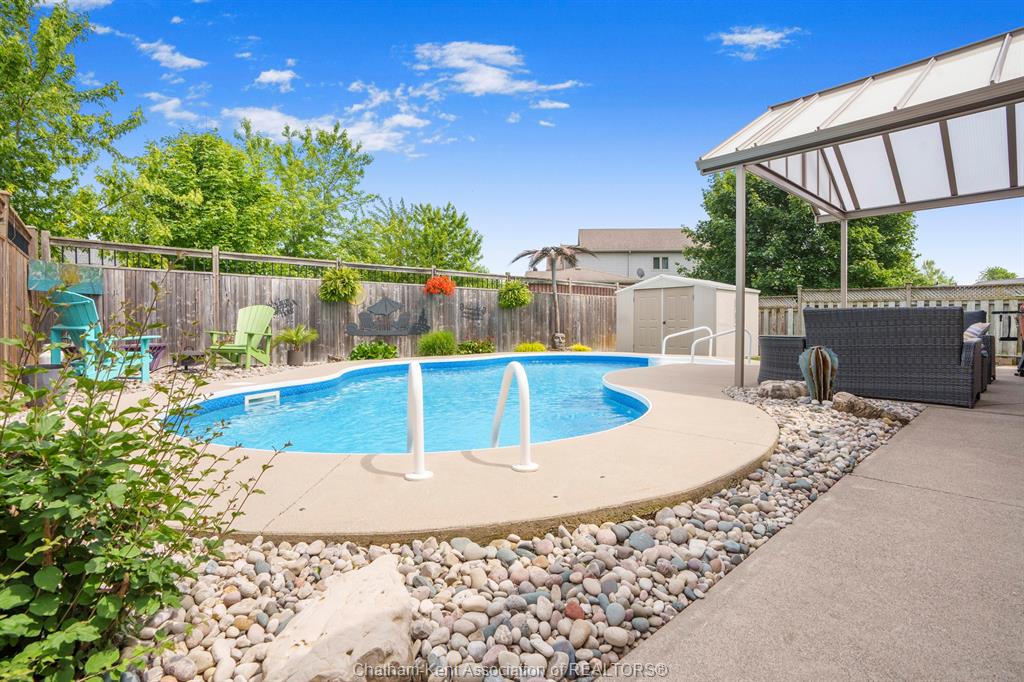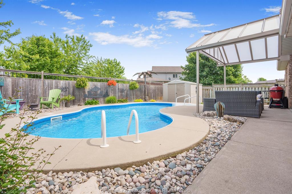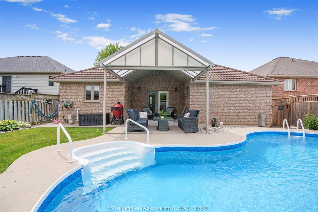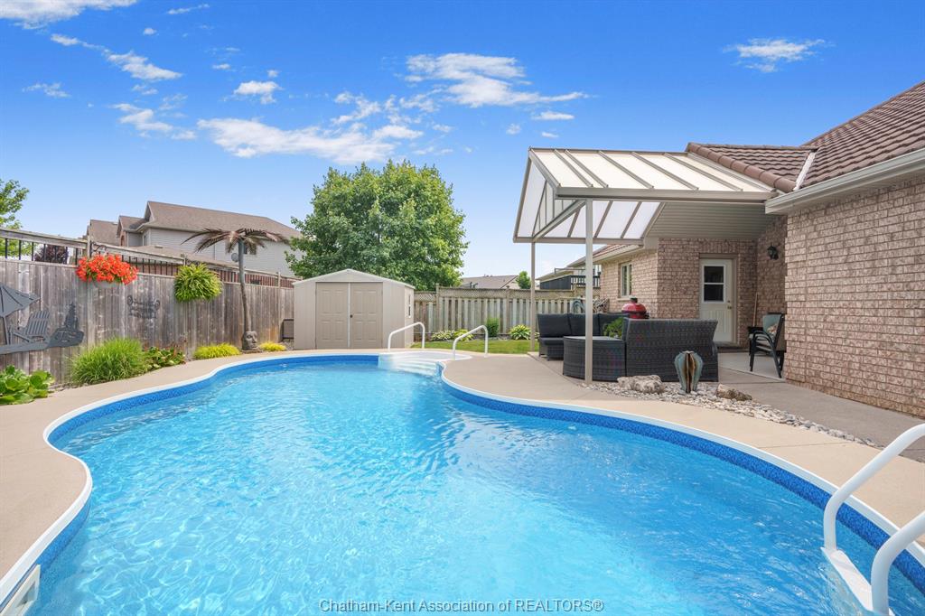 Welcome to north chatham living at its finest! This stunning brick rancher offers the perfect blend of style, comfort, and functionality in a highly sought-after neighbourhood. Step inside to a bright, open-concept layout featuring a beautifully designed kitchen, dining, and living space—ideal for entertaining or everyday family living. With 4 spacious bedrooms (2 up, 2 down) and 3 bathrooms, including a gorgeous 3-piece ensuite, there’s room for everyone to relax and unwind. Updated bathrooms (2021 & 2023), california shutters (2019), and modern light fixtures (2024) add a fresh, upscale feel throughout. The fully finished basement expands your living space with a large family room complete with a cozy gas fireplace, plenty of storage, and convenient walkout access to the heated and insulated 2. 5 car attached garage—perfect for hobbyists or extra workspace. Step outside to your private backyard oasis featuring an inground saltwater heated pool, covered patio, sprinkler system, and beautifully maintained grounds—perfect for summer entertaining. Major pool updates include liner (2020), heater (2022), pump (2023), and salt generator (2022), offering peace of mind for years to come. Additional highlights include: • furnace/ac with heat pump (2024) • owned hot water heater (2018) • steel roof for long-term durability • backup sump pump • security cameras and doorbell system this home checks all the boxes—modern updates, incredible outdoor space, and a prime north chatham location. A true turn-key property you don’t want to miss!