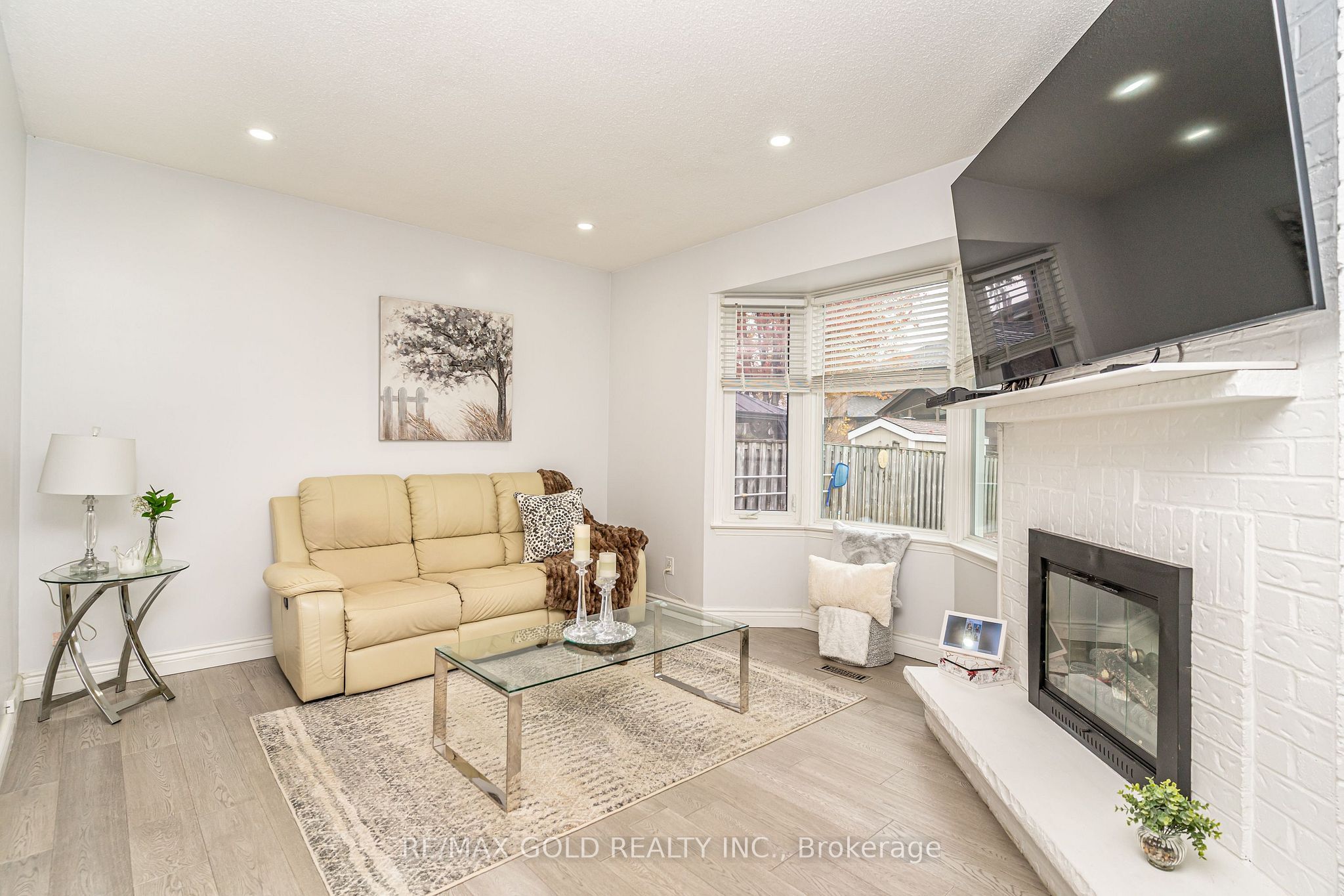 • Bright living room with views of a beautifully landscaped front yard.