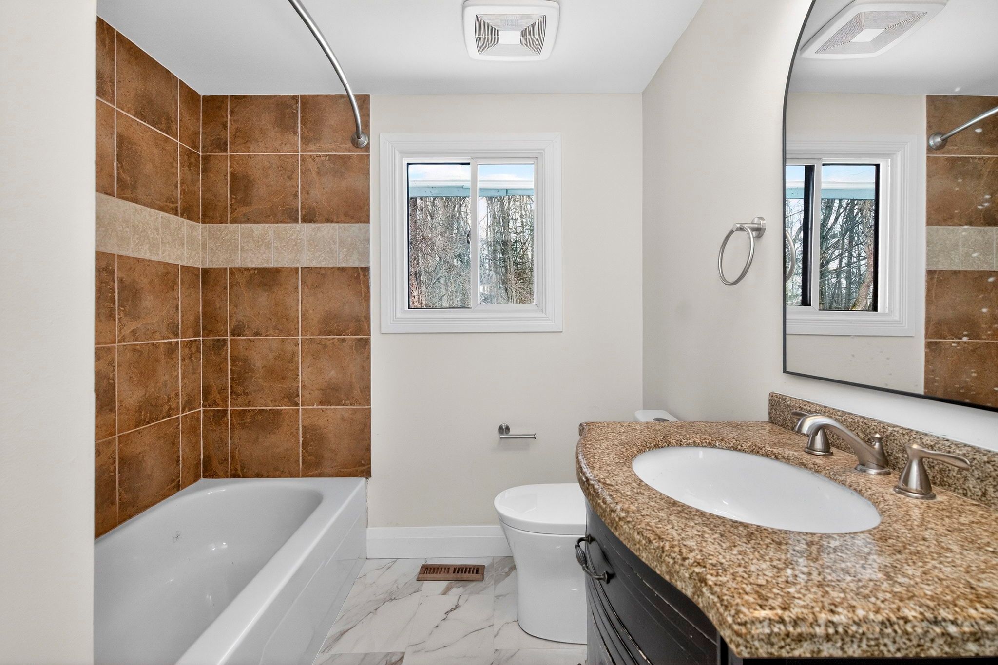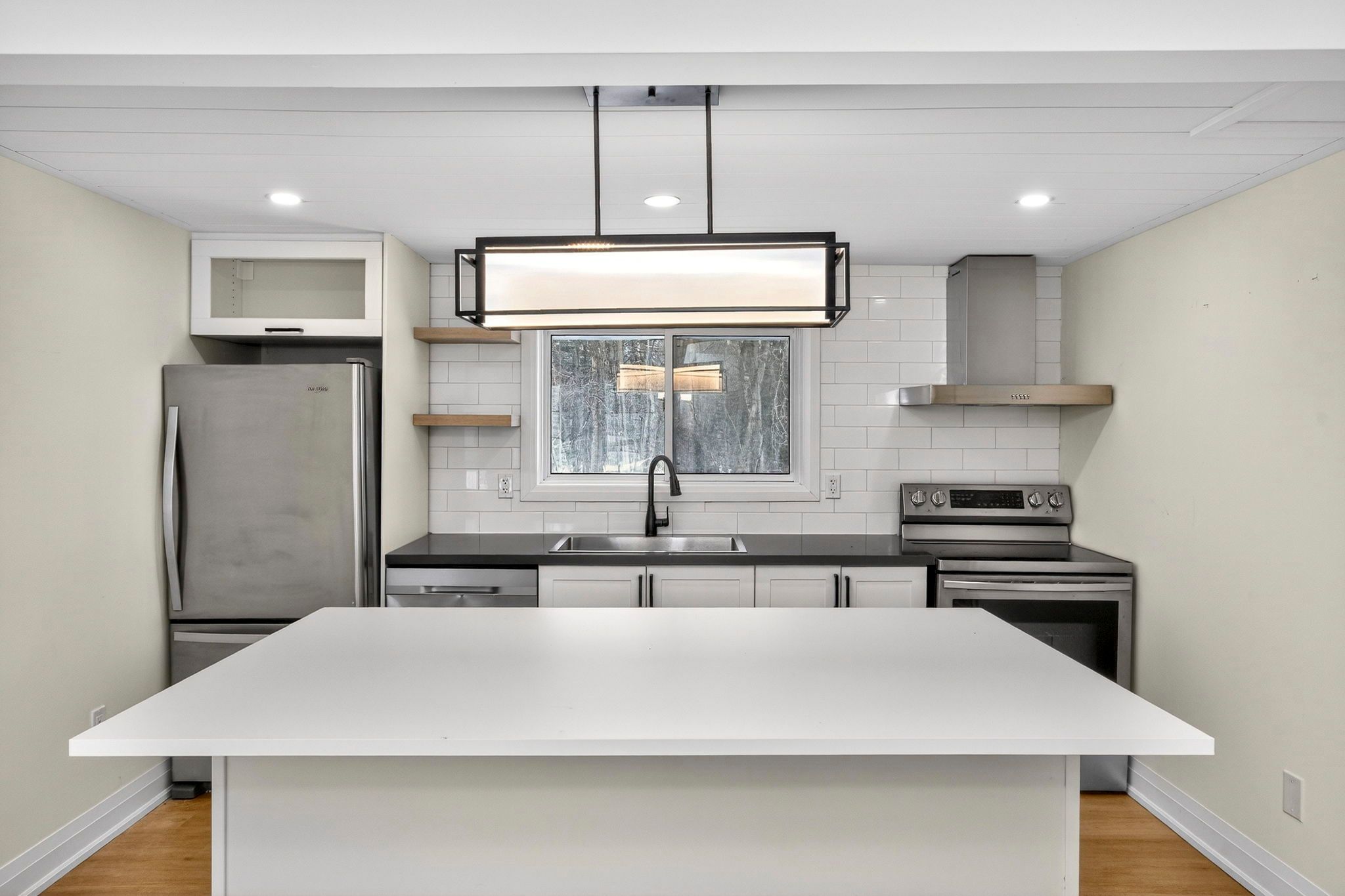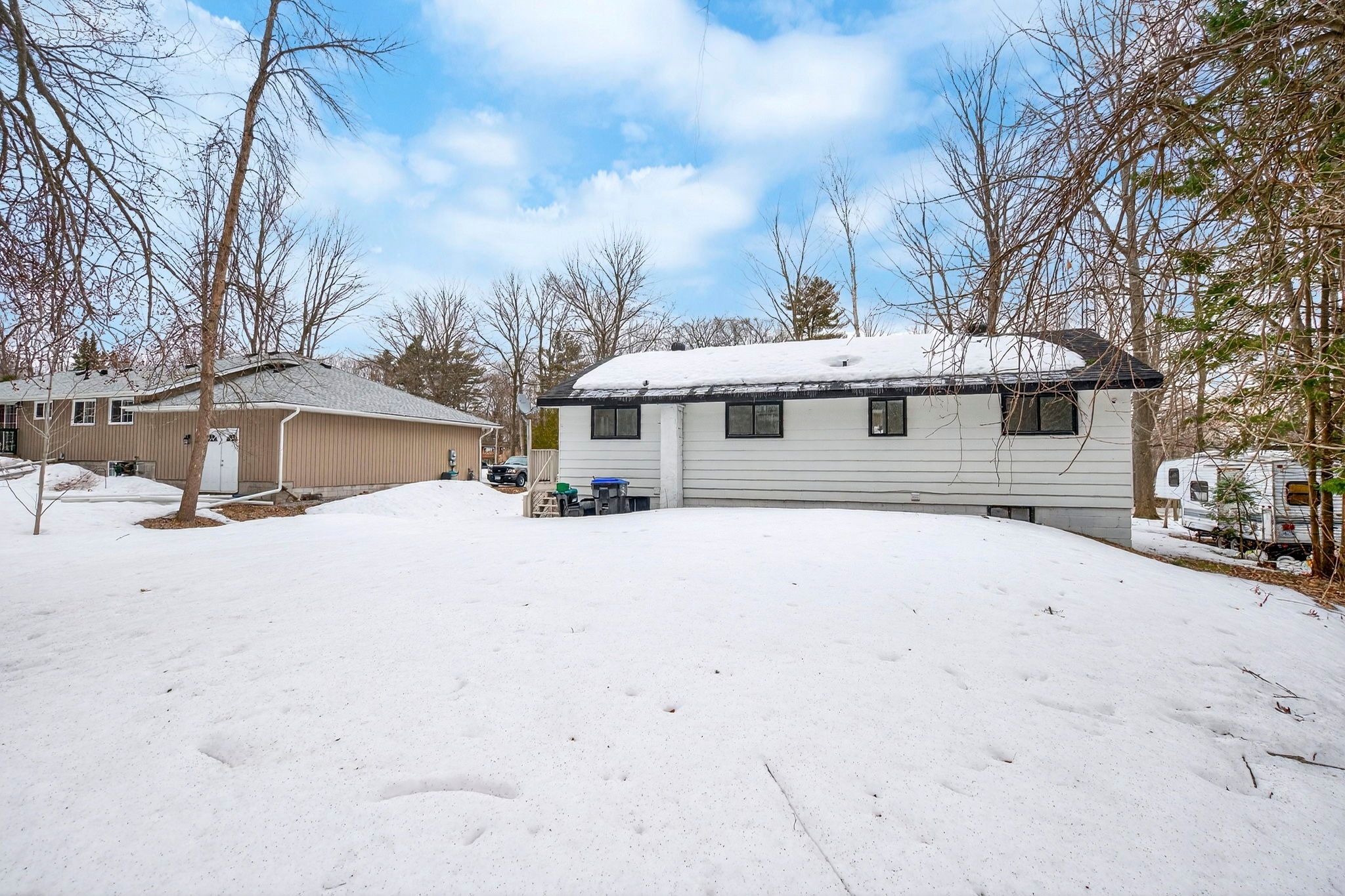 Newly renovated home with a full in-law suite, just steps to the sandy beach and waterfront park. This move-in-ready property sits in the highly sought-after peekaboo point area, offering a perfect blend of convenience, comfort, and cottage-country charm. Set on a generous 79 x 130 ft lot, this home provides over 1,400 sq. Ft. Of finished living space, ideal for first-time buyers, downsizers, or families looking for added flexibility. The moment you walk in, you're welcomed by a bright open-concept living and dining area, perfect for cozy evenings or hosting friends. The main floor features three spacious bedrooms, offering room for children, guests, or a peaceful home office. The kitchen is warm and inviting, complete with a large island and breakfast bar - the ideal spot for morning coffee or casual meals. A window over the sink overlooks the private, wooded backyard, creating a calming moment every time you're there. Downstairs, the fully finished in-law suite with separate entrance adds incredible versatility. Whether you need space for extended family, want rental income, or prefer a private area for guests, this layout offers true flexibility and peace of mind. With updates including a new furnace, new septic system, and modern finishes throughout, all the big work is done - simply move in and enjoy. Walk to the water to paddle board, swim, unwind, and truly live the good life by the lake. Close to restaurants, local shops, and the hospital, and minutes from penetang, midland, and everything tiny has to offer, this home is the perfect mix of lifestyle, value, and lakeside living