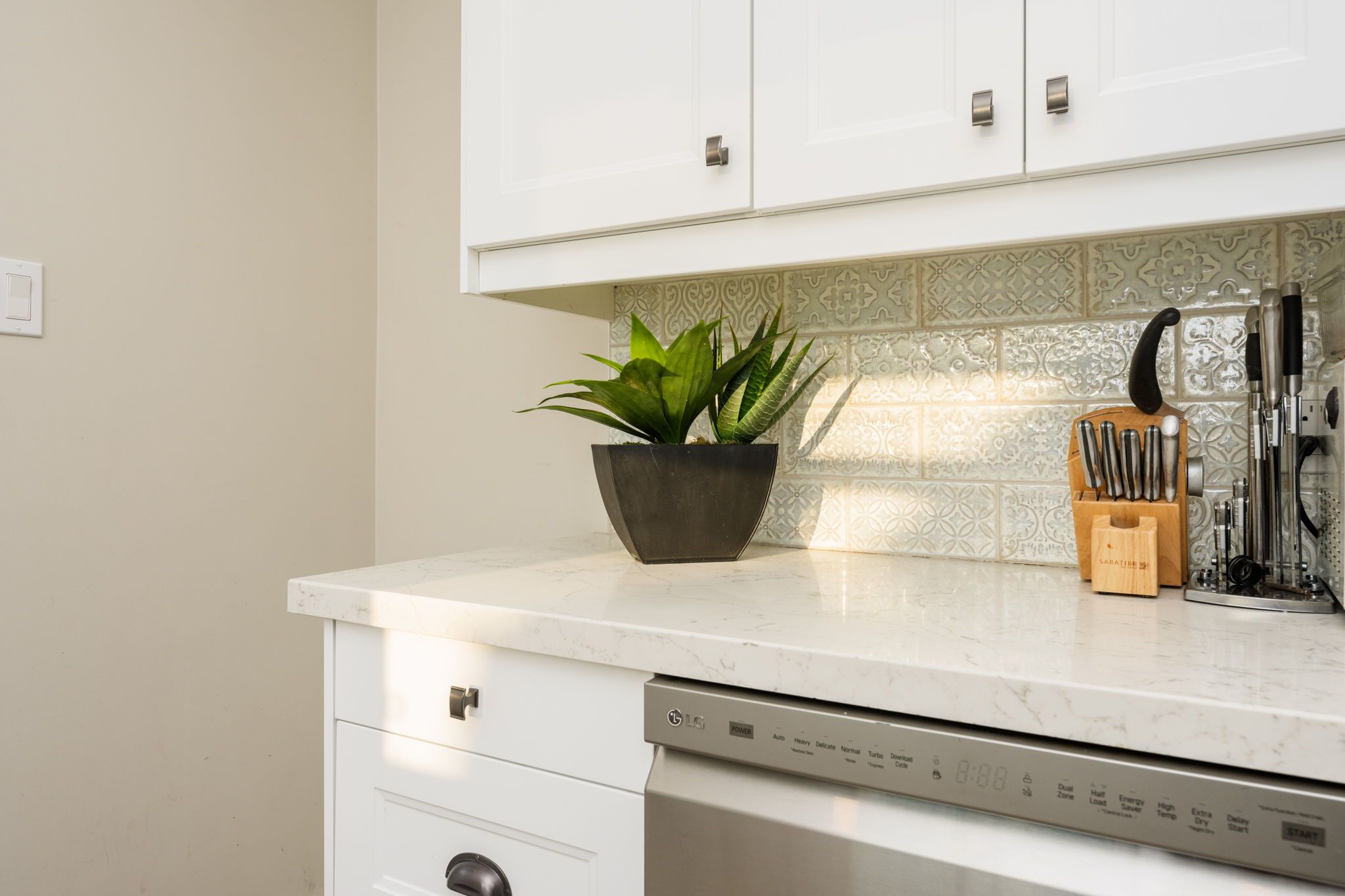 • Attractive kitchen featuring quartz counters and stainless steel appliances.