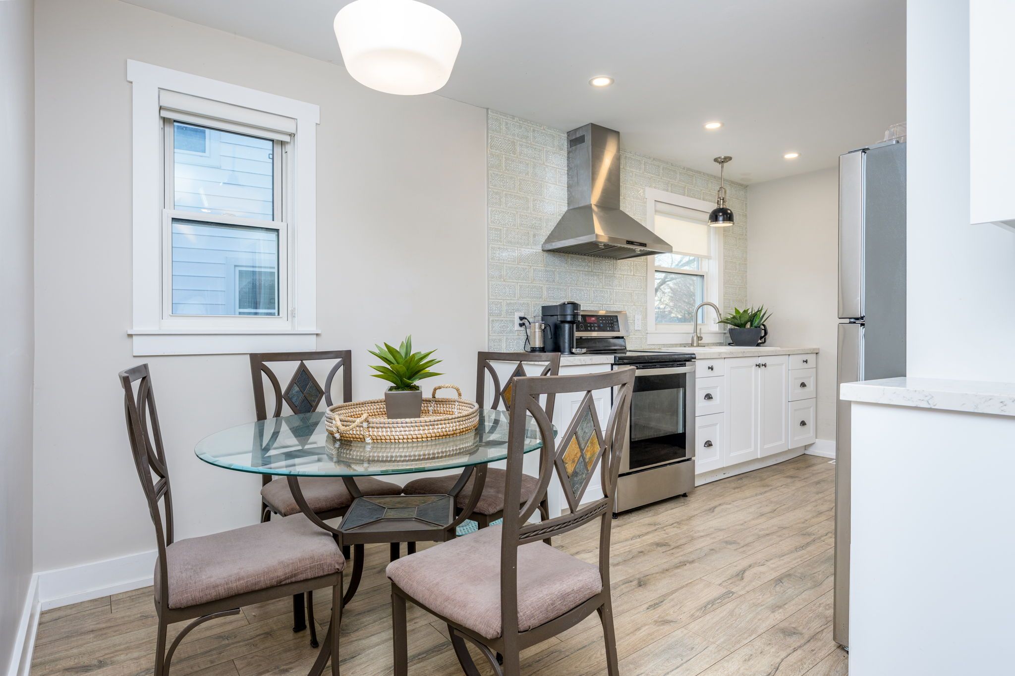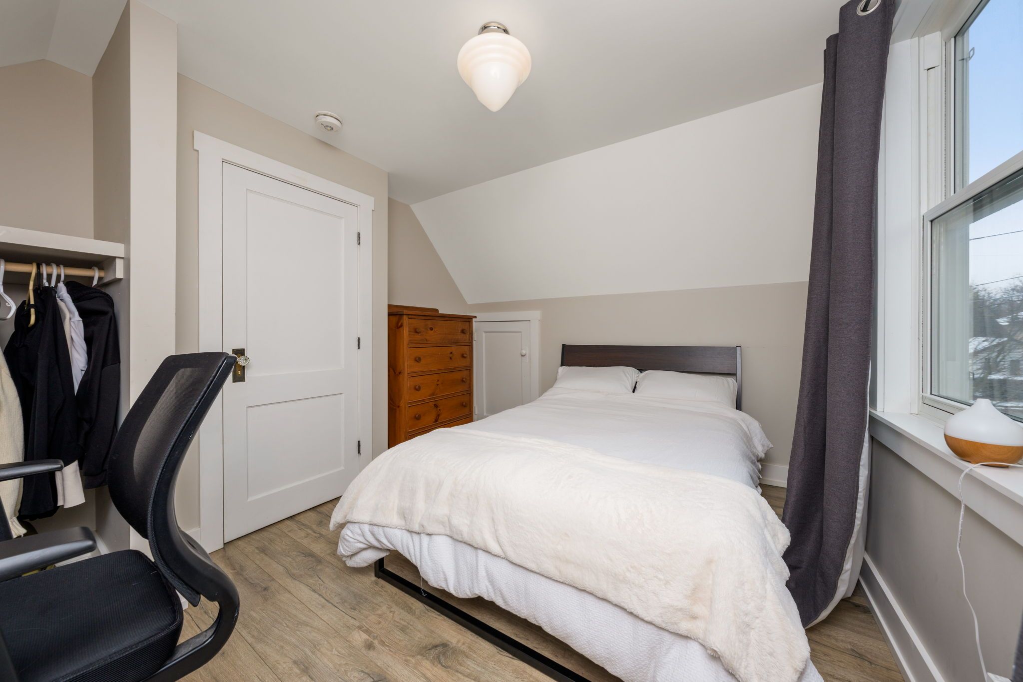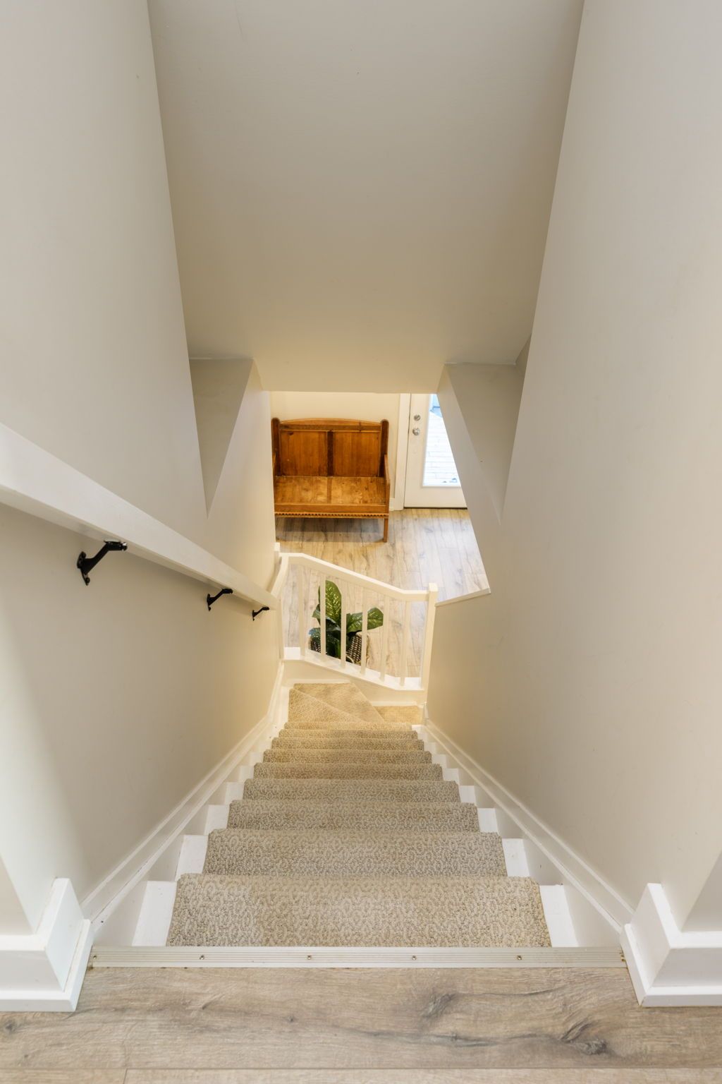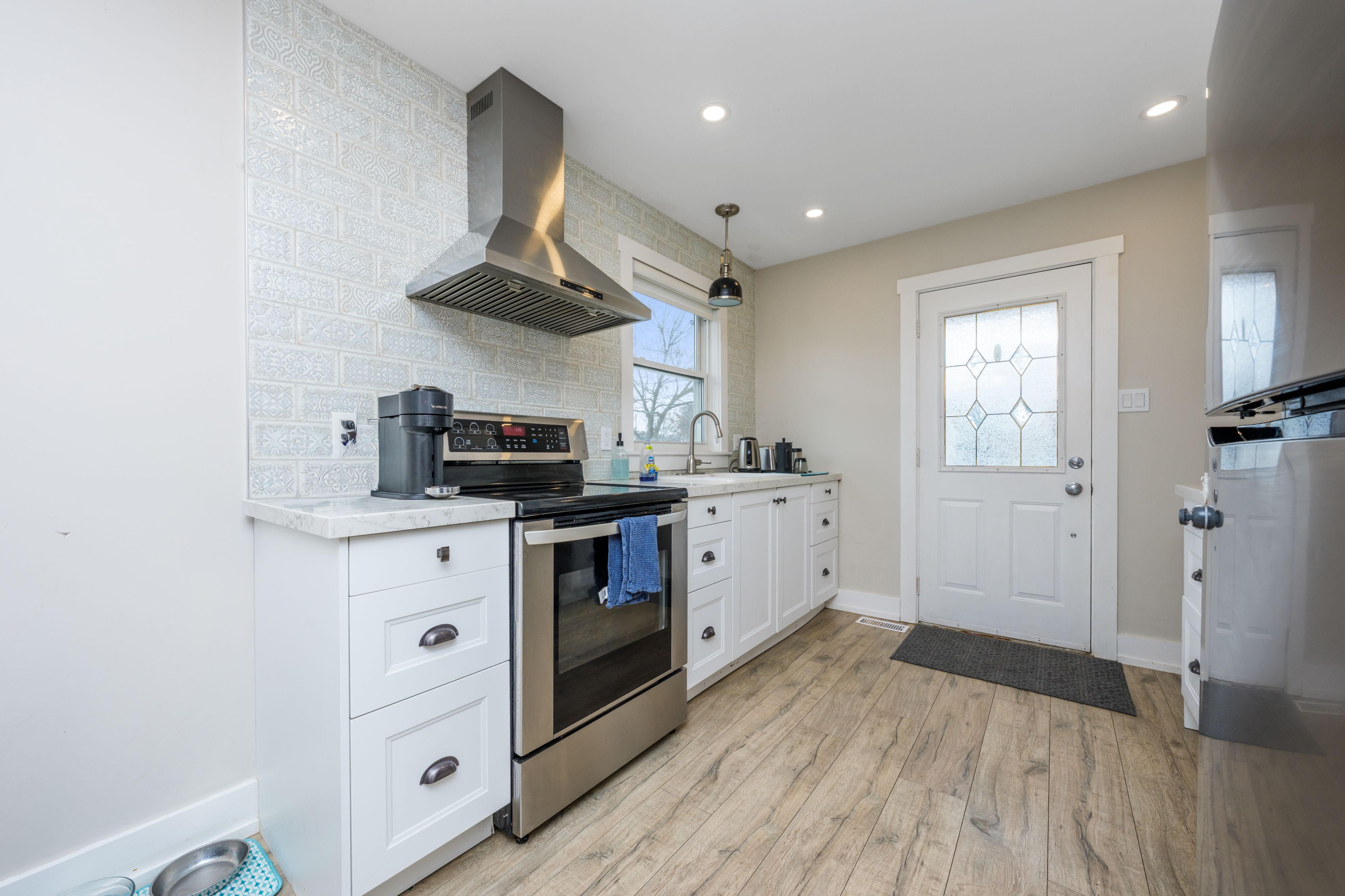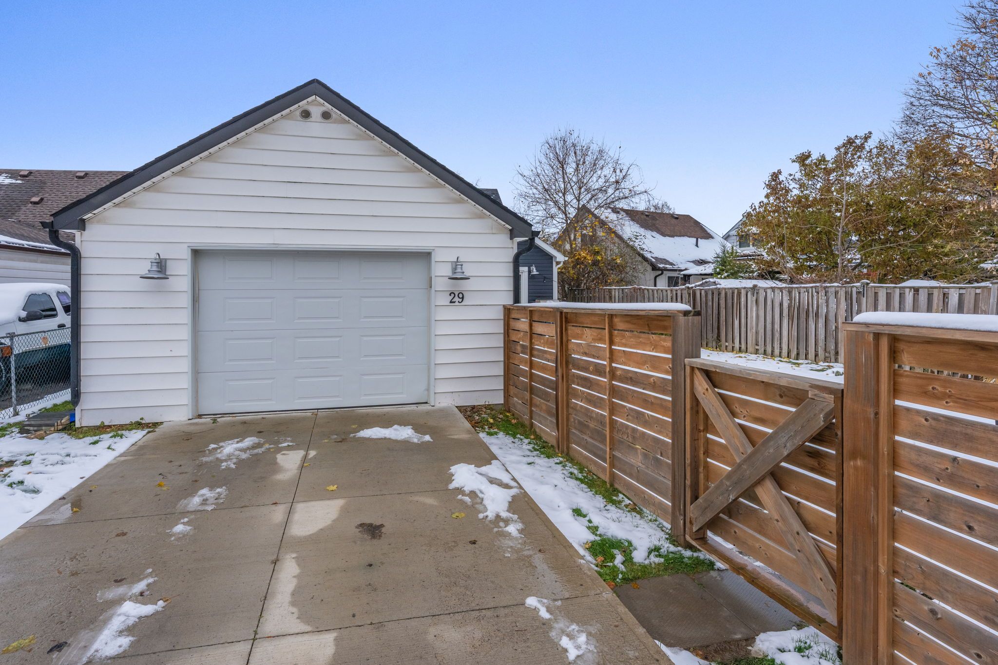 Amazing pie-shaped lot in prime georgetown location with potential to sever or add additional dwelling unit! Set on an expansive lot with access from two roads, this fully renovated property offers unlimited possibilities with tons of parking and a separate garage - perfect for hobbyists or extra storage. Inside, the main and upper levels have been fully redone in 2021 with attention to detail, quality finishes and a designer flair. The home features two sleek bathrooms - a 4-piece on the main level and a 2-piece upstairs. The sun-filled living room is warm and inviting, with access to the deck and fenced in yard - ideal for weekend bbqs or morning coffee. The sharp kitchen with eat-in area boasts neutral white cabinetry, quartz counters, stainless steel appliances with two bright windows. Throughout the home, you'll find stylish vinyl plank flooring that enhances the modern appeal. The main floor includes a convenient primary bedroom, while the upper level offers two cozy bedrooms with gently sloped ceilings and charming knee walls. A main-floor laundry adds everyday convenience. All this in a fabulous location -walking distance to everything georgetown has to offer, including schools, parks, shops, the go station, and more.