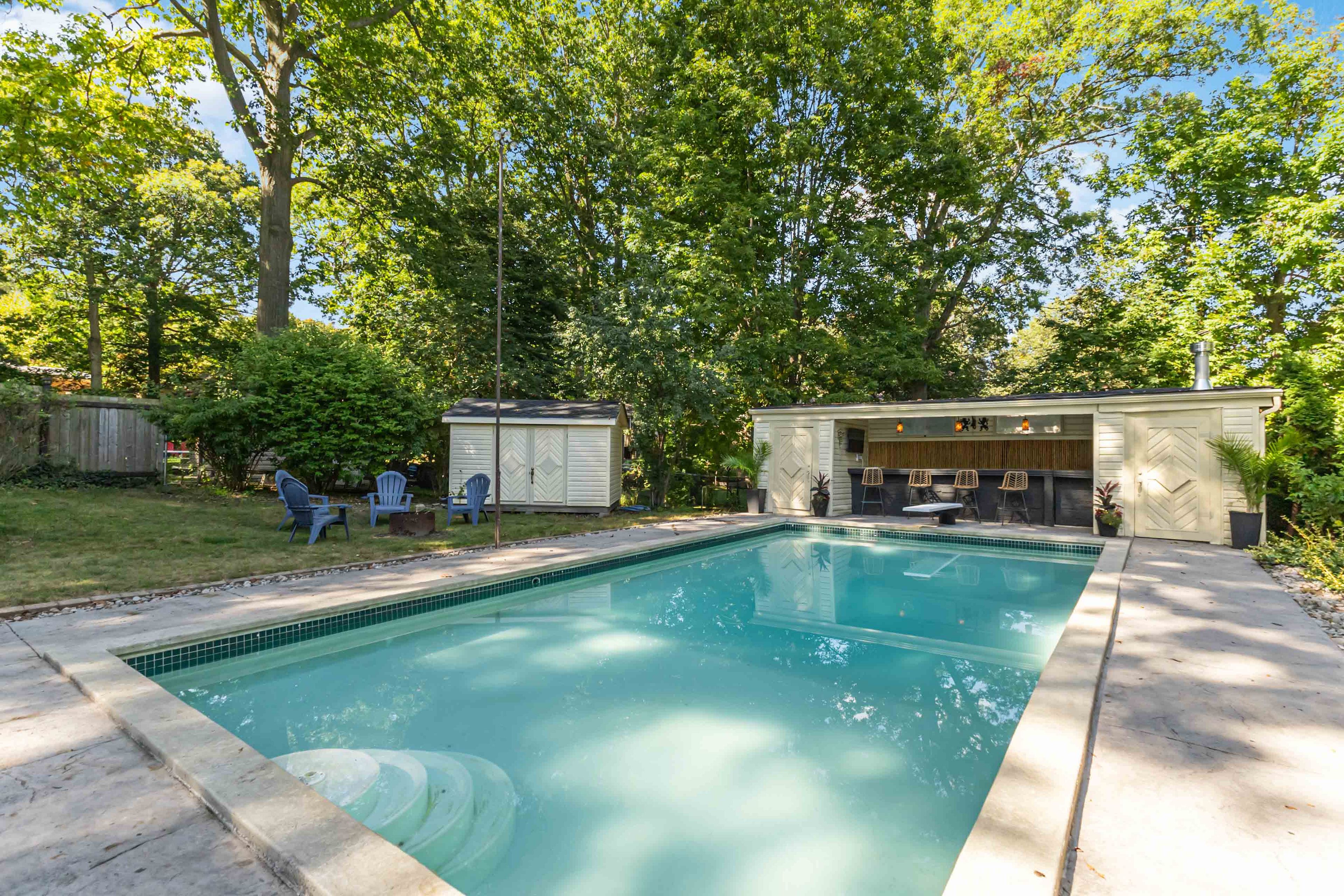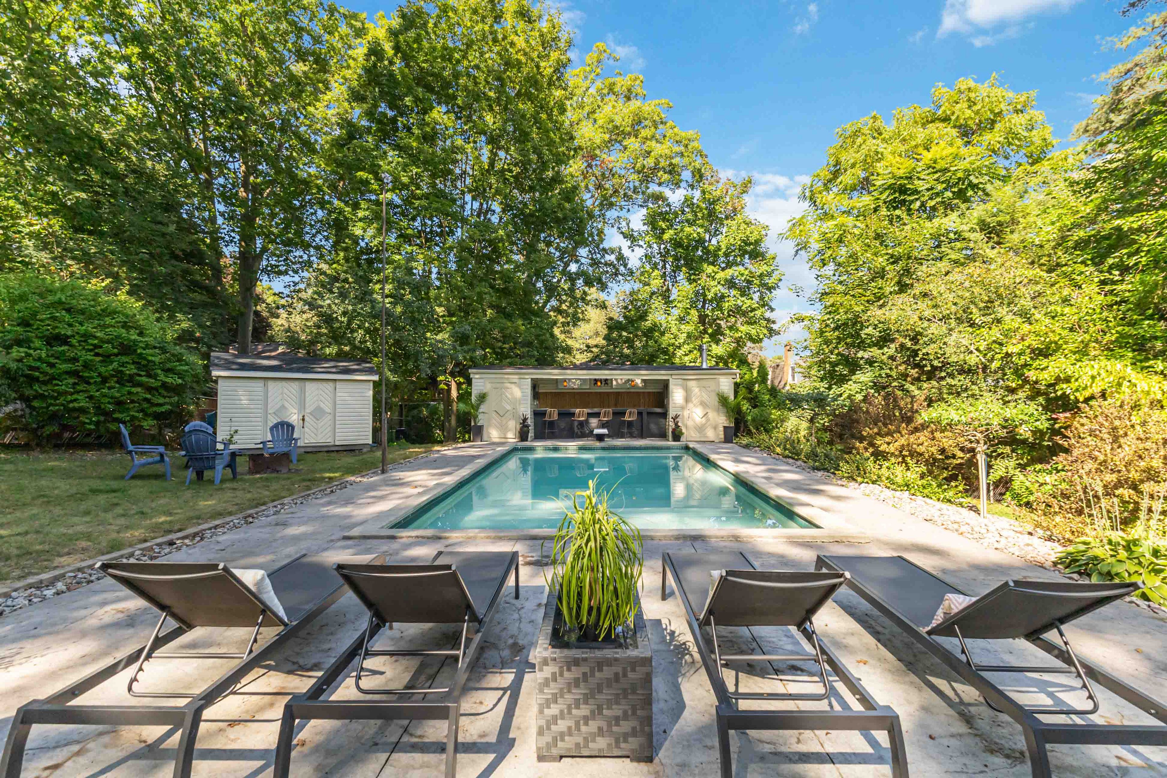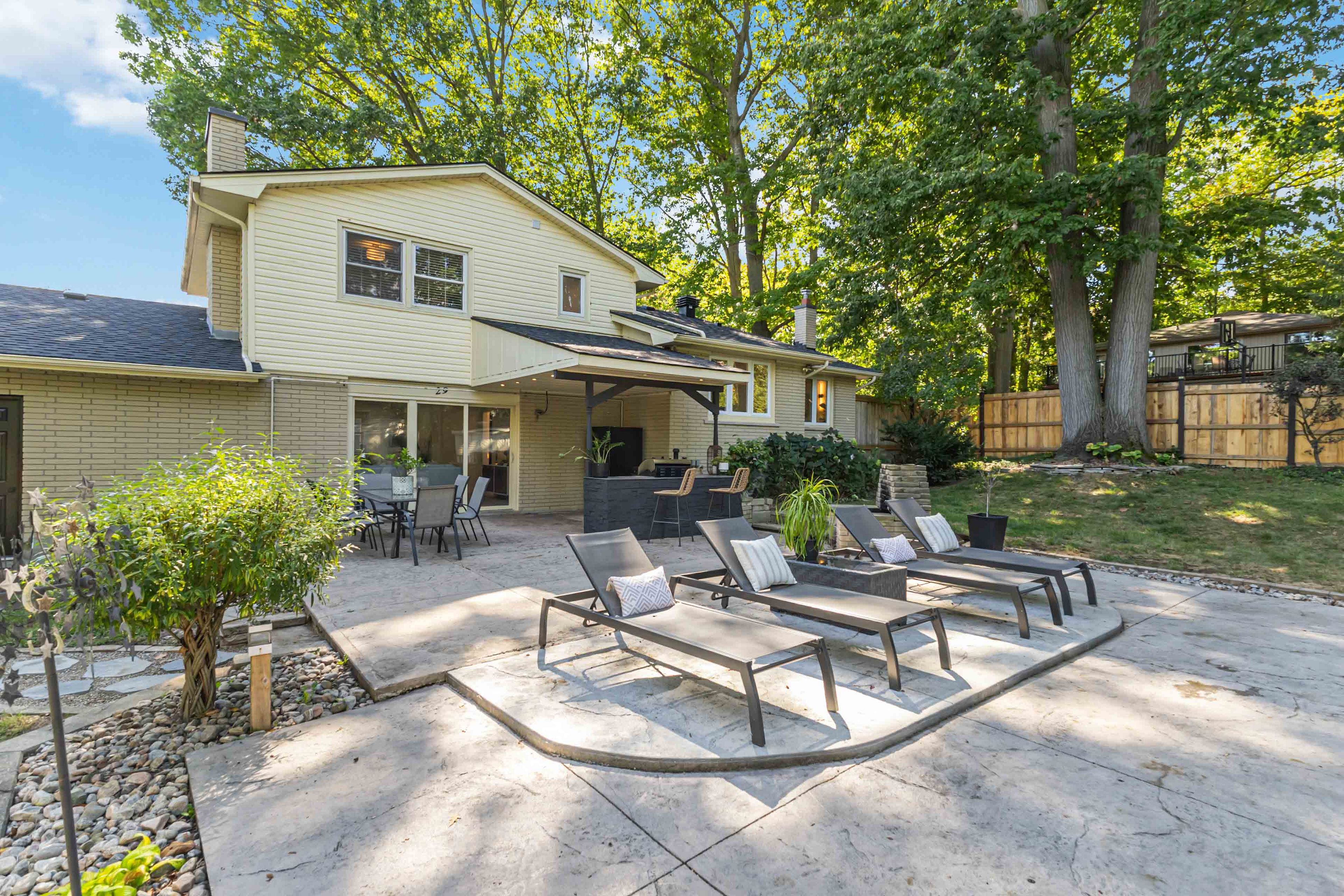 An incredibly rare opportunity in beautiful byron village welcome to 29 park lane court, tucked within the serene beauty of warbler woods, this custom-built residence is more than a home-it's a hidden retreat. Designed and built by eadie & wilcox for one of their own senior team members, this property sits proudly between the founders' personal estates. Set on an ultra private lot, surrounded by mature trees, it feels like your own forest oasis in the heart of the village. The home is perfectly designed for family living and entertaining, with an oversized poured concrete patio, covered outdoor kitchen, and a resort-style 35' x 17' heated concrete pool complete with pool house, private bar, change room, and storage sheds. The driveway easily accommodates eight vehicles, welcoming gatherings both large and small. The garage is currently configured as a finished workshop, perfect for a handyman or a man cave. This 4-bedroom, 3-bathroom home blends timeless design with modern comfort. Every detail has been thoughtfully updated to provide peace of mind for years to come. Inside this home features extensive upgrades making it a one of a kind. A stunning brand new designer kitchen 2024 & professional grade appliances, 3 fully renovated bathrooms, new washer & dryer, new roof 2025, new electrical panel upgrade 2024, new hot water furnace 2022 (radiant baseboard heating), new ac and air-handler system (forced air ac), new pool heater & line upgrade 2024. Location highlights: steps to warbler woods esa & trails & grandview park. Minutes walk to springbank park, boler mountain & byron village shops, cafés, and restaurants. This is more than a home-it's a once-in-a-lifetime chance to own a true byron village landmark property.