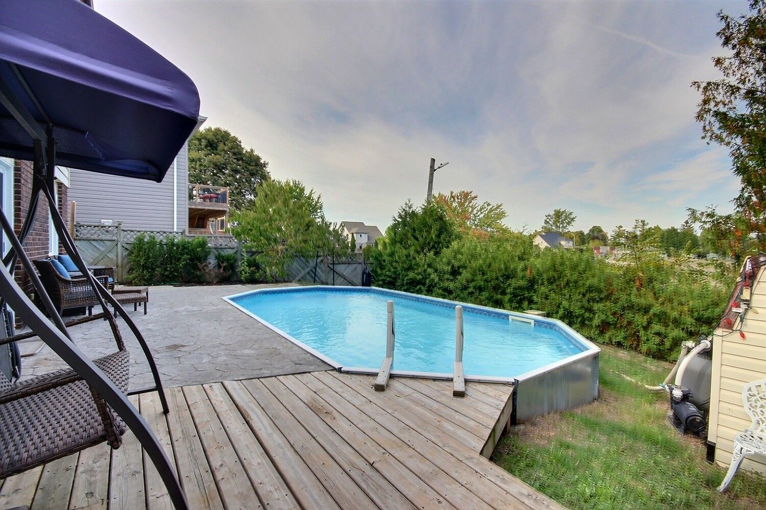 • Backyard oasis with a fenced yard and a beautiful pool.