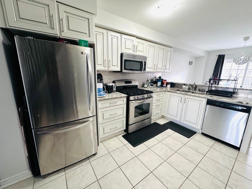 Gorgeously well-kept 3-storey freehold townhome featuring 3 bedrooms & 3 bathrooms, loaded with quality upgrades throughout. This beautiful home offers hardwood flooring, a solid oak staircase, granite countertops in the kitchen and bathrooms, shutters and stainless-steel appliances. The bright eat-in kitchen includes a spacious breakfast area and walk-out to a private deck, perfect for entertaining or relaxing. The main floor features a 3pc bathroom and a versatile 3rd bedroom/home office, ideal for working from home. Conveniently located close to schools, library, gym, public transit, recreation facilities, baseball & cricket fields, splash pad, shopping, and golf courses, with quick access to hwy410, hospital, enjoy the beautiful park located right within the complex, perfect for families with children. A wonderful home for a professional couple or small family.