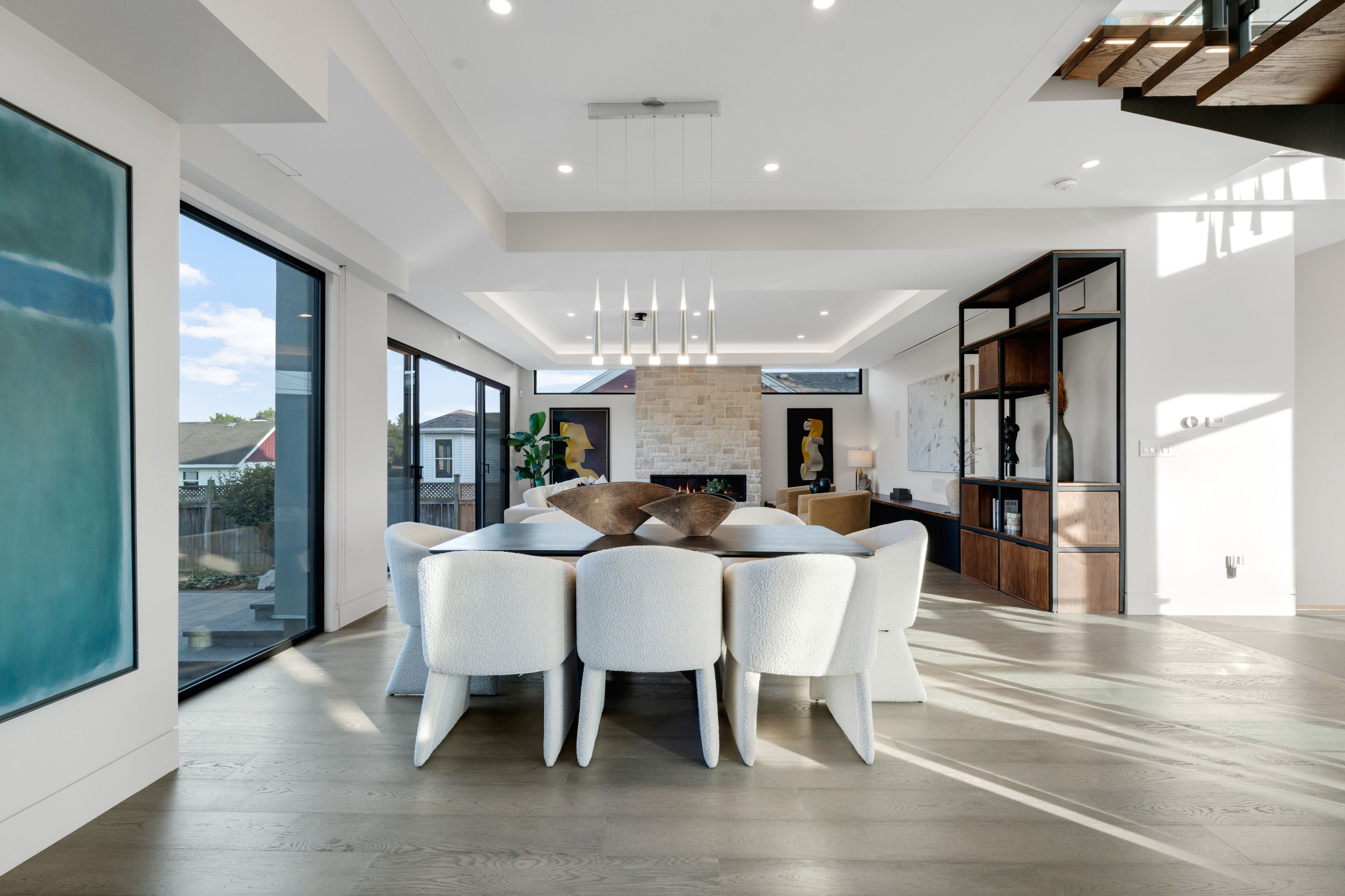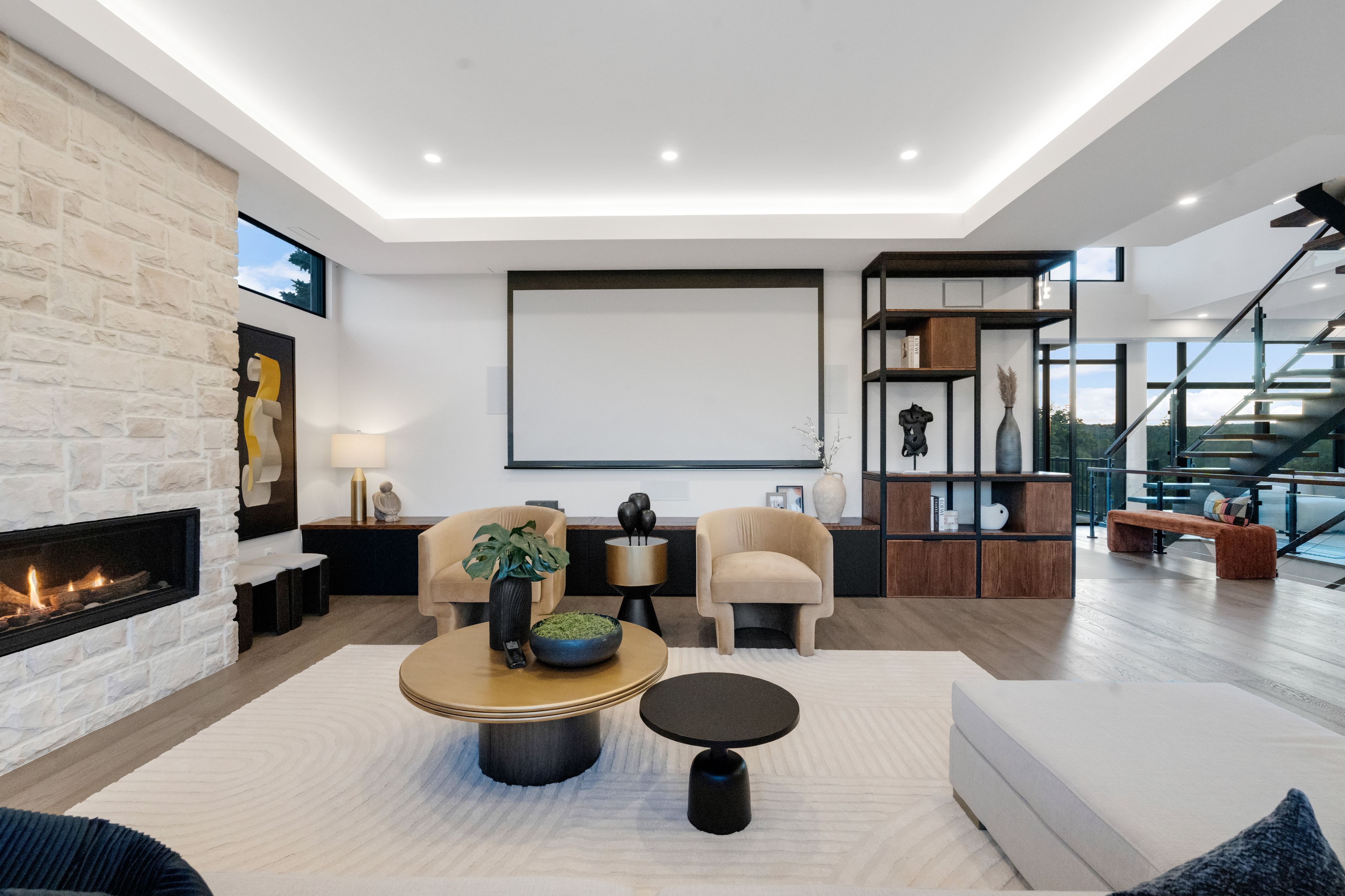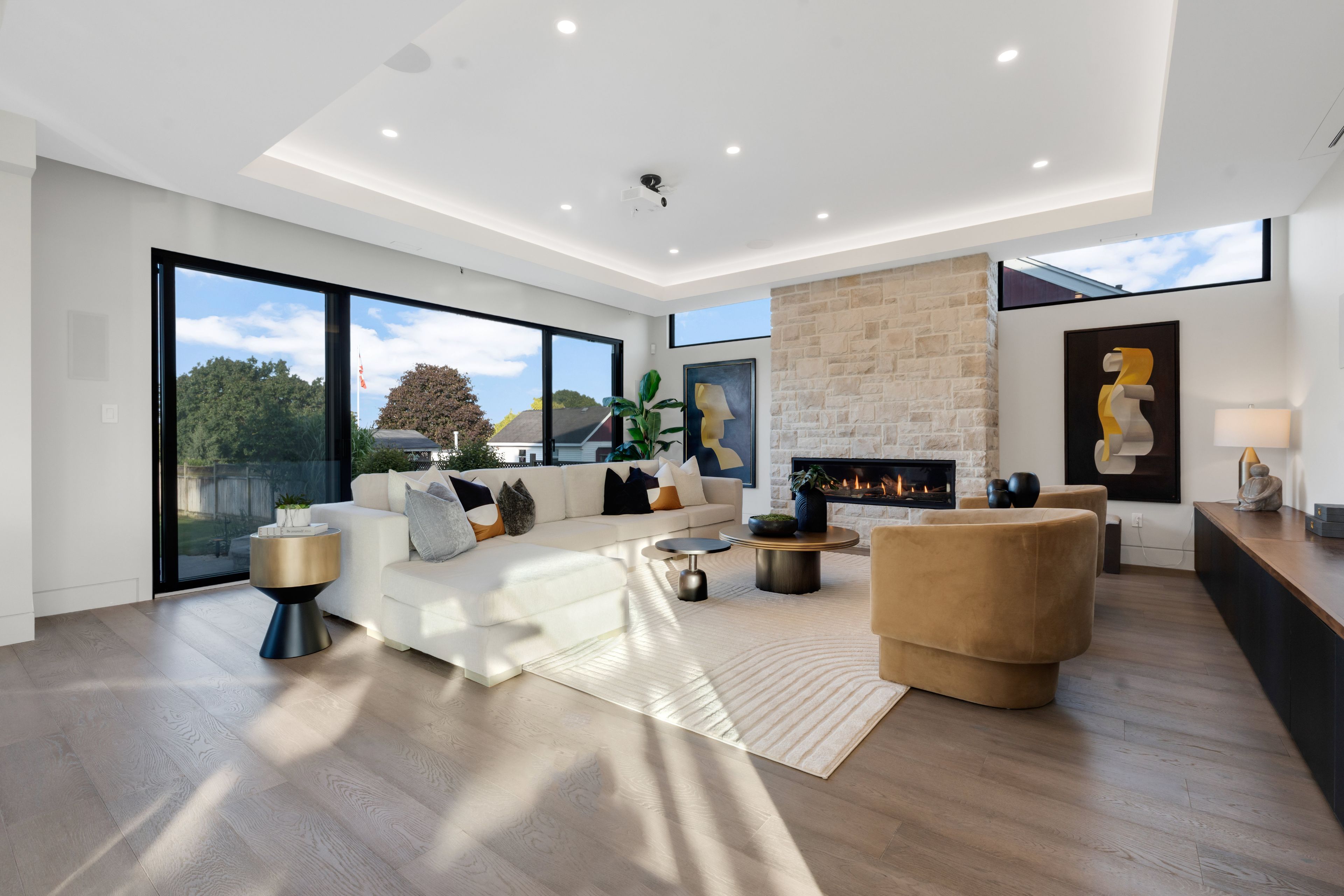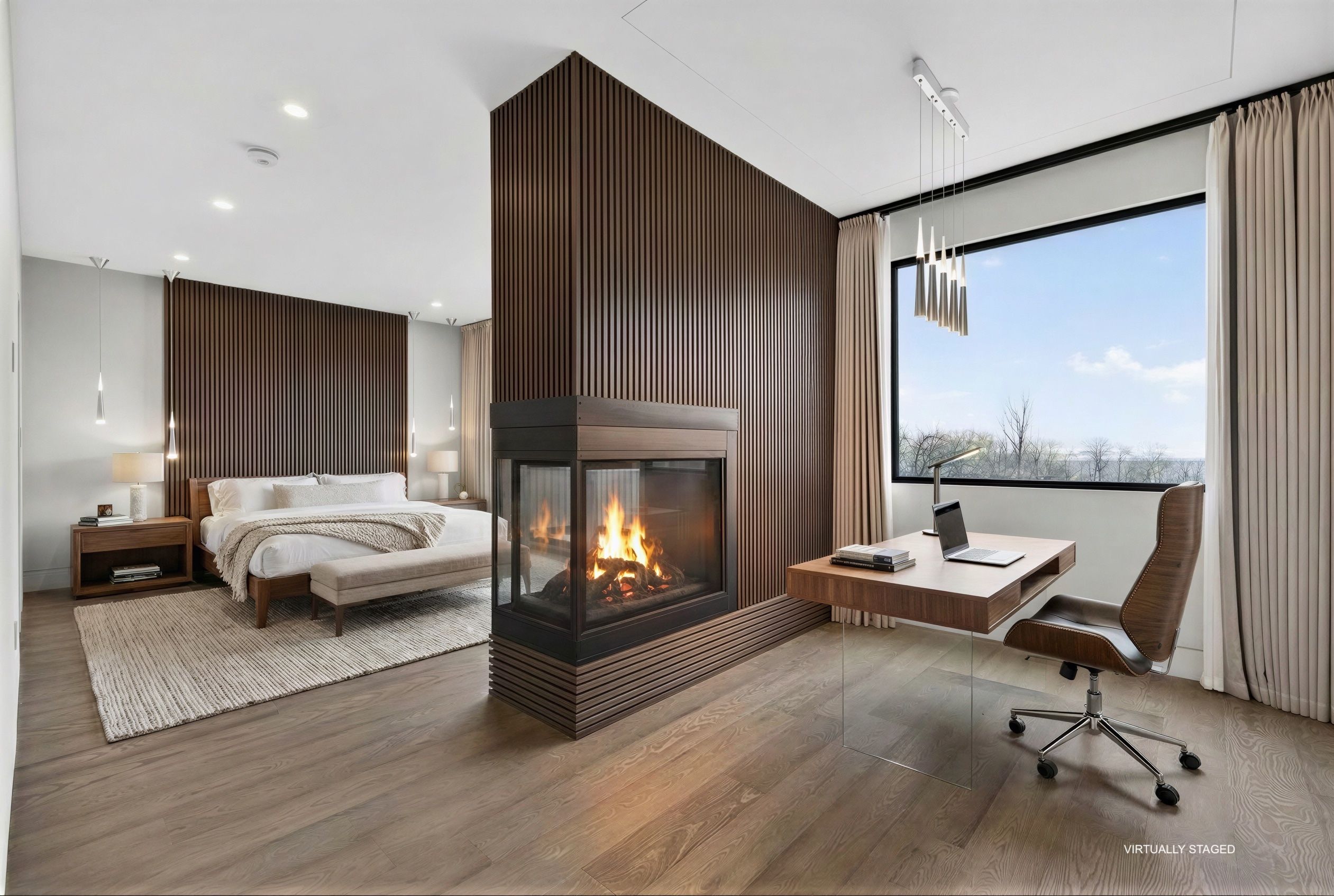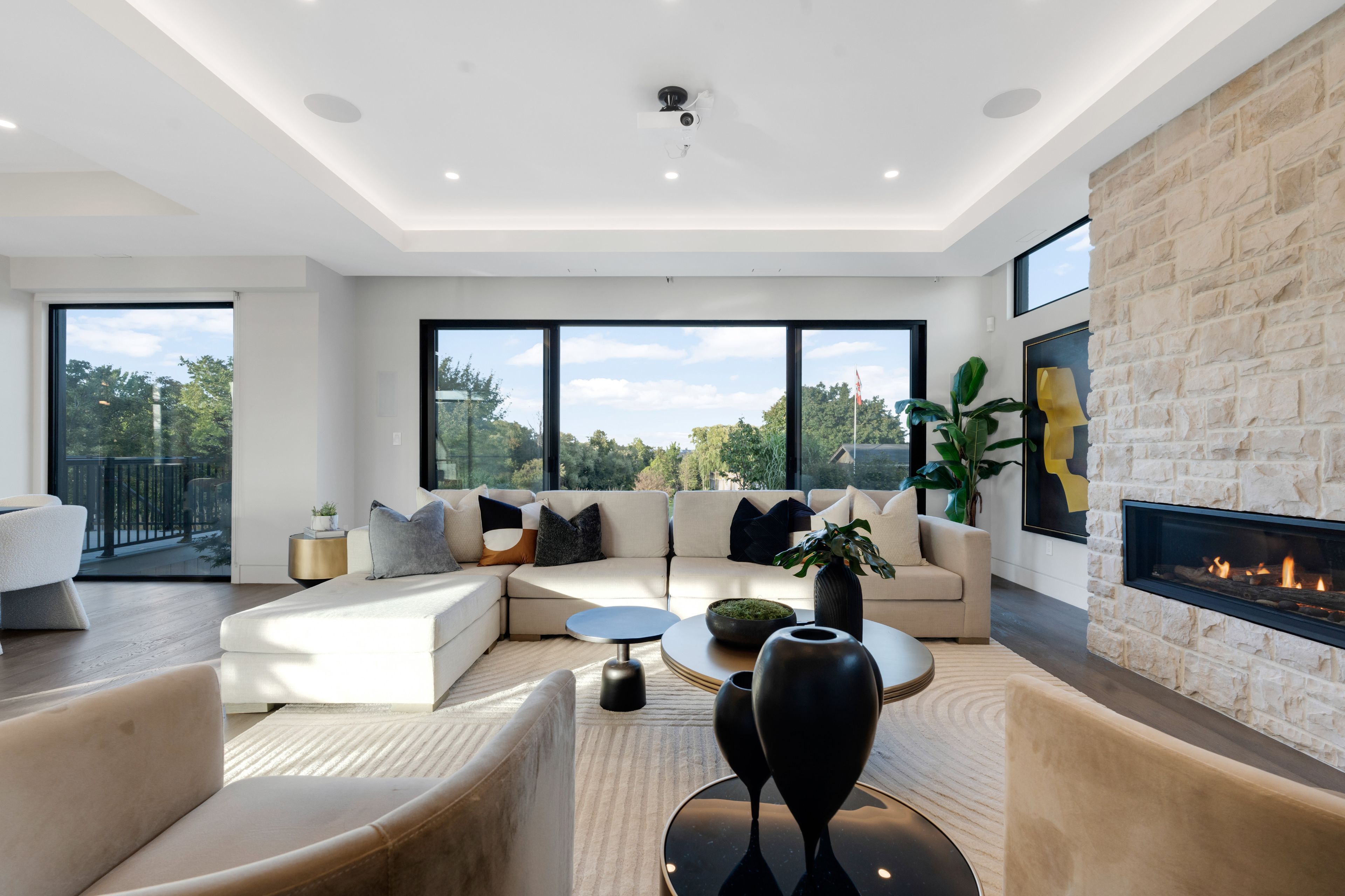 • Luxurious primary suite with a triple-sided fireplace and spa-like ensuite.
