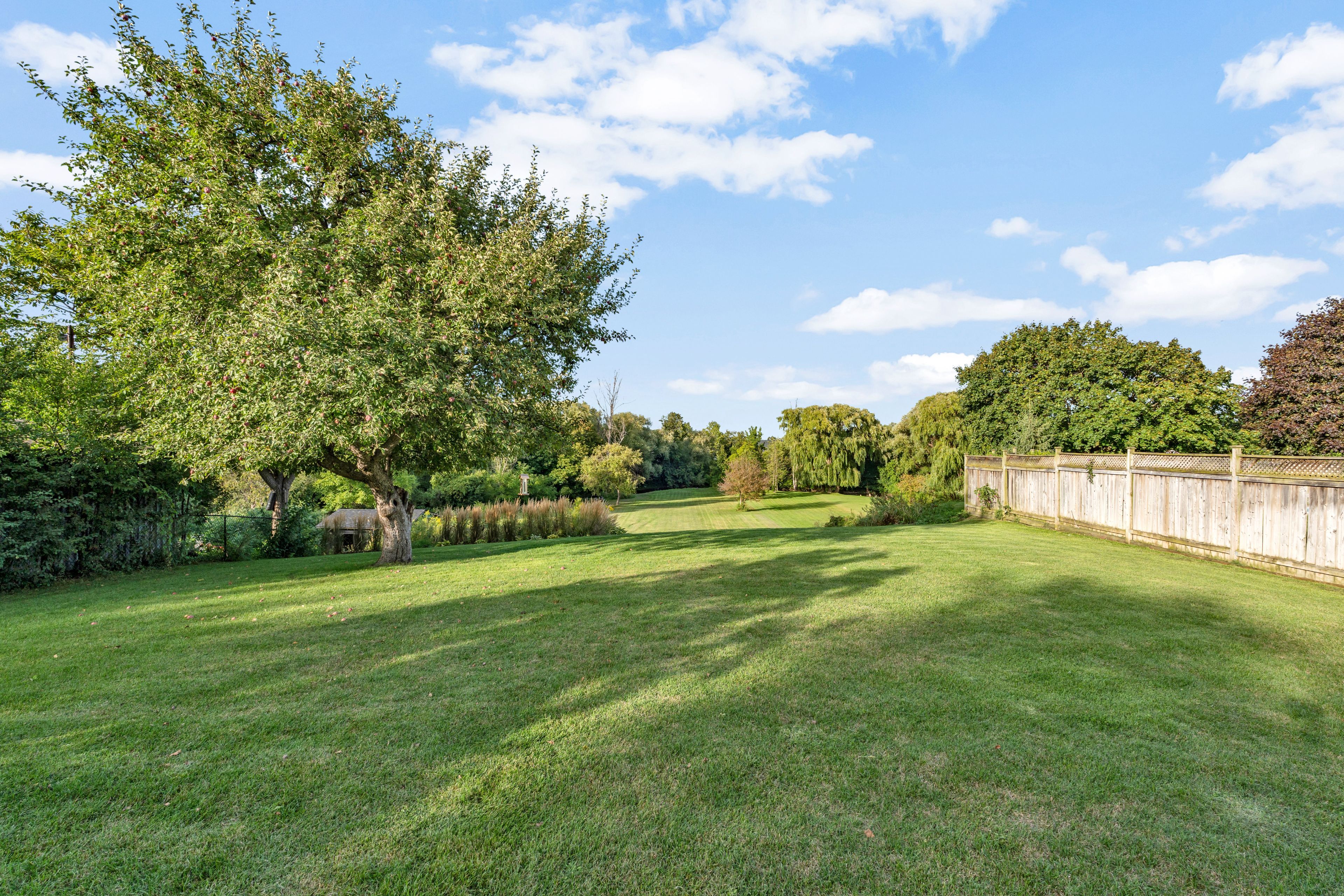 • Expansive backyard perfect for hot tub, fire pit, fishing, and tobogganing.