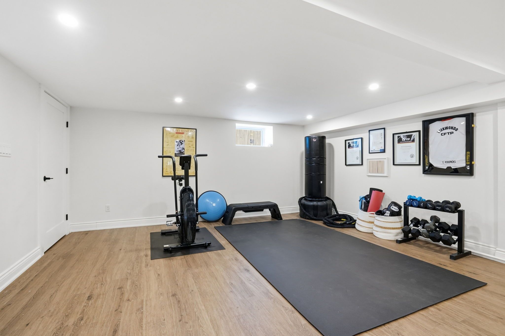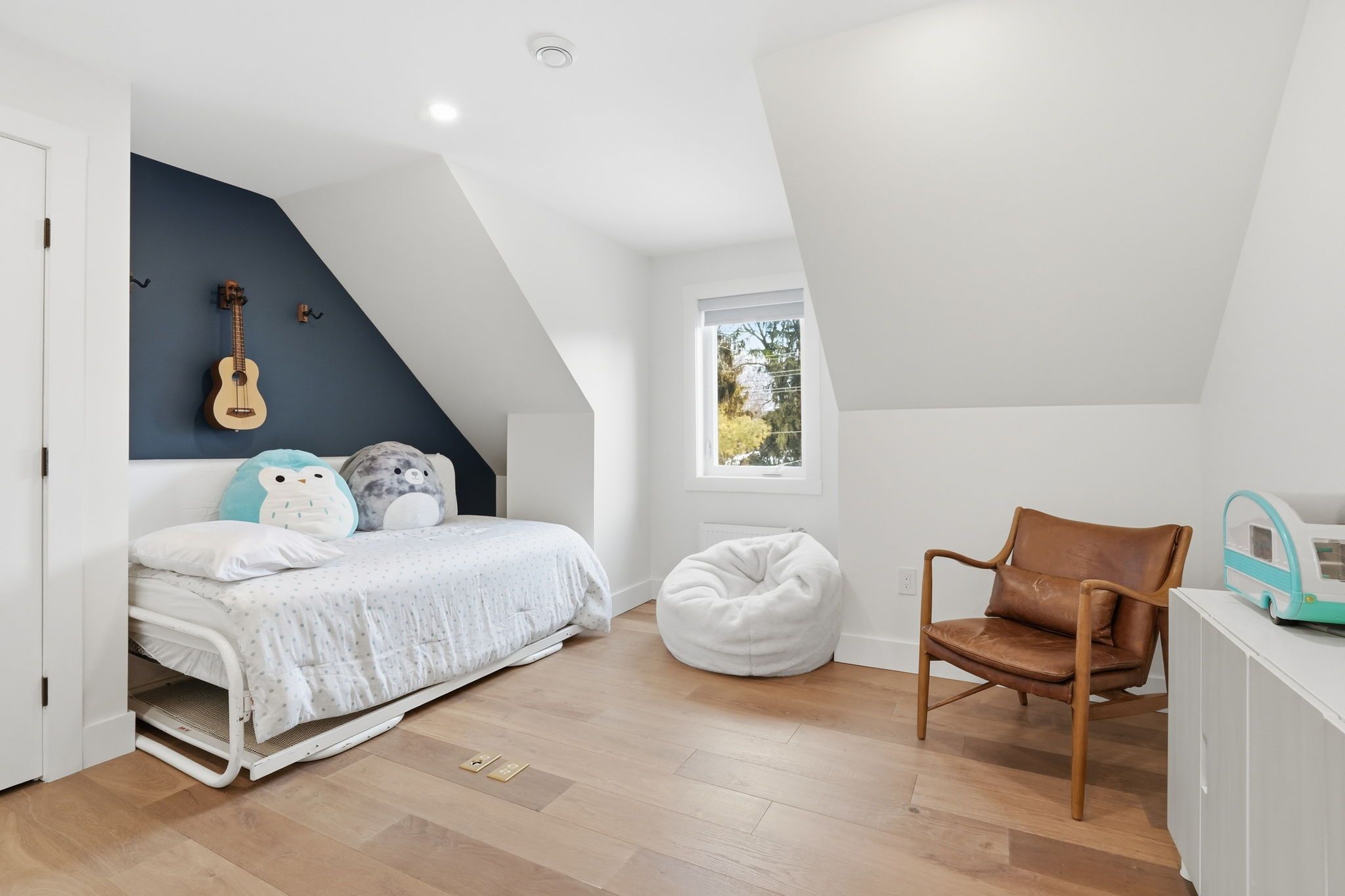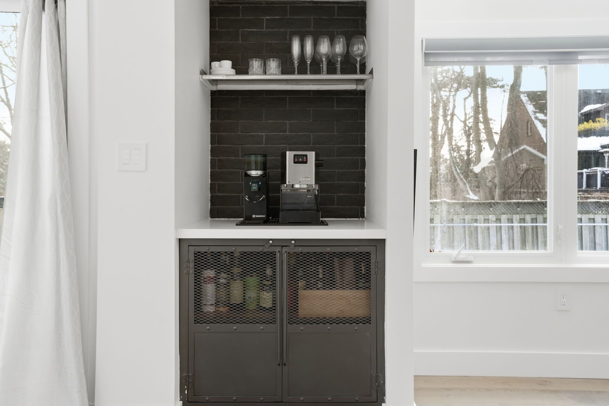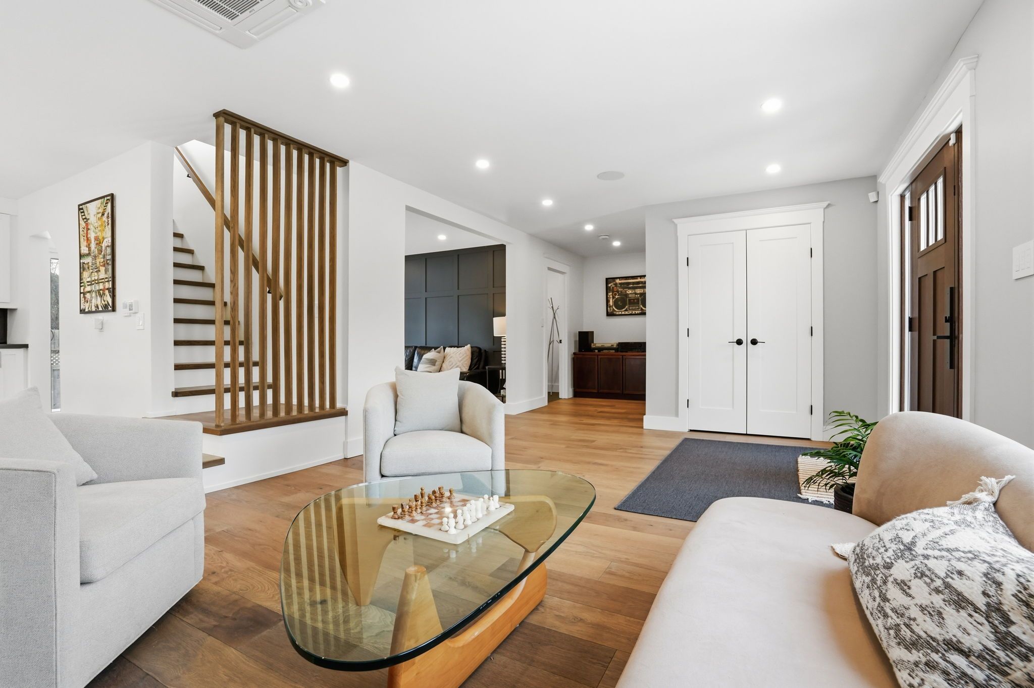 • Family room features a custom accent wall and seamless indoor-outdoor flow.