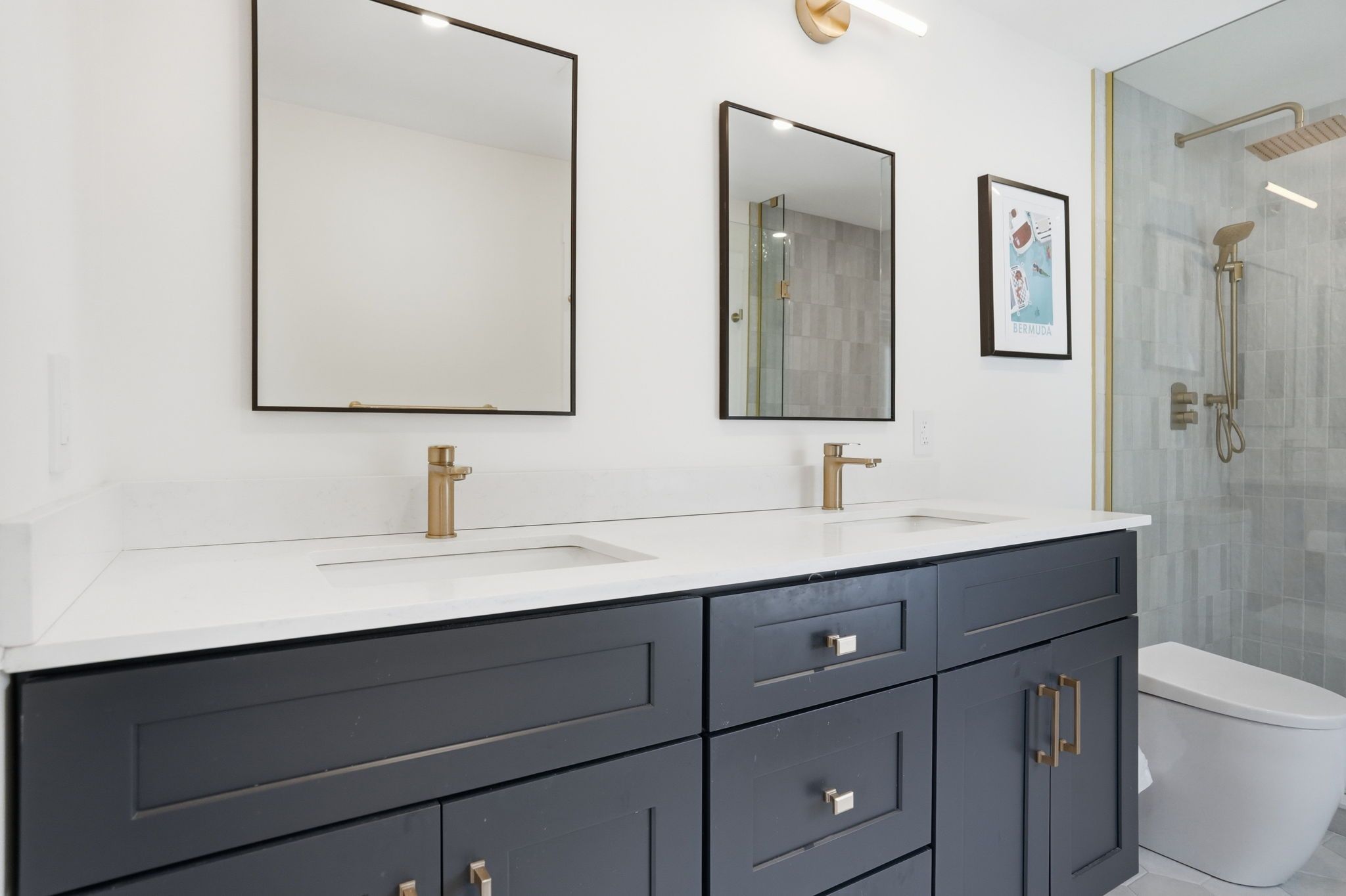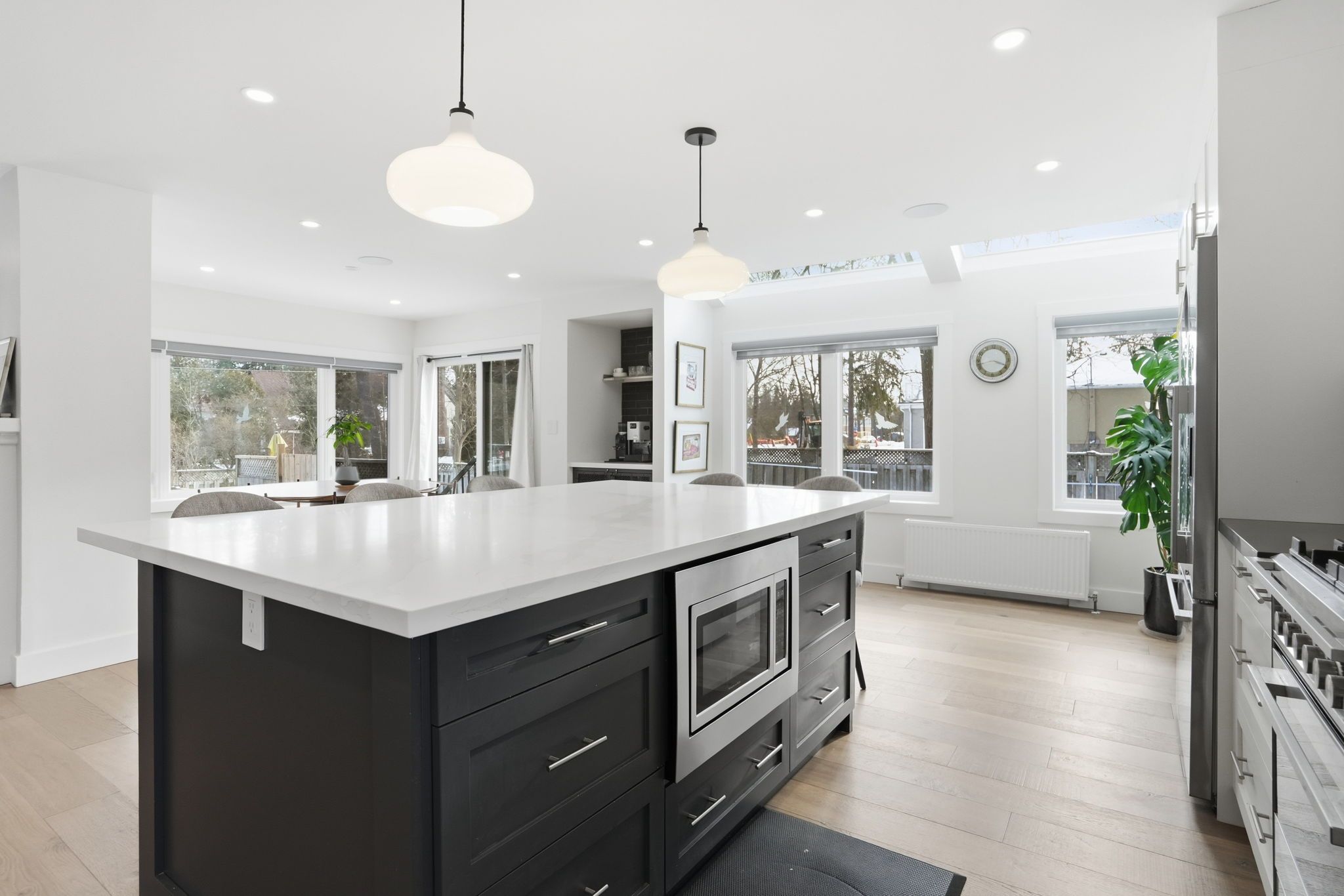 • Chef's kitchen with quartz countertops and a waterfall island for gathering.
