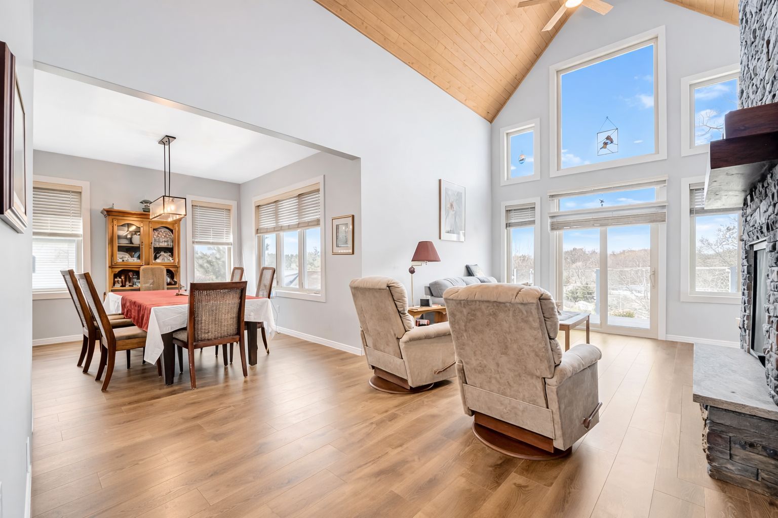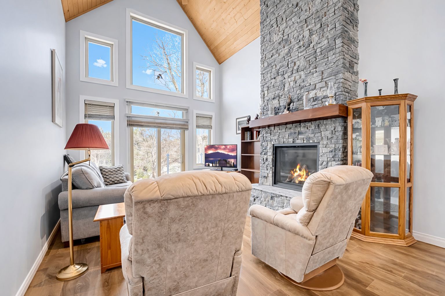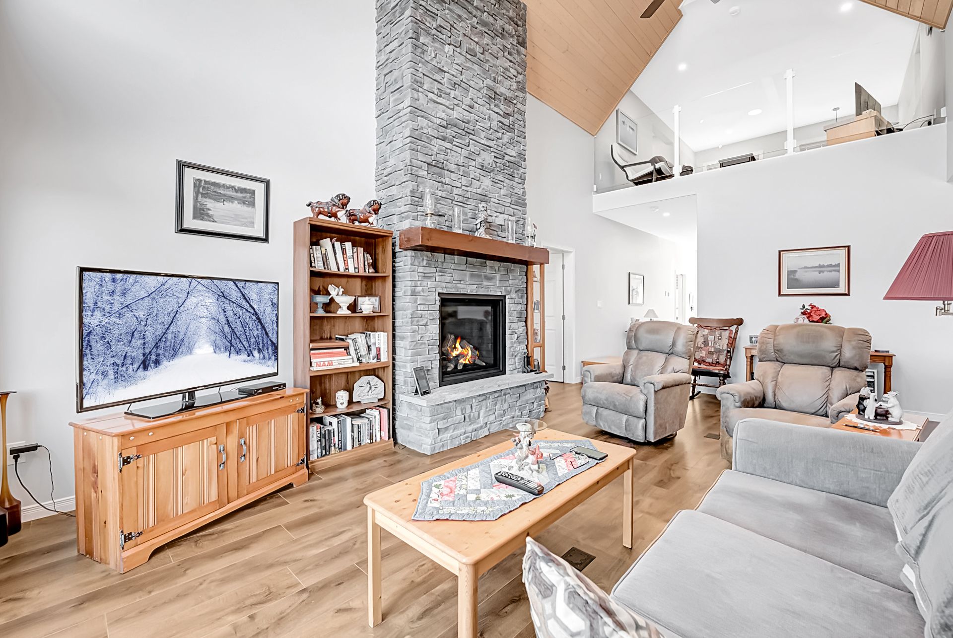 • Cozy open-concept space features in-floor heating and a natural gas fireplace.