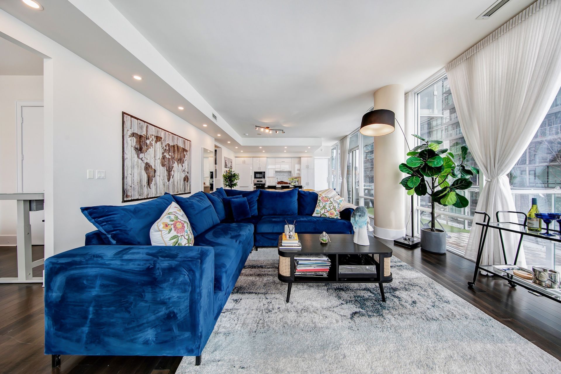 Welcome to luxury living at pier 27 with your own unobstructed view of the lake to watch the sun rise and seasons change year-round! This rare fully furnished & thoughtfully decorated corner 1463 sf s/e split 2 bedroom plus den (or 3rd bedroom with french doors + closet) features miele appliances, convertible pool & dining table, 10ft ceilings, hardwood floors, stone counters, upgraded kitchen with deep pantry. Entertain or relax on your two large balconies. Live in the centre of it all yet experience the serenity that this special home brings.