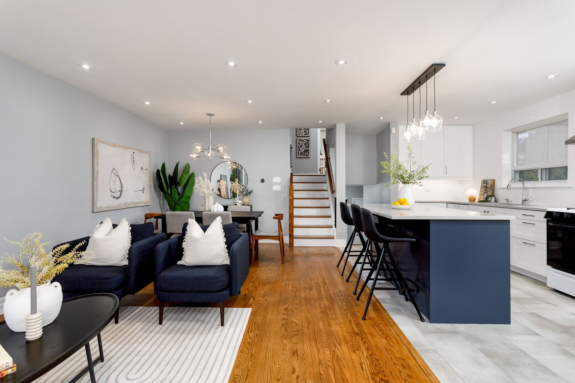 • Sun-filled open-plan main level with stylish contemporary kitchen.
