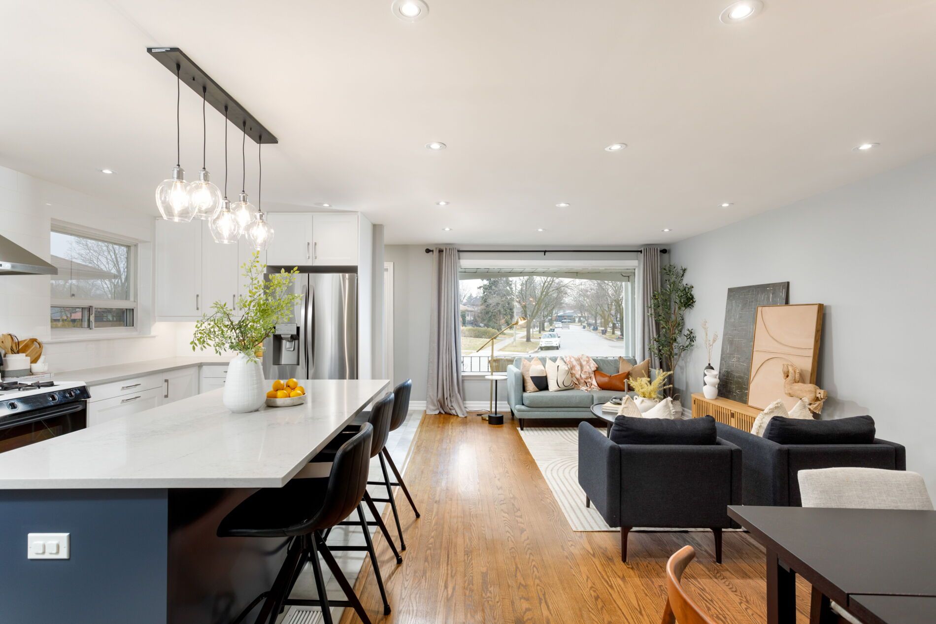 Located on a quiet, tree-lined crescent in a highly desirable, family-friendly etobicoke neighbourhood, this beautifully renovated 4-level backsplit offers over 2,000 sq. Ft. Of thoughtfully designed living space. An open-concept layout and exceptional flow between levels create a warm, stylish home ideal for both everyday living and entertaining. Step into the sun-filled and open-plan main level, featuring hardwood floors and a stylish contemporary kitchen with a generous island and breakfast bar overlooking the dining and living areas. An expansive front window fills the space with natural light and offers serene views of the front yard and peaceful streetscape. Four generously sized bedrooms overlook the private backyard, with three well-appointed bathrooms offering ample space for growing families. The lower level includes a spacious recreation room with excellent ceiling height and a fully renovated bathroom with laundry. An exceptionally large crawl space offers ideal storage for seasonal items, keeping the property organized year-round. A convenient side entrance enhances everyday access and functionality. Enjoy outdoor living on the oversized front porch, perfect for morning coffee, or relax in the charming backyard oasis on a generous pie-shaped lot, an ideal space for children to play or for hosting family gatherings - with convenient parking for 2 cars. Experience the best of etobicoke living just steps from parks, top schools, shopping and transit. Centennial park, within walking distance, offers year-round recreation including the etobicoke olympium, skating, skiing, golf centre and expansive green spaces. Enjoy easy access to major highways, hospitals, sherway gardens mall and the airport. Downtown toronto is less than a 30 minute drive, offering the perfect balance of urban convenience and outdoor lifestyle. The neighbourhood is renowned for its mature trees, quiet streets and strong sense of community, making it a perfect setting for families.