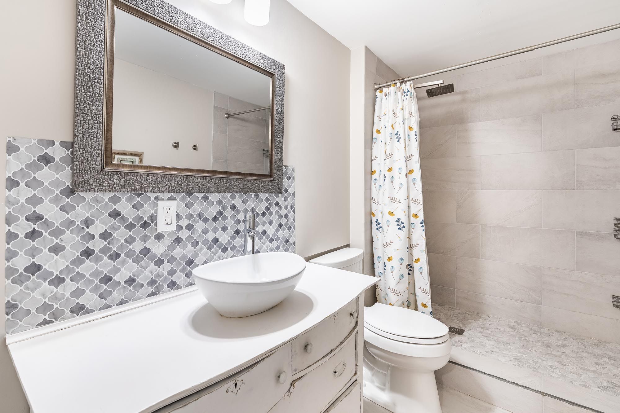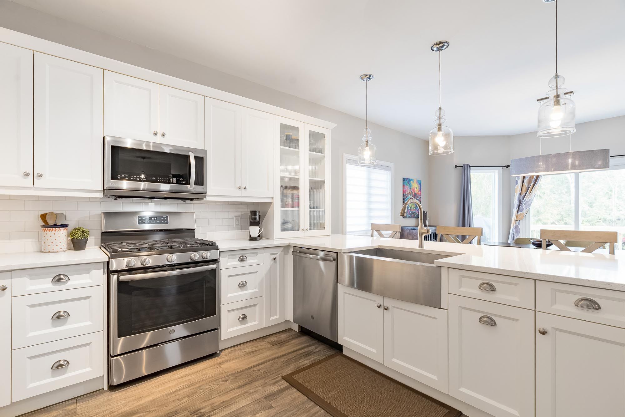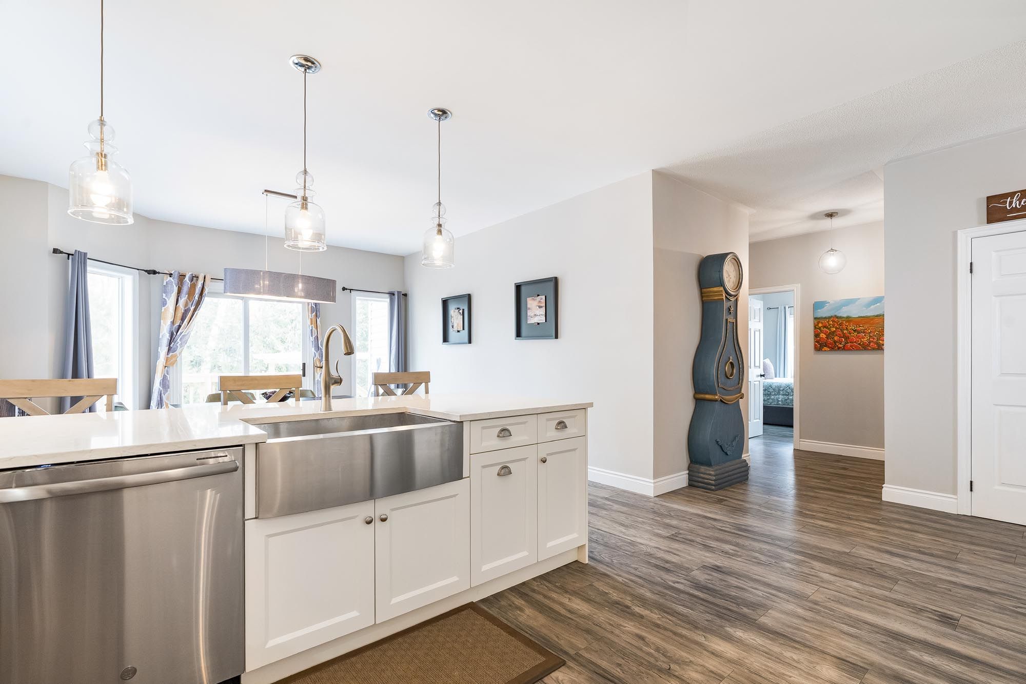 • Open-concept kitchen with quartz countertops and a brand new deck.