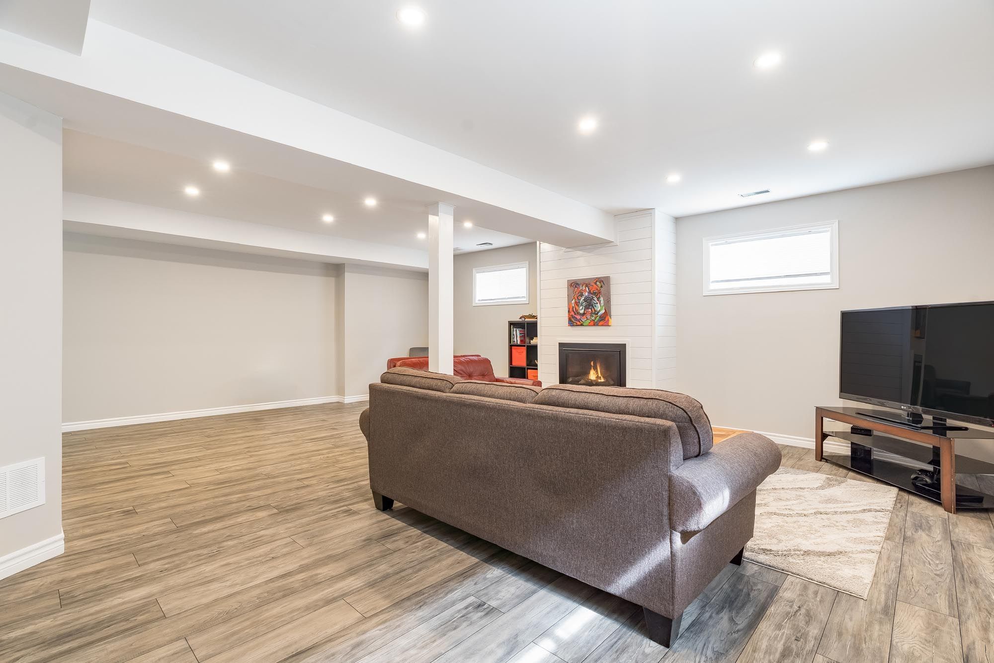 • Expansive basement with separate entrance, second gas fireplace, and light-filled rooms.