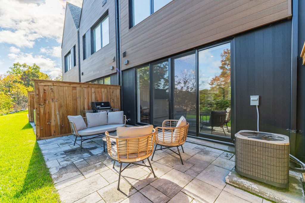 • Outdoor patio overlooks lush ravine and pond, great for relaxing.