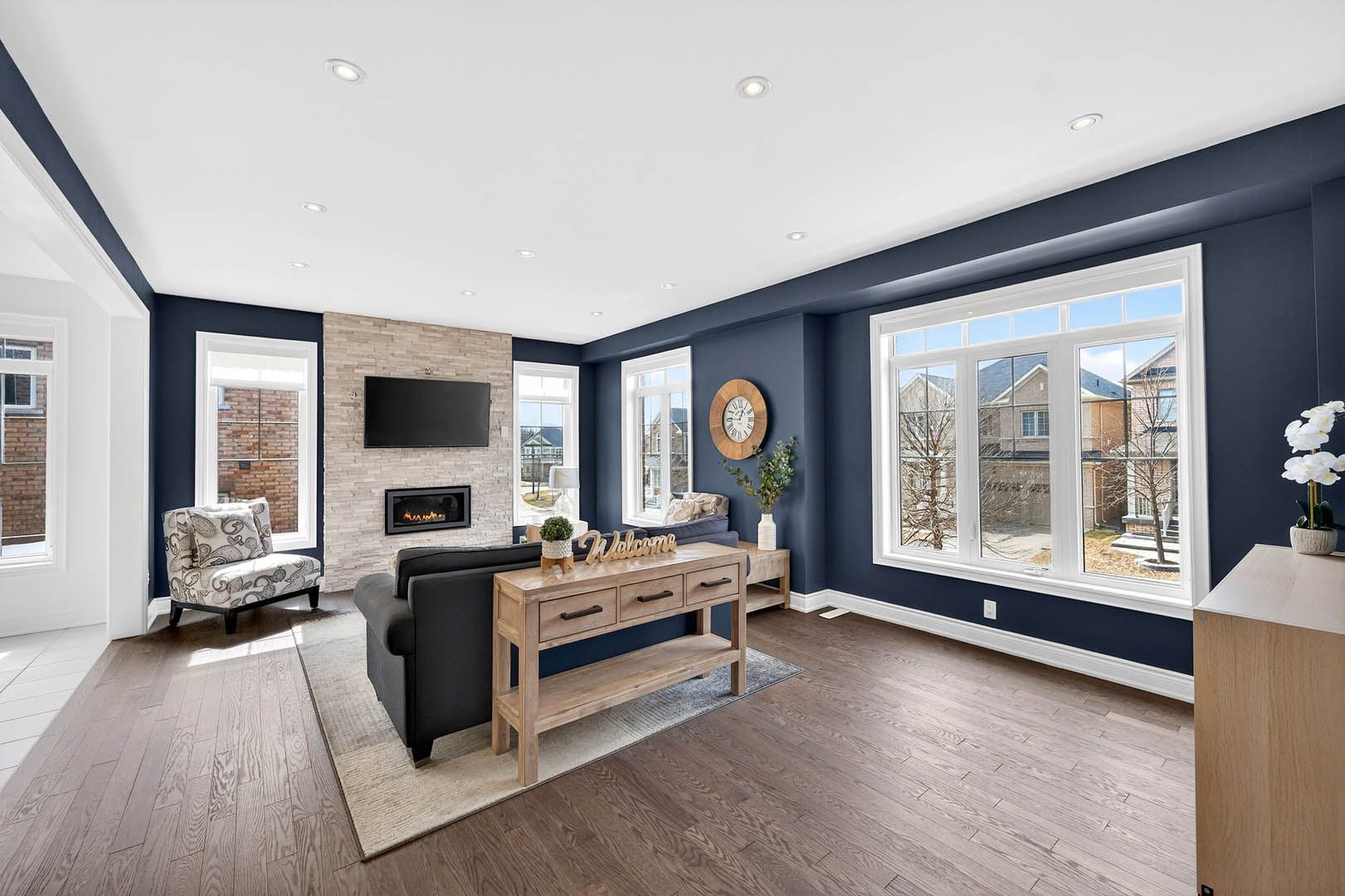 A beautifully maintained home where care and attention to detail are evident throughout. This bright corner unit offers a spacious open-concept layout, complemented by a newly finished basement for added living space. The main floor features a versatile living/office area with custom built-in shelving - ideal for working from home or enjoying a quiet retreat. The kitchen is a true highlight, complete with a wolf gas stove, large center island, and a walk-out to a spacious composite deck. Upstairs, you'll find four generously sized bedrooms, including a primary suite with custom closet organizers and 10 ft coffered ceiling. The finished basement (2024) has modern vinyl flooring, a custom wine display, stylish accent media wall, along with a sink, fridge, and walk-out access to the backyard. The backyard is an entertainer's dream featuring a custom l-shaped countertop, fire pit, outdoor sink, and more. Conveniently located just minutes to highway 404 (approx. 6 km) and within walking distance to edward coltham park, this home offers both comfort and accessibility in a highly desirable location.