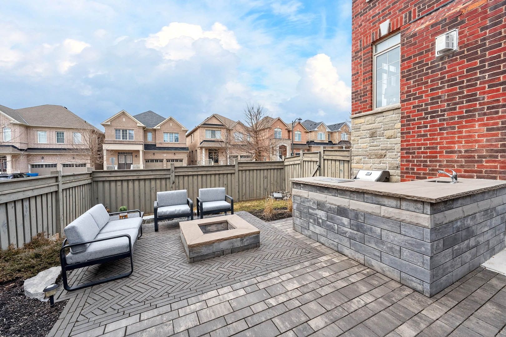 • Entertainer's backyard with custom countertop, fire pit, and outdoor sink.