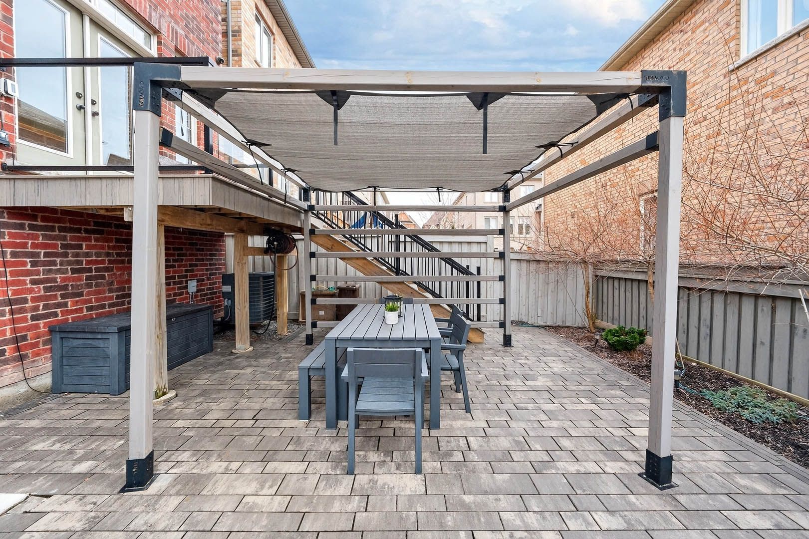 • Finished basement with modern flooring, wine display, and backyard access.