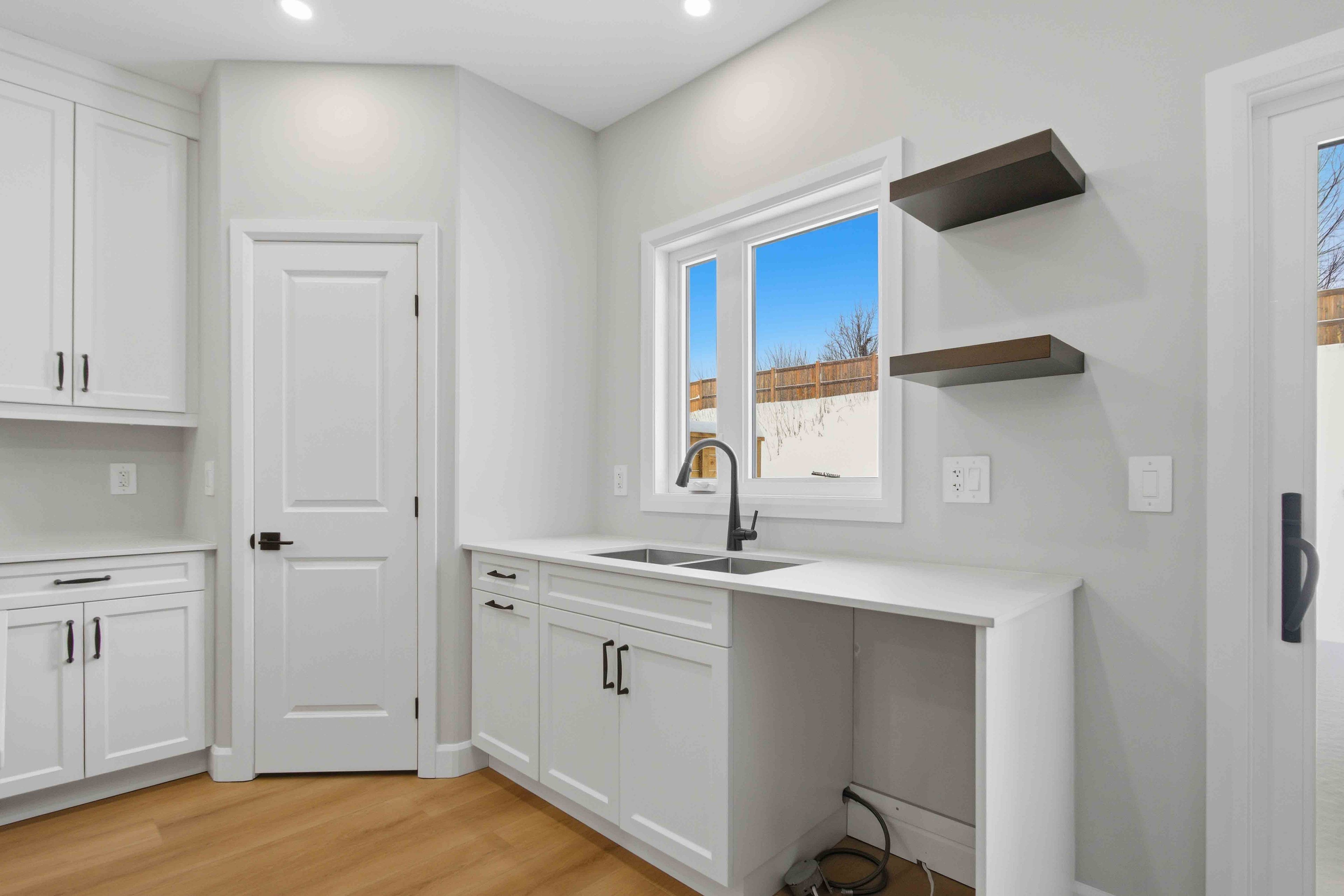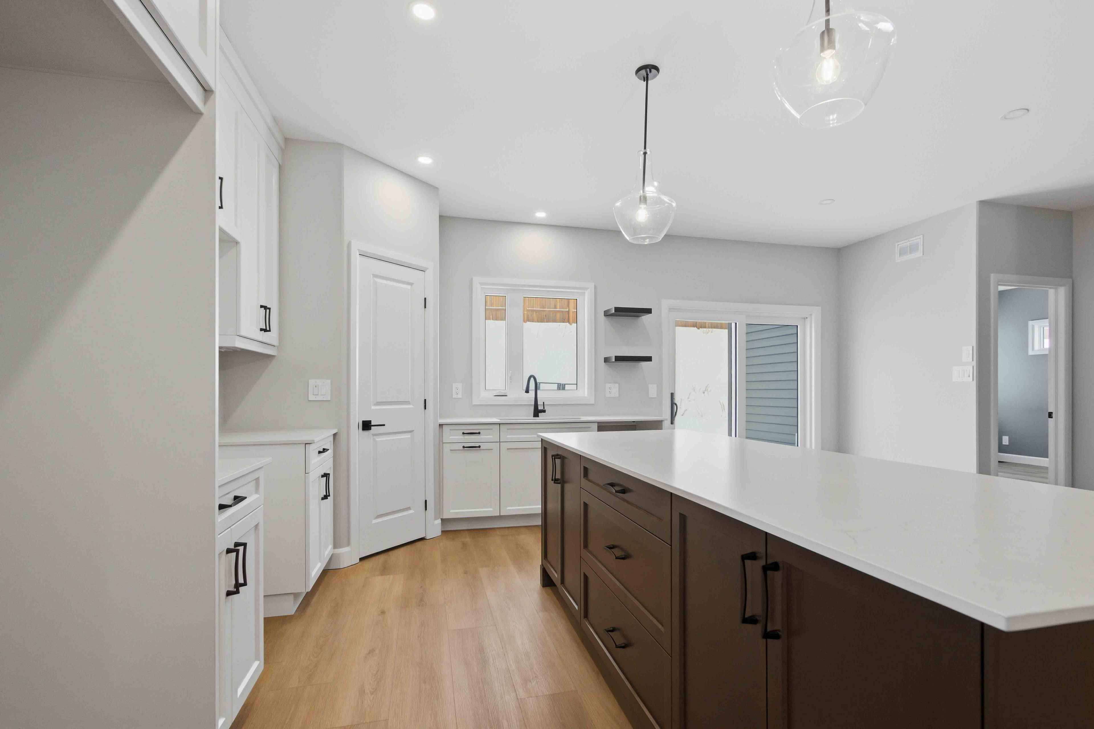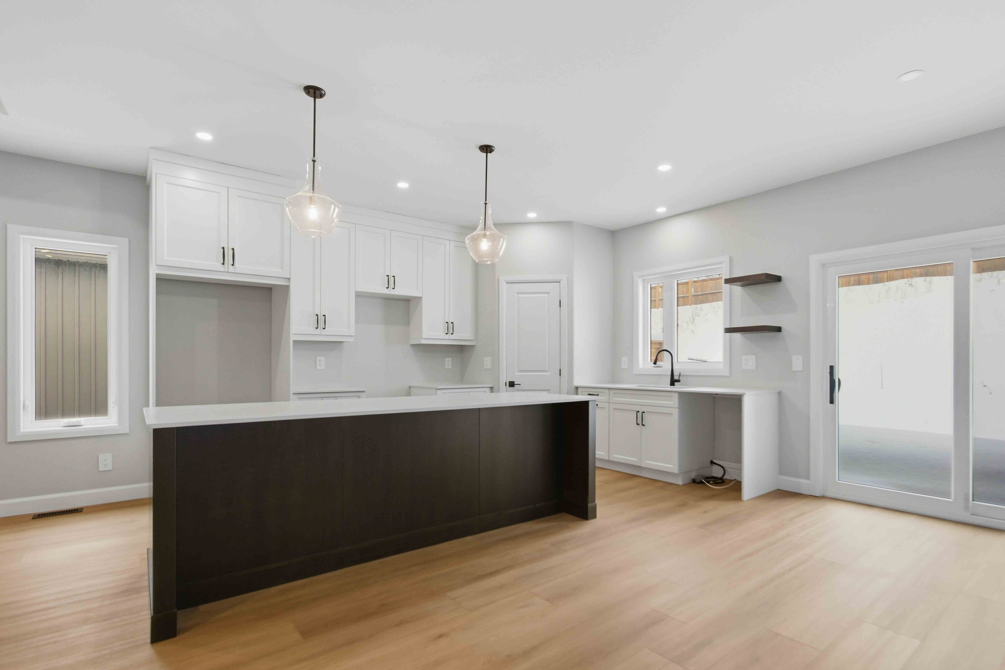 • Upgraded kitchen features quality cabinets, island, and corner pantry.