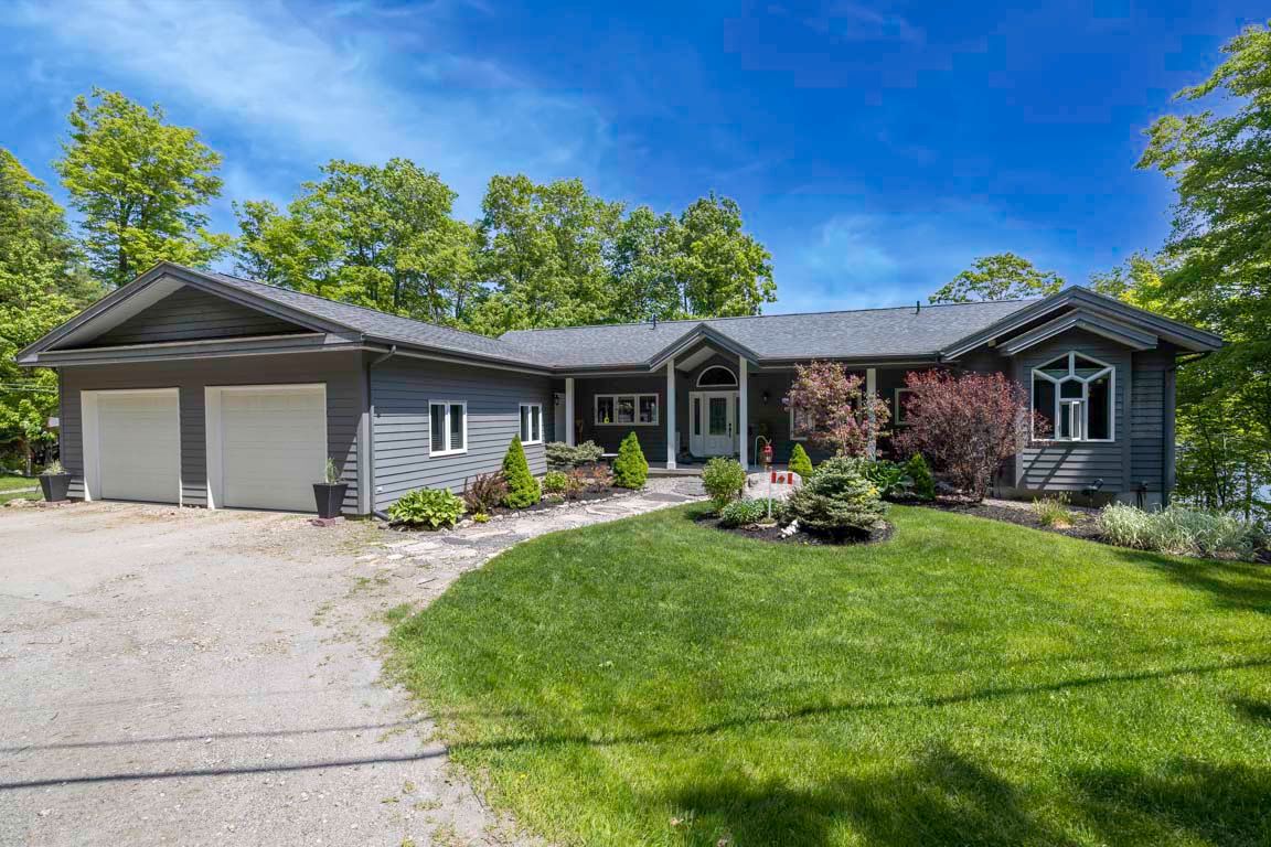 Stunning 'cedarland viceroy' lake house! Ideal family cottage or home, lovingly built in 2011, over 3600 sq ft finished! Offered by the original owners! Coveted 'wahwashkesh lake', 106 kms of shoreline to explore known as the 'big lake', smooth granite shoreline with sandy beach area offers easy access to water for all ages, custom built 4 season ranch bungalow + finished walkout lower level, features 4 bedrooms, 3 baths, open concept design offers captivating long lake views, kitchen boasts granite counters, stainless appliances, centre island, main floor family room/den is ideal for private reflection & relaxation, multiple walkouts to huge wrap around deck to extend the waterfront enjoyment, principal bedroom enjoys lake views, walk-in closet, 5 pc ensuite, family & guests will enjoy the private fully finished lower level featuring family room w lakeside walkout, guest rooms, 3rd bath, in floor heating on both levels ensures cozy 4 season enjoyment, attached insulated garage 43' x 26' is ideal for the toys, generac system ensures uninterrupted comfort, private road is kept open year round and costs shared by residents for nominal fee, wahwashkesh offers breathtaking granite outcropping, fingers, miles of boating & fishing enjoyment, swimming is a delight in the crystal clear water, lake amenities include store, golf course & marina, ideal float plane location, wonderful community of upscale cottages and 4-season homes, contact for detailed information package, lake info etc., strong 4 season rental potential!