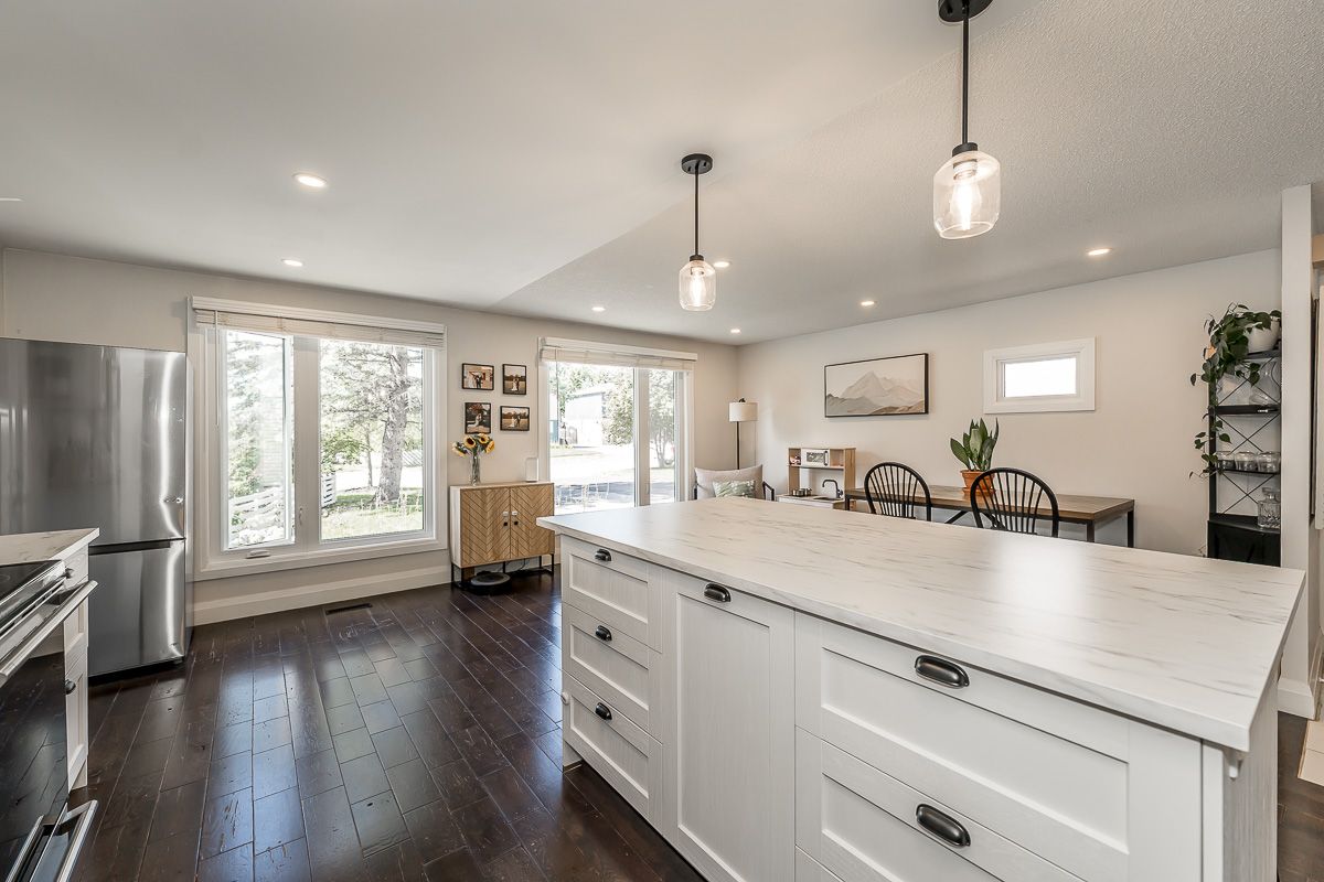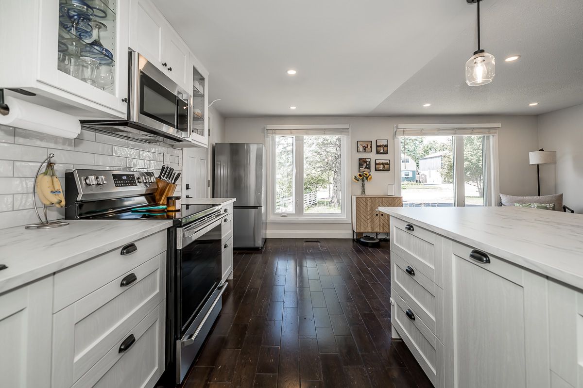 Welcome to this beautifully updated home in barrie's north end, offering 4 bedrooms and 2 full bathrooms with space for the whole family. The bright open-concept main floor features a brand-new kitchen with modern appliances, a large island perfect for gathering, and seamless flow into the living and dining areas. New windows and upgraded pot lights fill the home with natural light, while the stylishly renovated main bathroom adds a fresh, modern touch. The fully finished lower level provides two additional bedrooms and a second full bathroom - ideal for guests, in-laws, or a growing family. Step outside through the convenient side entrance to a spacious deck, perfect for entertaining, summer barbecues, or relaxing in the fresh air. The fully fenced backyard, surrounded by mature trees, offers privacy and includes a large shed for storage or hobbies. With an extra-long driveway providing parking for 5+ vehicles, this home easily accommodates multiple drivers, visitors, or trailers. Located just minutes to dunlop street, hwy 400, shopping, dining, and all of barrie's amenities, this property perfectly blends comfort, style, and convenience.