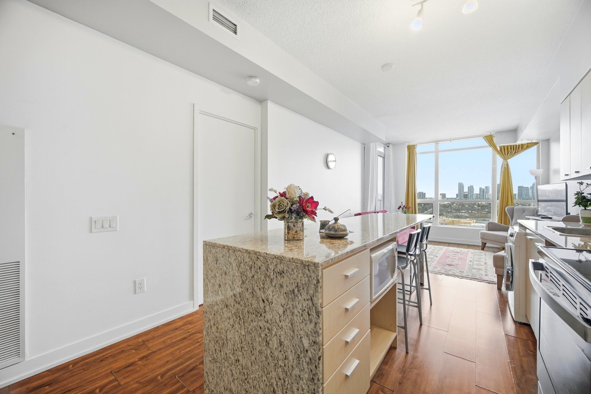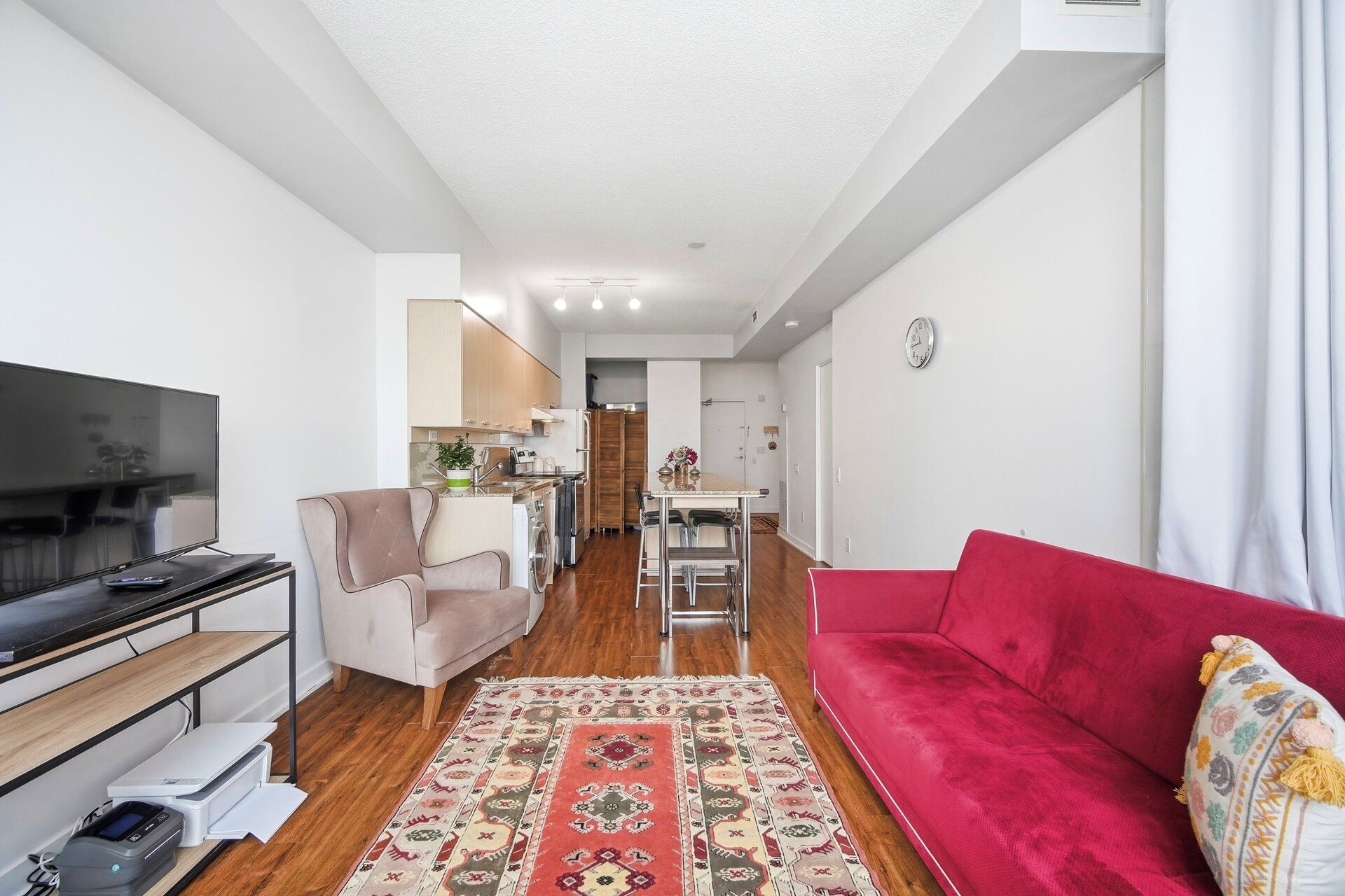 Experience elevated urban living at discovery condo's in the highly regarded concord park place community. This well-appointed one-bedroom plus den suite offers 660 sq. Ft. Of efficiently designed living space, along with a 55 sq. Ft. South-facing balcony showcasing open, unobstructed views. The layout maximizes function and flow, featuring a contemporary kitchen with granite island that seamlessly connects to the living and dining area - ideal for both entertaining and everyday living. Nine-foot ceilings and generous windows enhance the natural light, while the enclosed den adds valuable flexibility - perfect as a dedicated home office or supplemental sleeping space, increasing both lifestyle appeal and rental versatility. Included with the unit is one parking space. A meaningful advantage in today's market and a strong value driver for tenants and future resale. Positioned in a high-demand transit-oriented location with immediate access to ttc, go transit, major highways, hospitals, and green space, this property offers the connectivity today's buyers and renters expect. An ideal opportunity for investors seeking stable rental demand in a growing corridor, or for end-users looking for a well-connected, modern residence in a vibrant community.