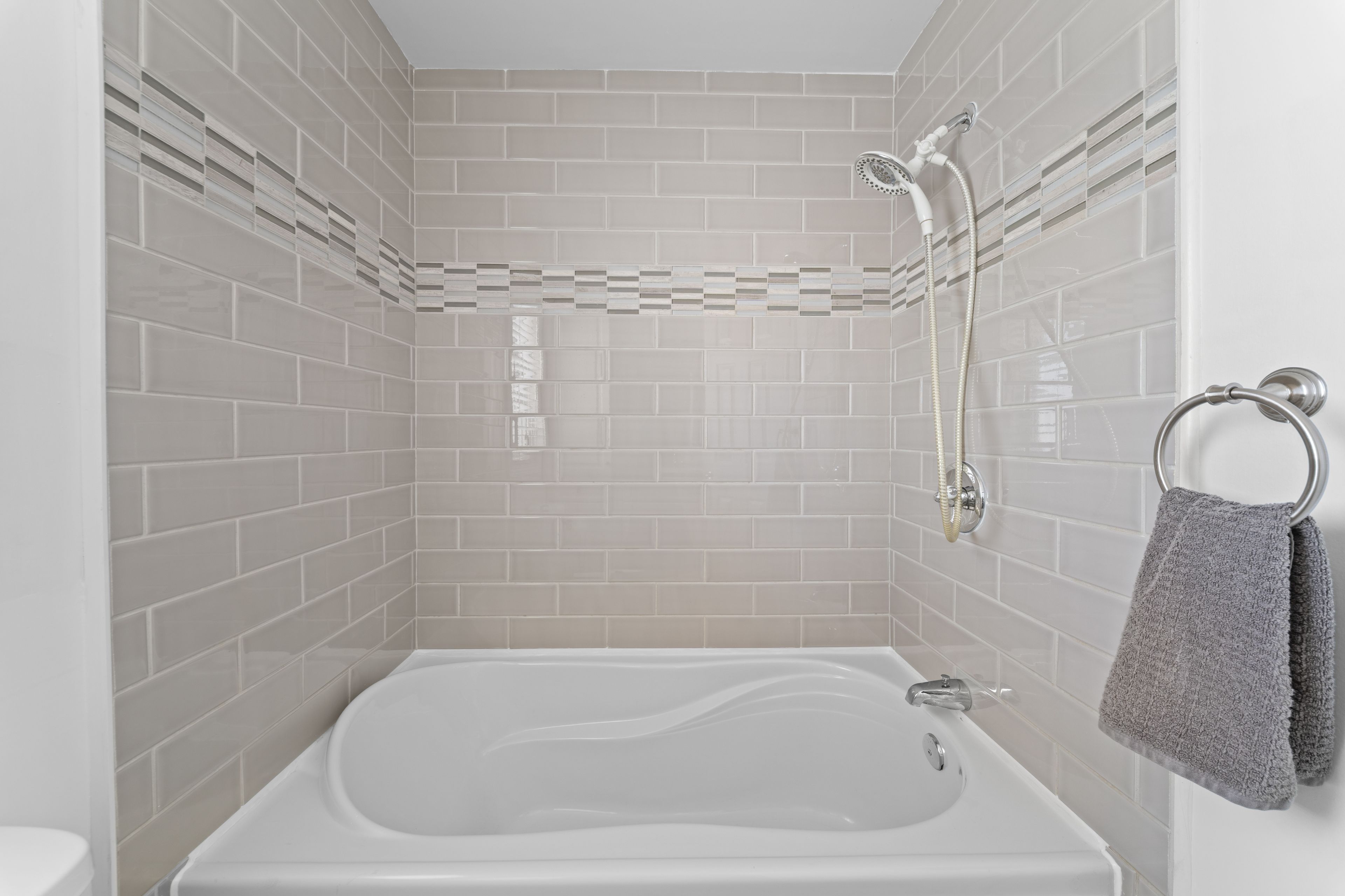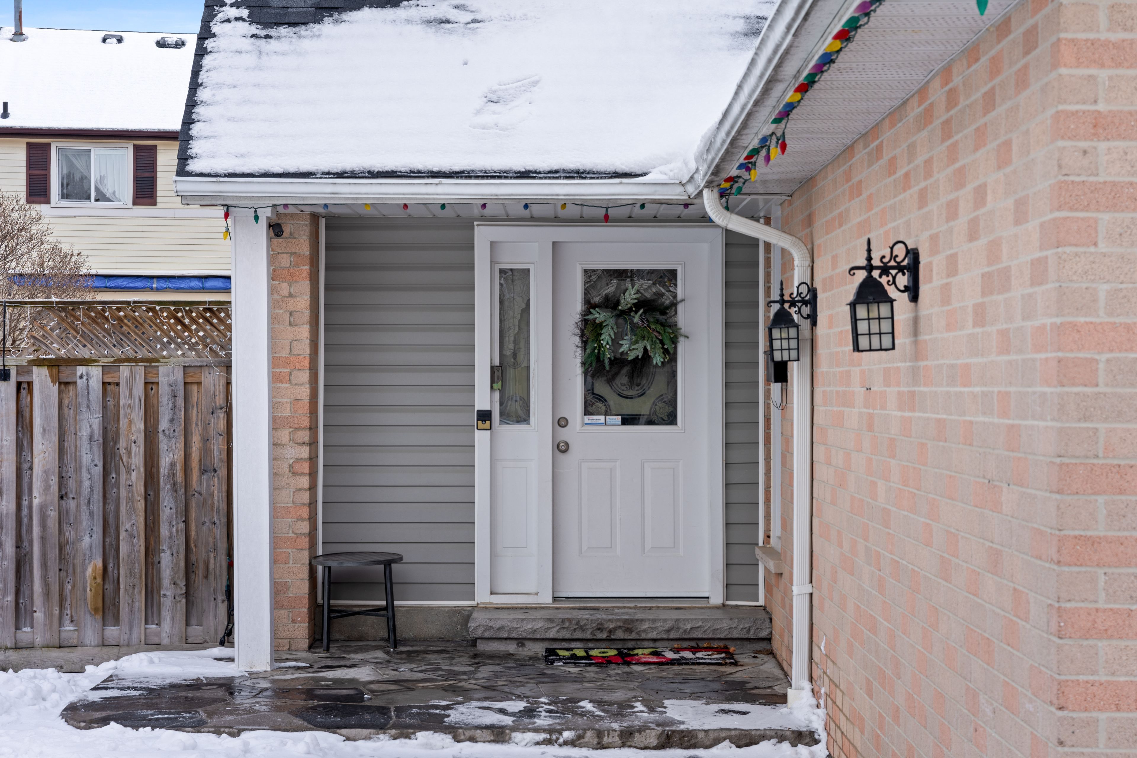 • End-unit townhome with a spacious driveway and inviting front entrance.