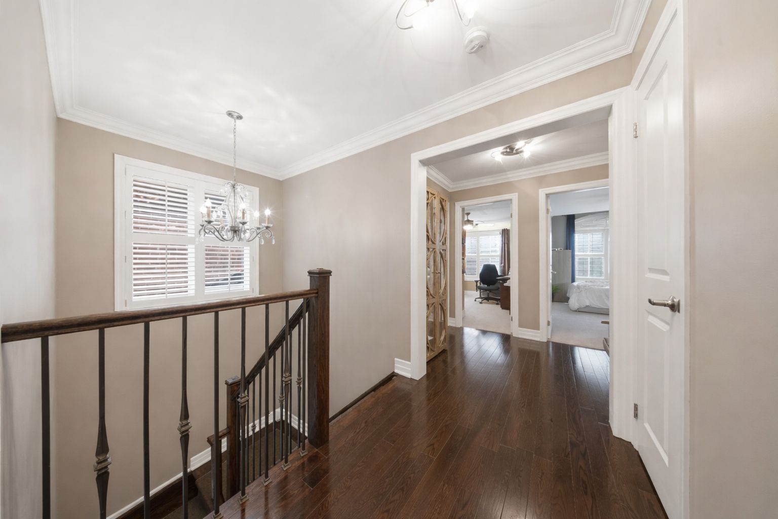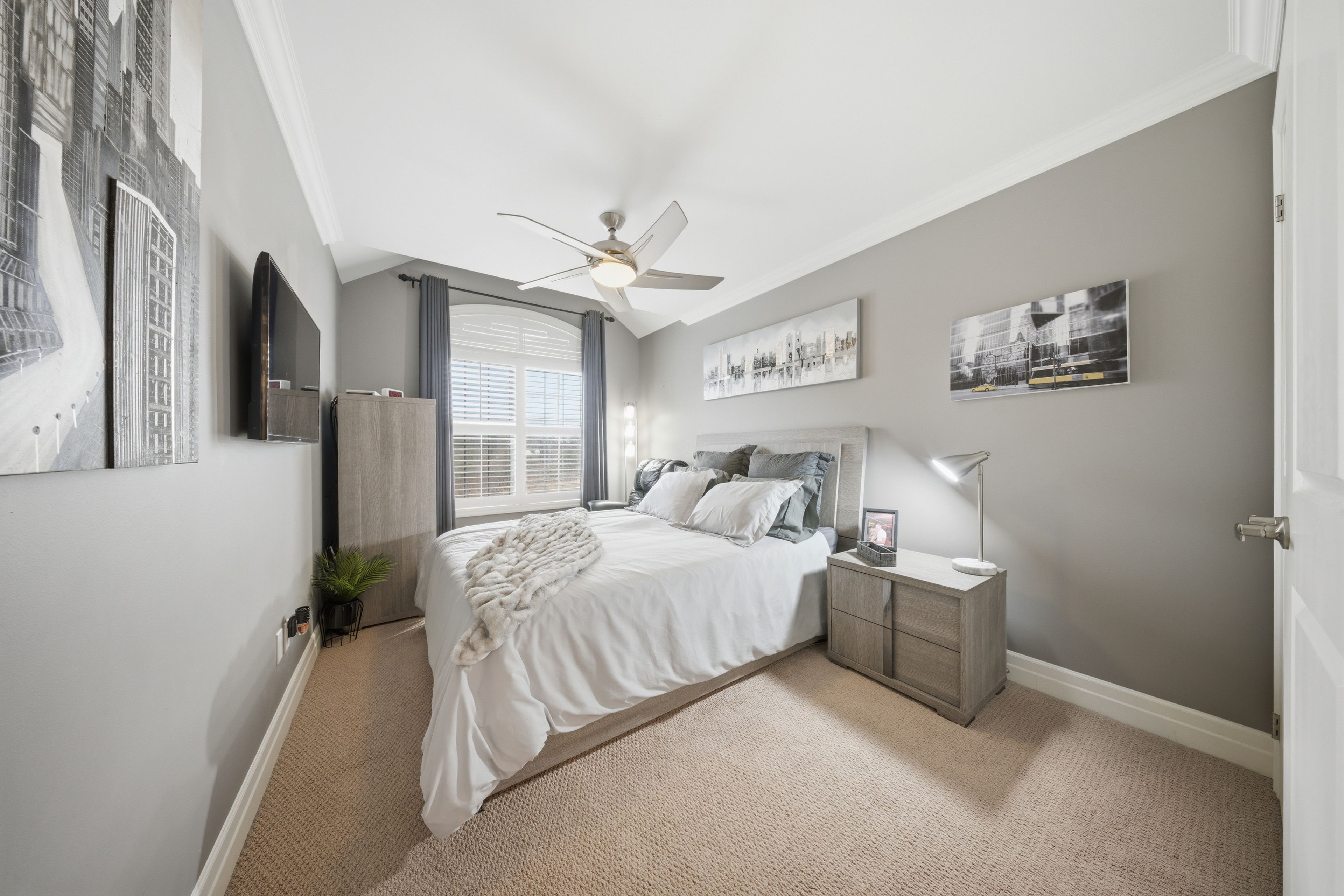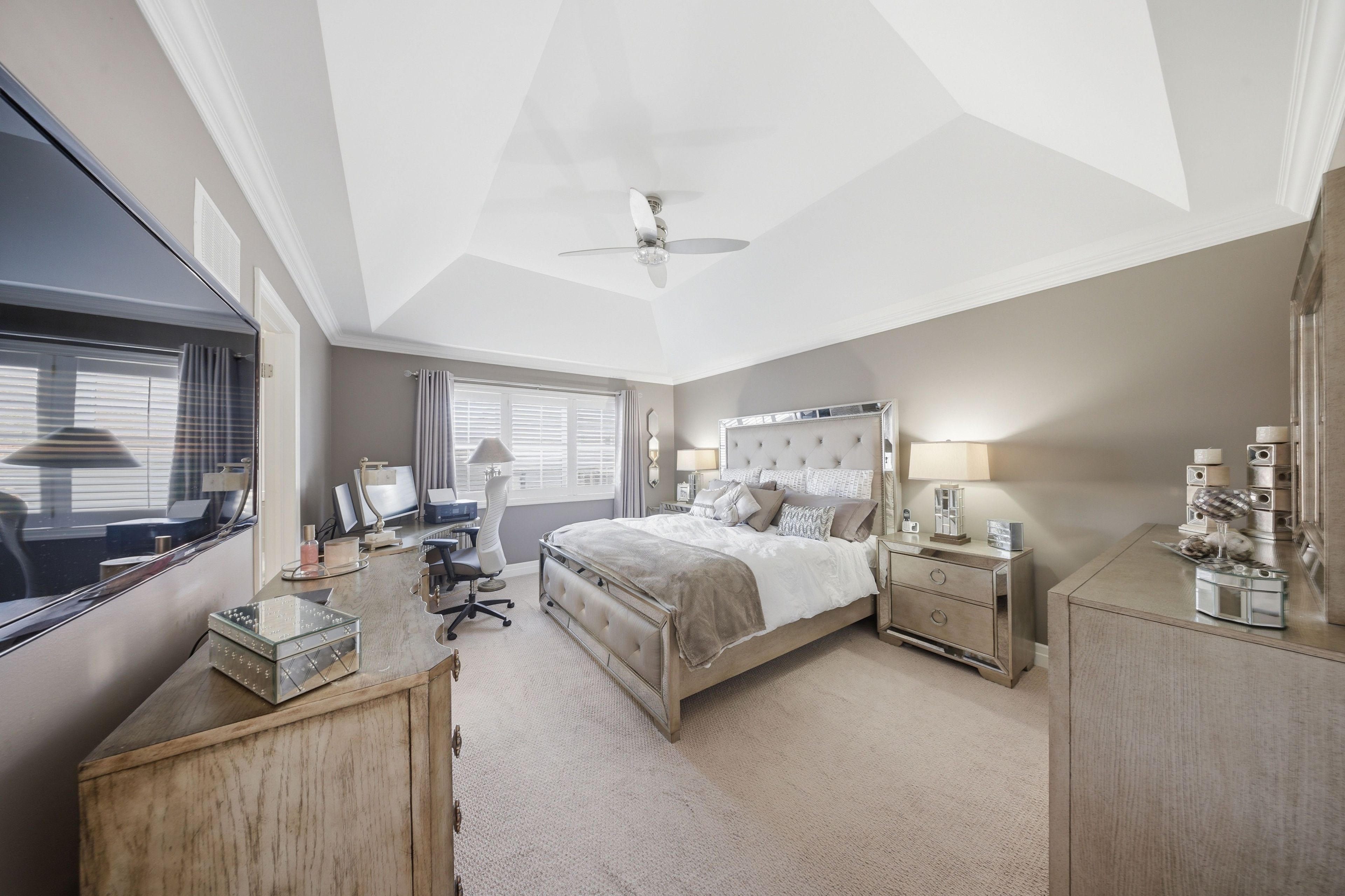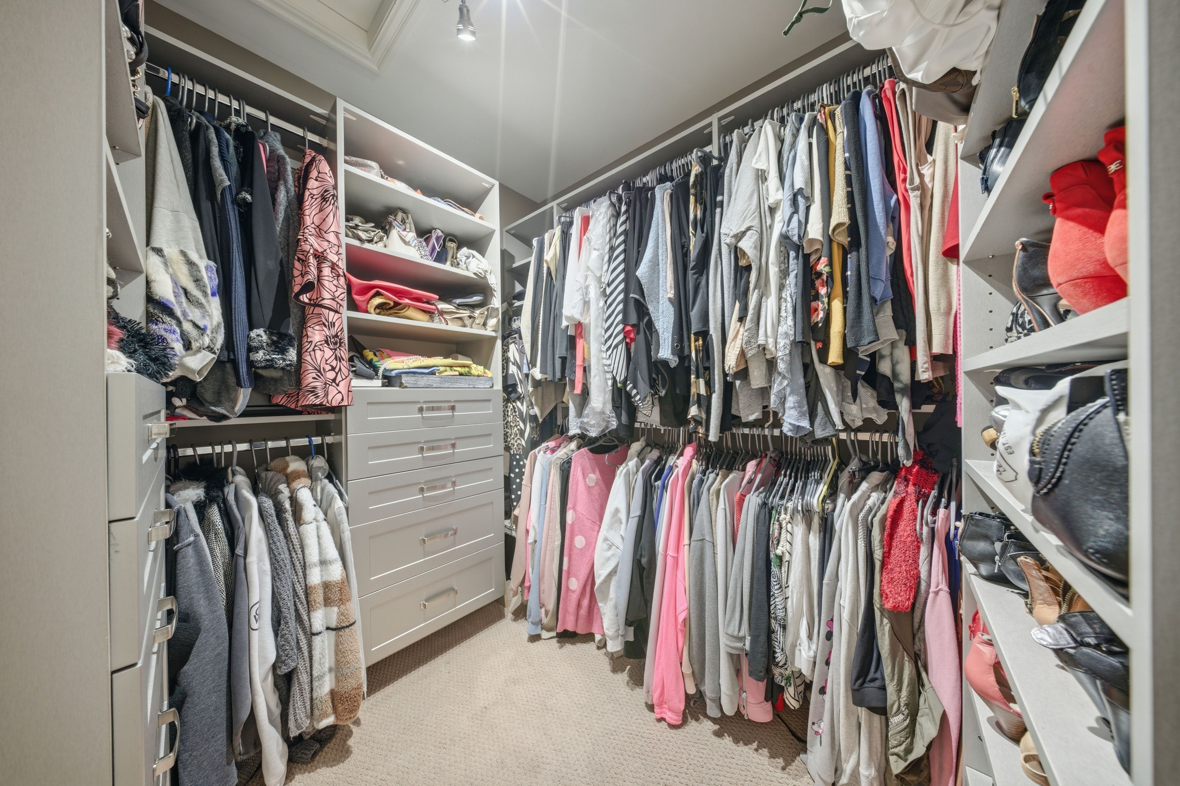 • Spacious primary bedroom with custom closet organizers and ensuite.