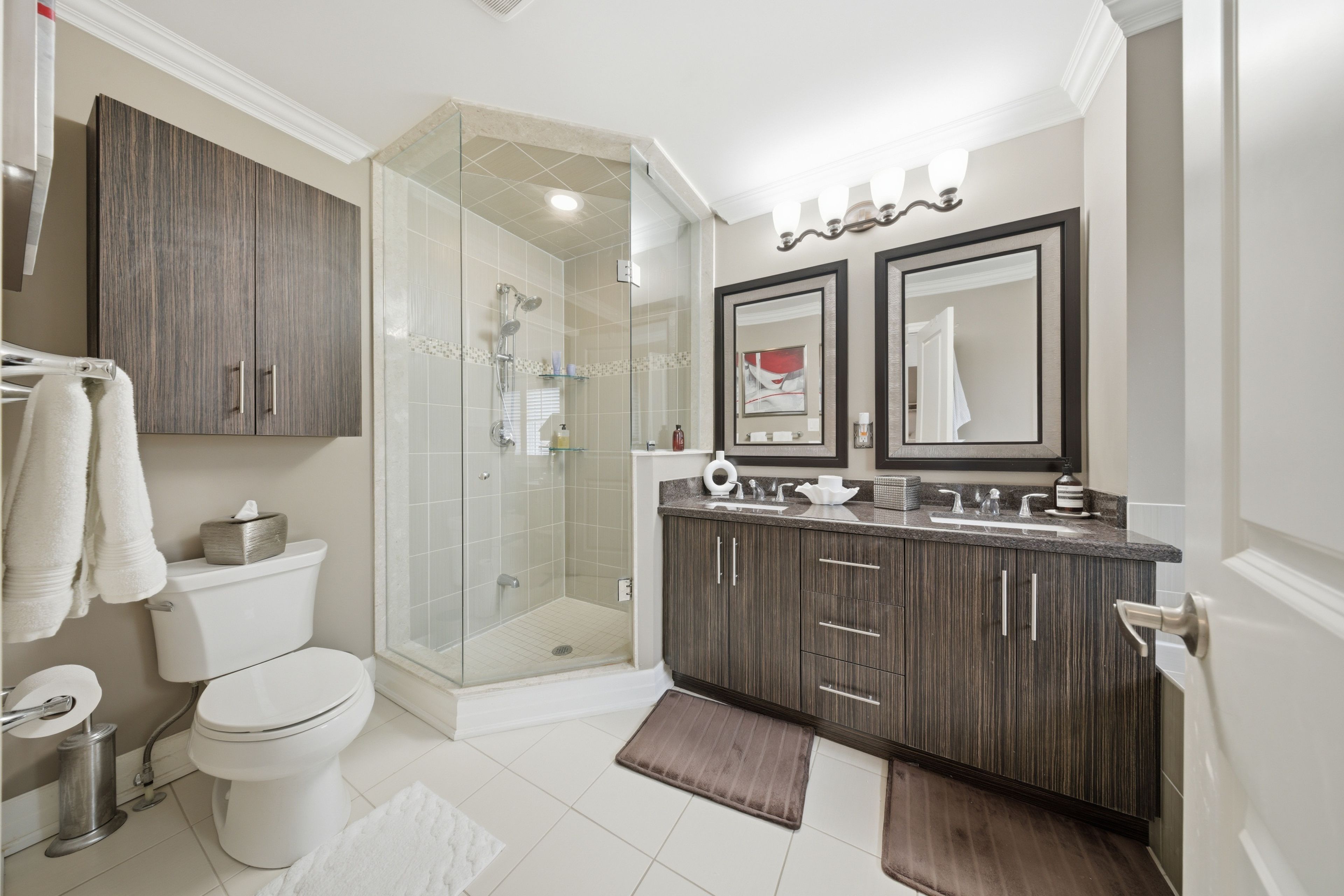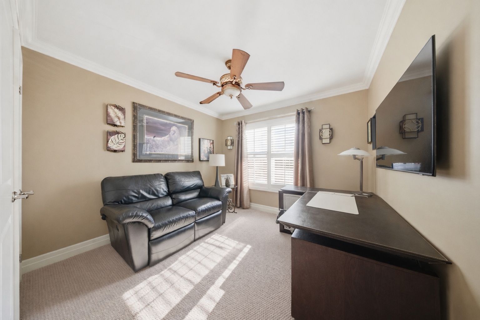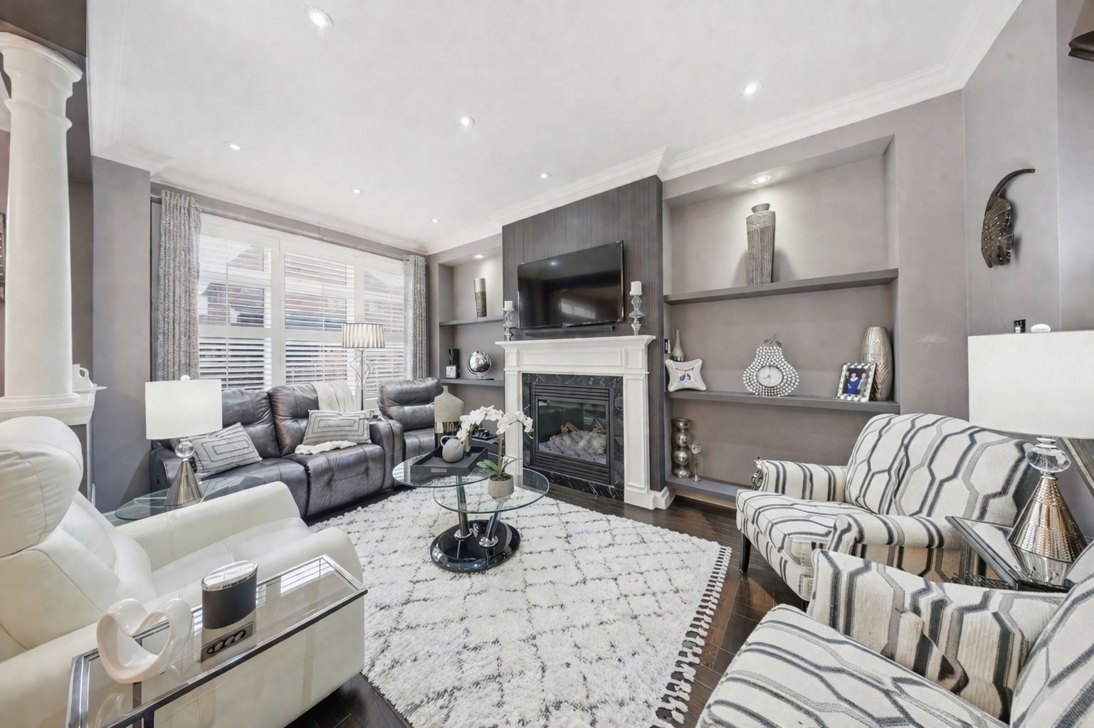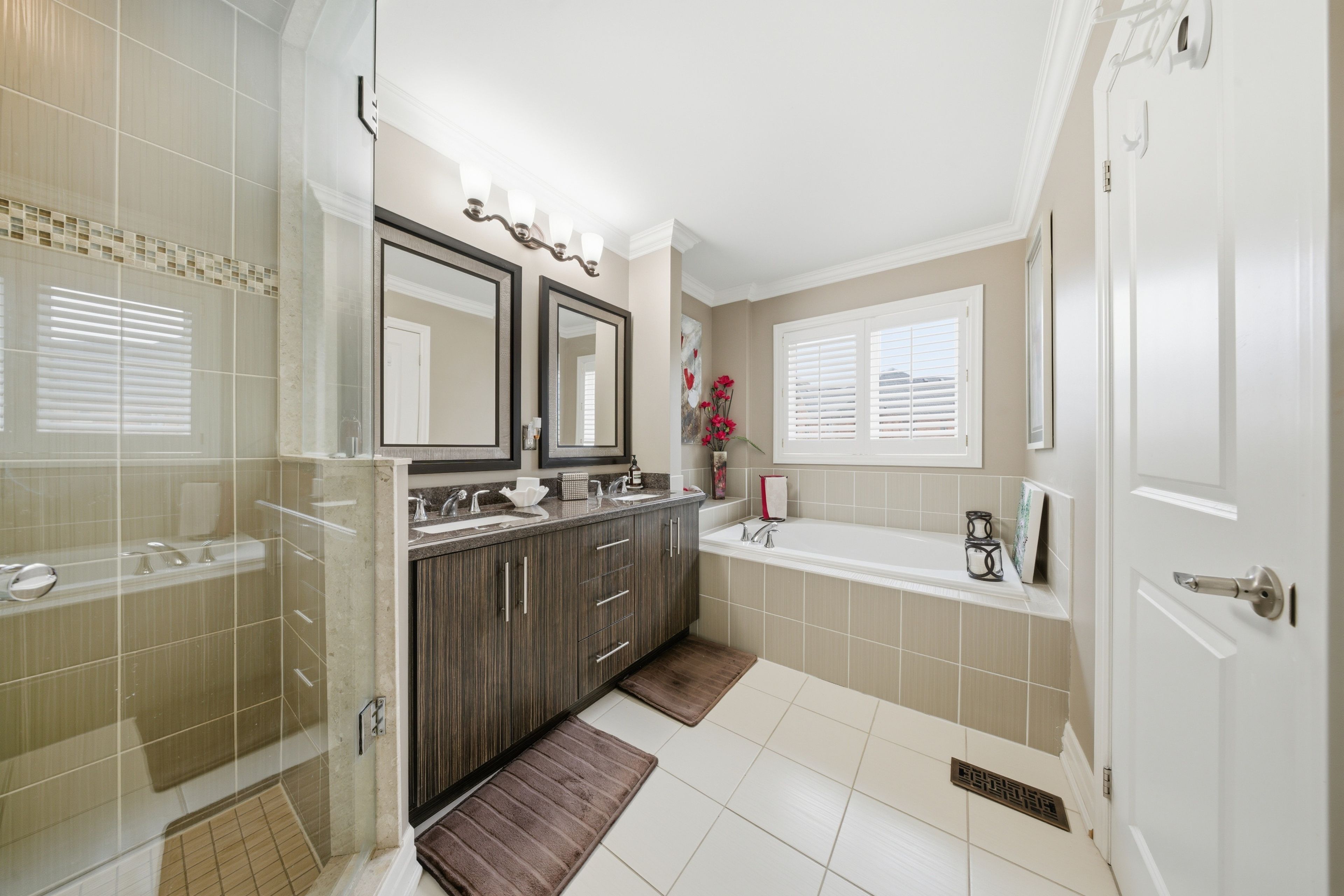 • Spacious primary bedroom with custom closet organizers and ensuite.